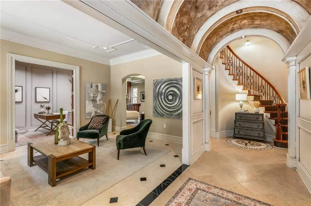 Refined luxury meets resort-style living in this extraordinary 6-bedroom, 5.5-bath European style estate, set on nearly five private acres in the heart of Smyrna. Offering close to 7,000 square feet of beautifully designed living space, this home is the perfect blend of elegance, comfort, and functionality. With a newer roof and a spacious four car garage, the property has been meticulously maintained and thoughtfully upgraded throughout. From the moment you step inside, you're welcomed by a grand chisel stone arch hallway and a dramatic spiral staircase that immediately sets the tone for the craftsmanship and detail that define the home. Imported Italian tile flows underfoot, leading you into the heart of the home a custom-designed chef's kitchen featuring a large island with counter seating, prep sink, custom cabinetry, and stainless steel appliances. The kitchen opens into an inviting informal dining space with a built-in bar, creating an ideal layout for entertaining and everyday living. The main level also features a bright and airy living room filled with natural light, a formal dining room, a cozy great room, a laundry closet, a versatile multi-use room, and a private bedroom with ensuite bath perfectly suited for a nanny suite, in-law suite, or guest accommodations. Movie nights are elevated in the private, theater-style media room, complete with surround sound, a projector, and tiered seating for the ultimate in-home cinema experience. Just beyond the living spaces, step out into your own personal backyard resort. Lush, manicured landscaping surrounds the saltwater pool, jacuzzi, covered outdoor fireplace, firepit, and basketball court offering endless opportunities for relaxation, entertaining, and recreation. Upstairs, the expansive owner's suite is a true sanctuary. Vaulted ceilings and large windows create an open and serene environment, while the luxurious en-suite bath features a soaker tub, walk-in shower, and an oversized custom closet. The suite al