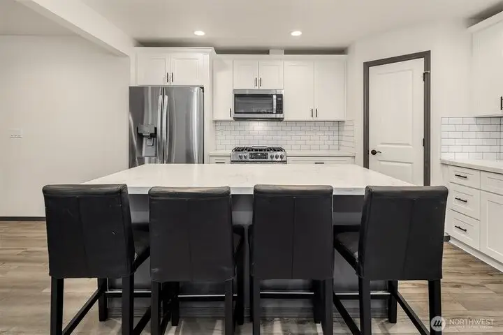 Ideally located 2021-built home on a bright corner lot with incredible walkability. Just blocks from the Centennial Trail, Morgantown Park w/ River access, Snohomish Aquatic Center, Library, & downtown Snohomish. A covered porch opens to a vaulted entry. An open-concept great room features living room w/ gas fireplace, dining w/ upgraded glass-paneled doors, & kitchen w/ SS appliances, gas stove, island seating, & pantry. Upstairs is a primary bedroom w/ walk-in closet, ensuite bath, + three additional bedrooms, full bath, & laundry room. Fully fenced backyard has a covered patio, custom landscaping, garden space, & fire pit area. Recent updates include fresh interior paint & heat pump with A/C. Walking distance to trails, shops, & dining.