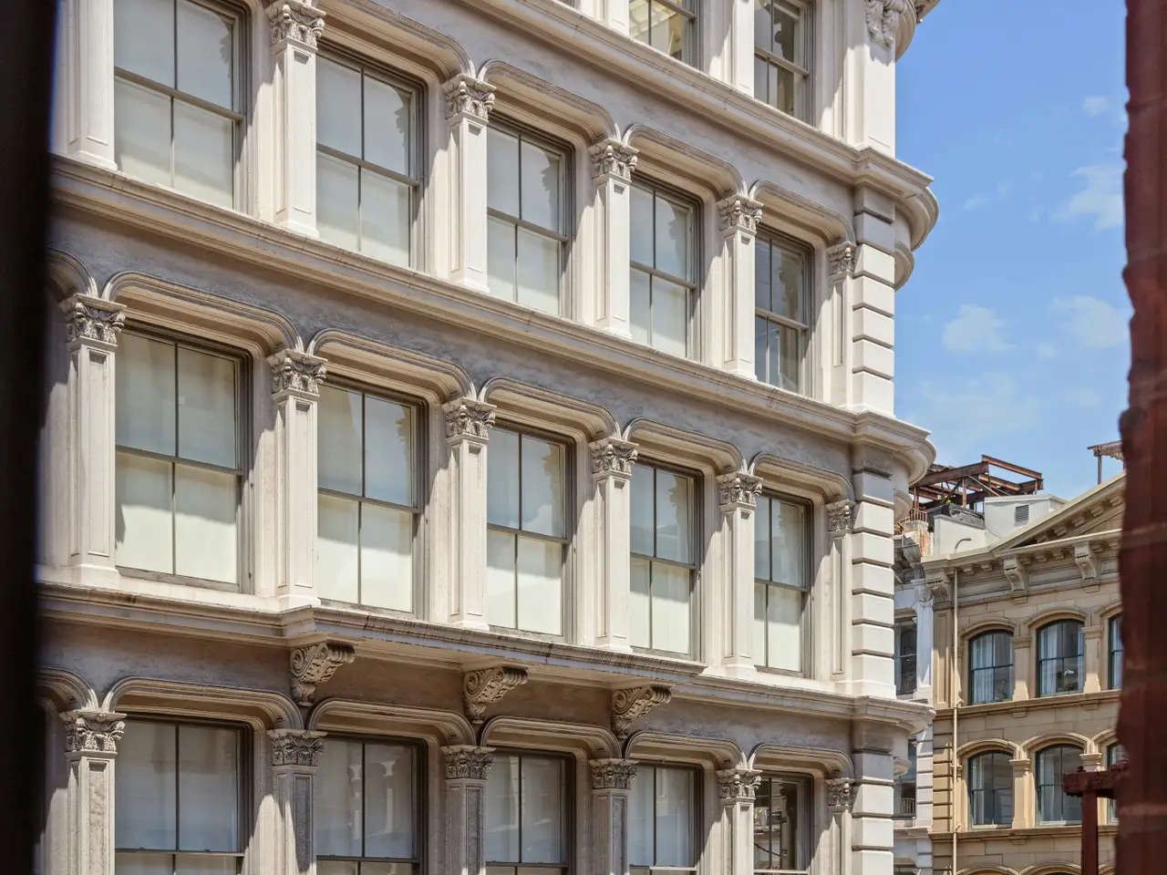 Classic Soho Charm This rare and authentic condominium loft is located right in the heart of Soho's historic Cast-iron District and features grand proportions and charming original details throughout. Enter to a dramatic Living/Dining room with 12-foot pressed-tin ceilings, classic Corinthian columns and bright afternoon light from enormous double-hung windows. The oversized chef's kitchen with center-island is open to the entertaining space and features granite countertops, abundant custom cabinetry and top-of-the-line stainless steel appliances. At one end of the loft you'll find the bright king-sized primary bedroom with a large fitted wardrobe and access to a tastefully renovated marble bathroom. At the opposite end of the loft, you'll find a large interior guest room, a separate study nook and an oversized guest bathroom clad in marble with a deep jetted Kohler tub. Additional amenities include multi-zoned central air-conditioning, an LG washer-dryer, numerous storage closets and custom lighting on dimmers throughout. Built in 1872 and converted to condominium in 2016, the boutique 6-story cast-iron building offers a key-locked elevator, brand new Seidel video intercom system, a common roof deck and low monthly charges. And of course there's the prime Soho location, putting you on charming cobblestone block surrounded by alluring retail storefronts with great restaurants, cafes and the best that Downtown has to offer right at your doorstep. Recently renovated and available for immediate occupancy!