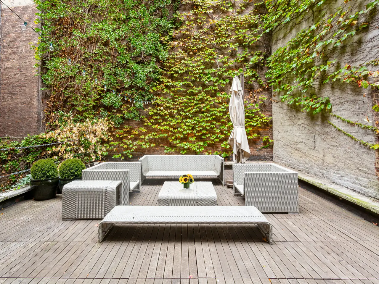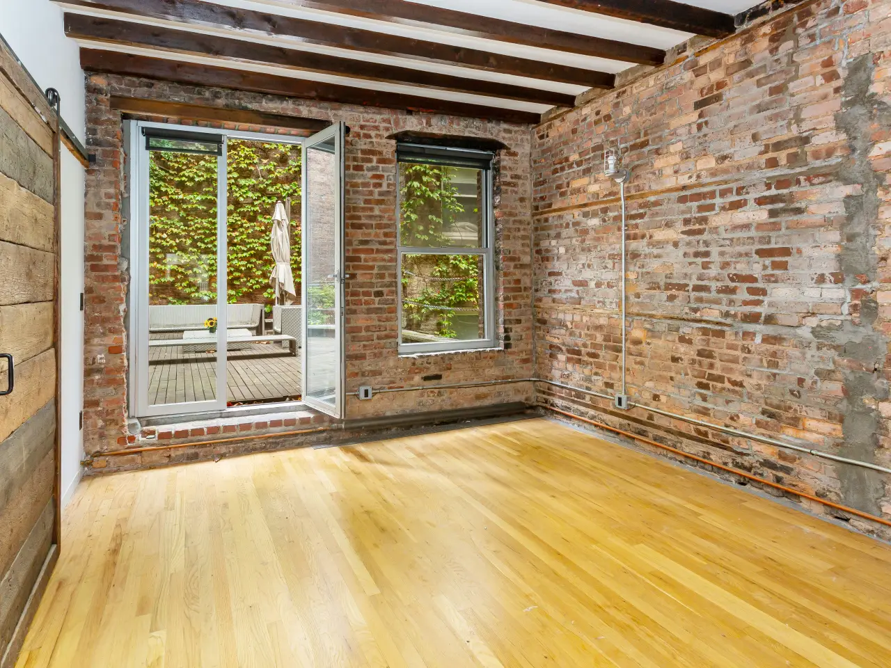 This renovated, full floor loft is perfectly situated on a highly coveted Nolita block. The living room features 11 foot beamed ceilings, exposed brick walls and giant, south facing windows. An open kitchen is decked out with stainless steel cabinetry, wrap around counter with room for seating, and state-of-the-art appliances like a Liebherr fridge, Verona stove, and Miele dishwasher. The quiet, North facing bedroom feels like a secluded sanctuary with direct access to the approximately 500 square foot private deck with lovely climbing ivy. There is plenty of storage with an enormous walk-in closet and other built-ins throughout. The Jack and Jill style bathroom is accessible from the bedroom and living room and is replete with spa quality amenities like a large steam shower and heated floors. The entire loft has automated shades there is also an in-unit washer/dryer. Situated in the heart of Nolita and extremely convenient to the 6,N,R trains and the surrounding neighborhoods of Soho, Noho and more!