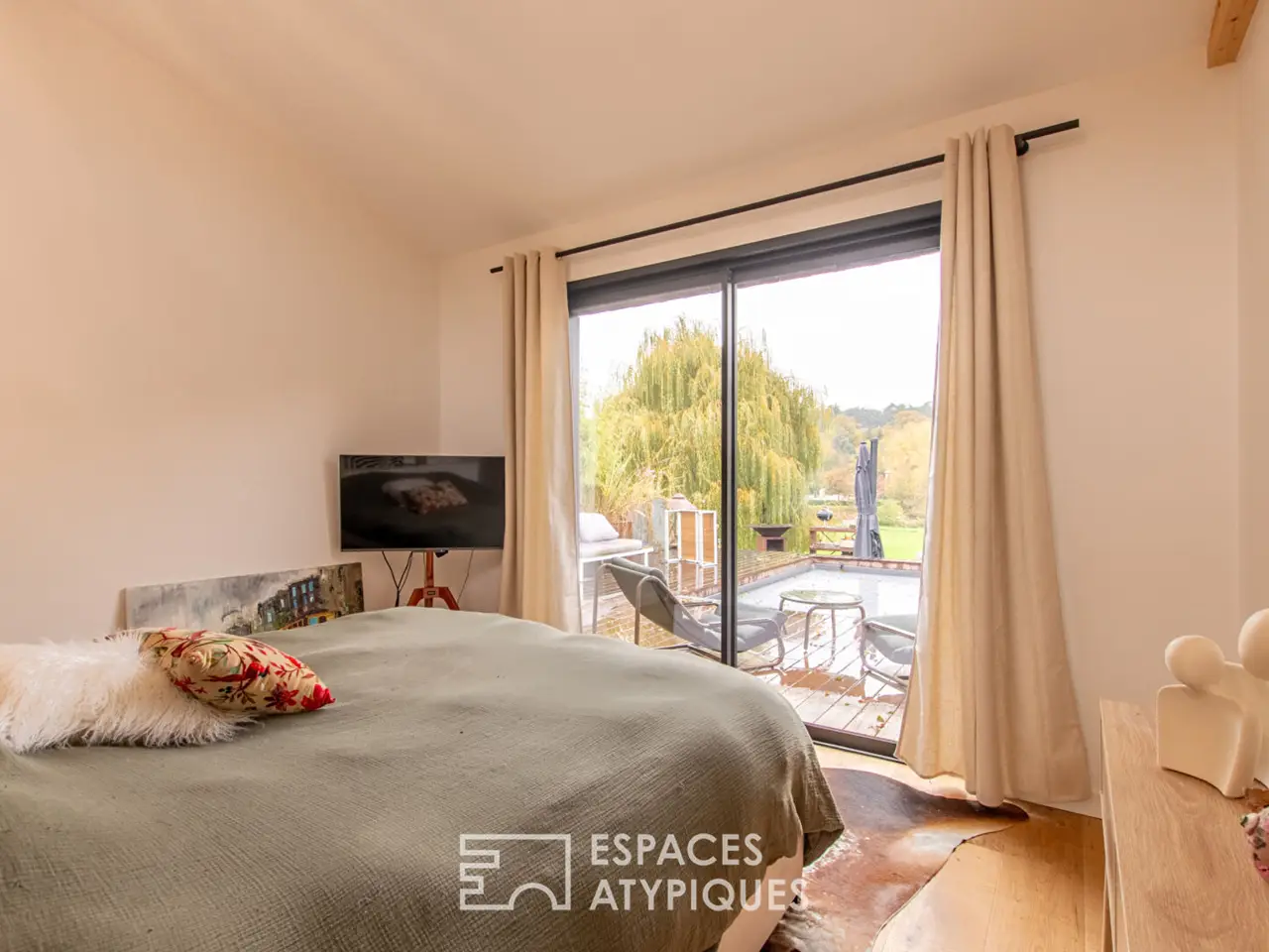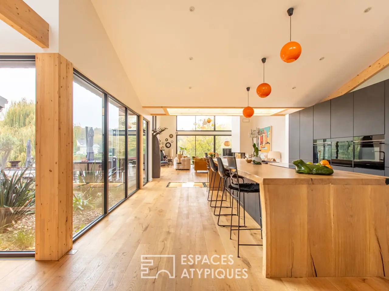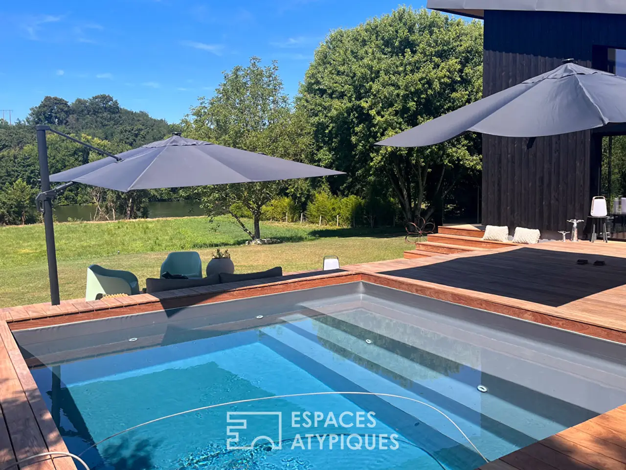 On the tranquil banks of the Sarthe River in Solesmes, this exceptional 212 sq m architect-designed house, completed in 2024, draws inspiration from the refined aesthetic of Cap Ferret villas: timber frame construction, clean lines, abundant natural light, and a constant connection with nature. A unique creation that prioritizes transparency and is designed for seamless flow between indoors and outdoors within a 4,000 sq m park.The vast, fully glazed living space, facing the river and bathed in sunlight, combines the kitchen, dining room, and living room in a single panoramic volume. Wood, glass, and perspectives interact to create an atmosphere that is both warm and contemporary. Evenings linger around the fireplace, and days slip outdoors in just a few steps. An entrance hall with storage, a fitted laundry room, and a separate WC complete this level. The master suite benefits from direct access to the terrace with a built-in dressing room and an elegant bathroom. Two further bedrooms, each with custom-built storage, share a refined bathroom with a toilet. An inspiring office is nestled near the landscaped patio, set back from the heart of the home.The spacious wooden terrace, a true extension of the living space, features a heated swimming pool, creating a particularly inviting area for sunny days.A remarkable detail: a glass partition in the living room reveals the cellar on the lower level, a true architectural signature. On this same level, a workshop and boiler room are discreetly located. A detached garage for two vehicles completes the property. Reversible underfloor heating, home automation, and high-quality materials: every element reflects a high level of quality and comfort.Situated between Le Mans and Angers, this property benefits from the appeal of nearby Sable-sur-Sarthe. Shops, schools, and a TGV station offering connections to Paris in 1 hour and 20 minutes, blend seamlessly with the serenity of the riverside setting, creating an ideal balance between accessibility and a relaxed lifestyle.REF. LM4872Additional information* 6 rooms* 3 bedrooms* 1 bathroom* 1 bathroom* Outdoor space : 4000 SQMEnergy Performance CertificatePrimary energy consumptionb : 72 kWh/m2.yearHigh performance housing*A*72kWh/m2.year2*kg CO2/m2.yearB*C*D*E*F*GExtremely poor housing performance* Of which greenhouse gas emissionsa : 2 kg CO2/m2.yearLow CO2 emissions*2kg CO2/m2.yearA*B*C*D*E*F*GVery high CO2 emissionsEstimated average annual energy costs for standard use, indexed to specific years 2021, 2022, 2023 : between 980 € and 1410 € Subscription IncludedAgency feesThe fees include VAT and are payable by the vendorMediatorMediation Franchise-Consommateurswww.mediation-franchise.com29 Boulevard de Courcelles 75008 ParisInformation on the risks to which this property is exposed is available on the Geohazards website : www.georisques.gouv.fr