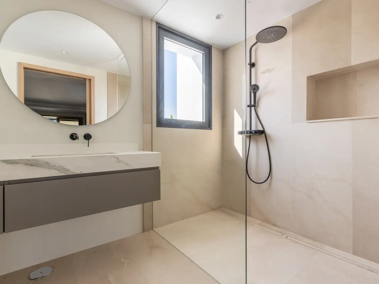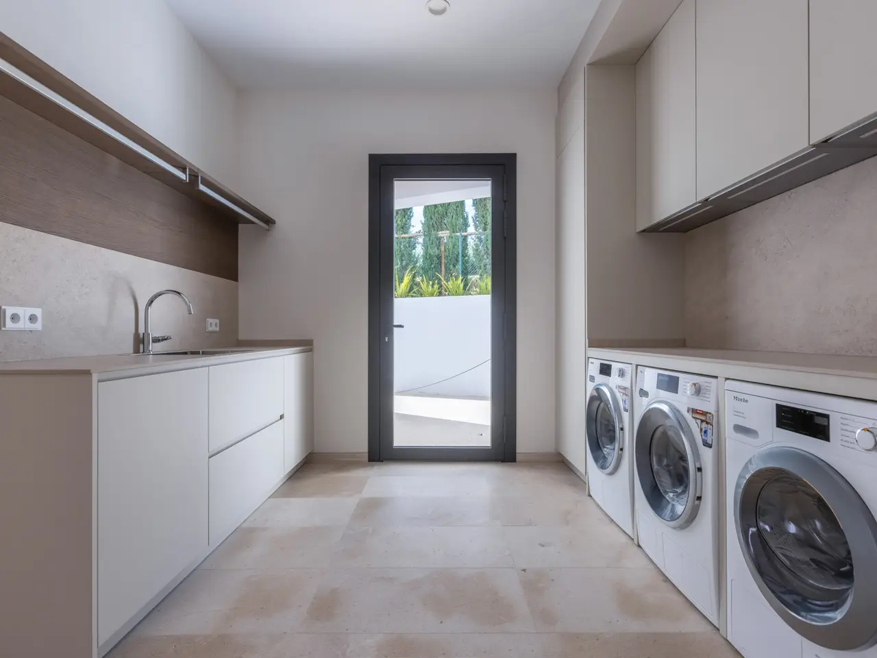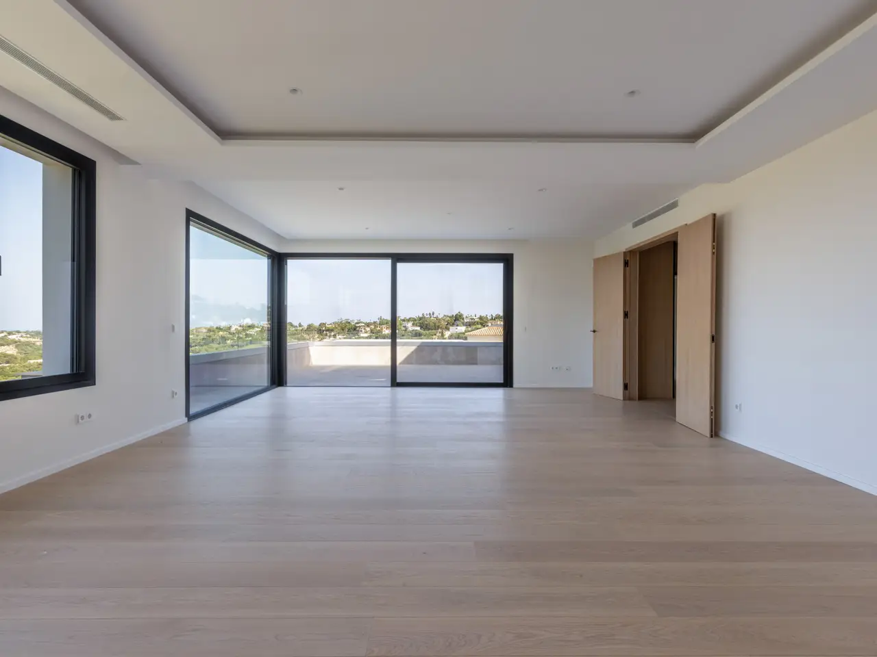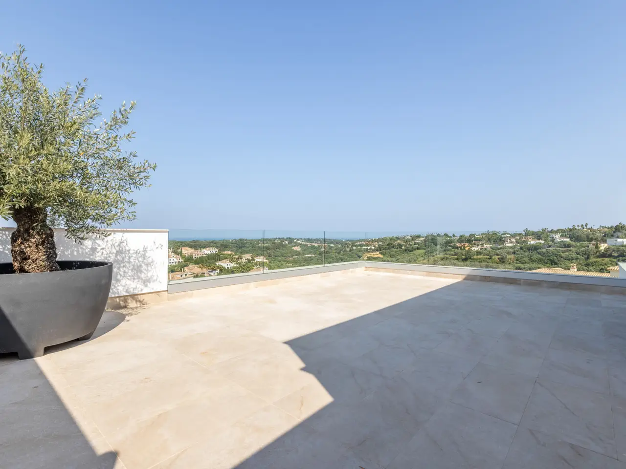 This incredible, recently built villa, located in a highly sought-after area, stands out for its spacious interiors, modern design, and spectacular panoramic views of the golf course, sea, and mountains. The villa sits on a generous 3,765 m² plot, offering a built area of 1,326 m² and an interior space of 920 m², complemented by a total of 308 m² of terraces and porches. The property features six bedrooms, seven full bathrooms, and an additional guest toilet, ensuring maximum comfort and privacy. Each room has been designed to provide brightness and spaciousness, and the property includes features such as underfloor heating throughout, air conditioning, central heating, smart home automation systems, and aerothermal technology. The layout also comprises a guest apartment, office, dressing room, main living room with fireplace, and several terraces (both covered and uncovered), including a solarium with breathtaking views. The exterior captivates with a meticulously maintained private garden, automatic irrigation system, and an impressive infinity pool that blends seamlessly with the landscape. The outdoor kitchen, fully equipped under a pergola, is ideal for enjoying barbecues and outdoor gatherings. The villa, located in a gated community with 24-hour security service, also boasts a private garage, storage room, elevator, accessible entrance for people with reduced mobility, and high-end finishes such as wooden floors and electric blinds. Thanks to its proximity to golf courses, the sea, marina, shops, schools, and all the amenities of Sotogrande, this villa represents a unique opportunity for those seeking exclusivity, privacy, and unparalleled views in one of the best residential areas of the Costa del Sol. Do not miss this opportunity and contact us for more information.