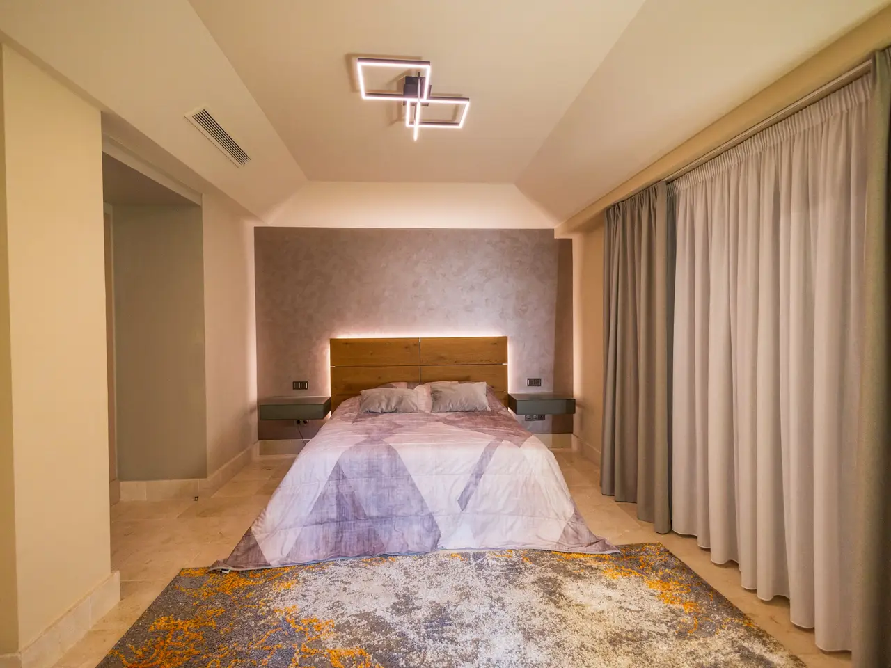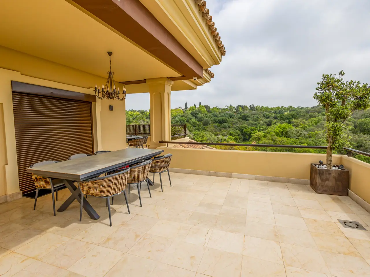 This penthouse duplex is located in one of the most coveted areas of Sotogrande. Just a few meters from the prestigious Valderrama golf course, this property offers a privileged location for sports and tranquility lovers. It consists of 4 bedrooms and 5 bathrooms, making it a perfect place for families or those in need of additional space for guests. The duplex penthouse has a built area of 340 square meters and an impressive terrace of 192 square meters, perfect for enjoying the Mediterranean climate and stunning mountain and golf course views. The luxurious and elegant decoration creates a sophisticated and cozy atmosphere throughout the property. This property features a private cinema room, ideal for enjoying movies and entertainment at home. It is also fully furnished and equipped with all modern amenities. Underfloor heating throughout the house provides a warm feeling during the colder months, and the fireplace in the main living room creates a cozy ambiance. The duplex penthouse also offers central heating and air conditioning, ensuring a perfect temperature all year round. It also has two parking spaces and a storage room for added convenience and storage. The property is part of a private community with a swimming pool, spa, and gym, where residents can enjoy moments of relaxation and well-being. There are also green areas, a small golf area, and a paddle tennis court for those who wish to stay active and enjoy the outdoors. The urbanization is private and has 24-hour security and access control, providing peace and tranquility to residents. It is also close to the International School of Sotogrande, making it an excellent choice for families with school-age children. Located near the marina, beaches, restaurants, and leisure areas, this property offers an exceptional lifestyle in one of the most exclusive destinations on the Costa del Sol. Enjoy the natural beauty of Sotogrande and all the amenities that this area has to offer in this luxury duplex penthouse. Don't miss the opportunity and contact us for more information.
