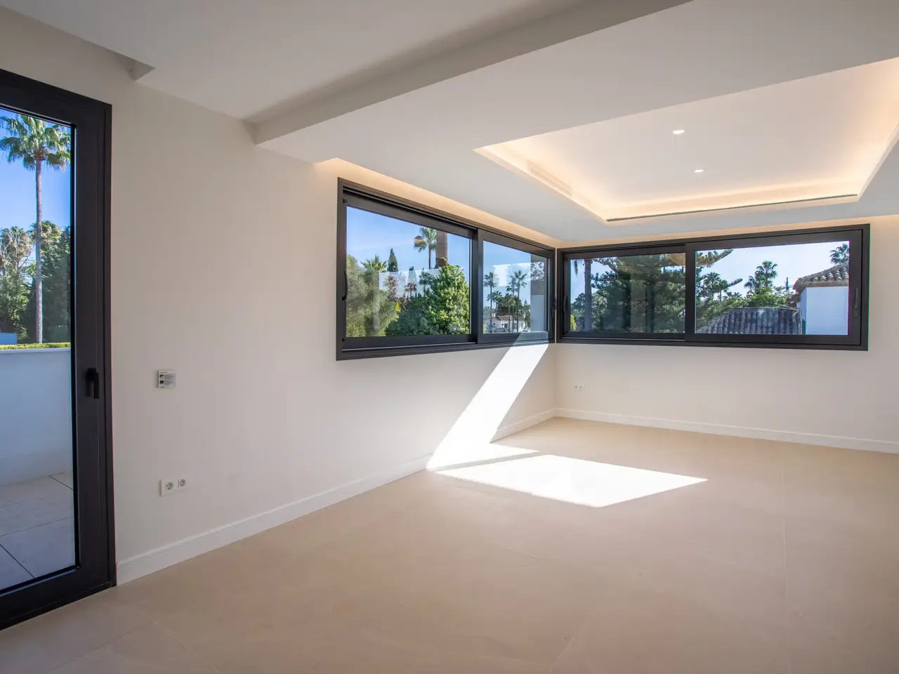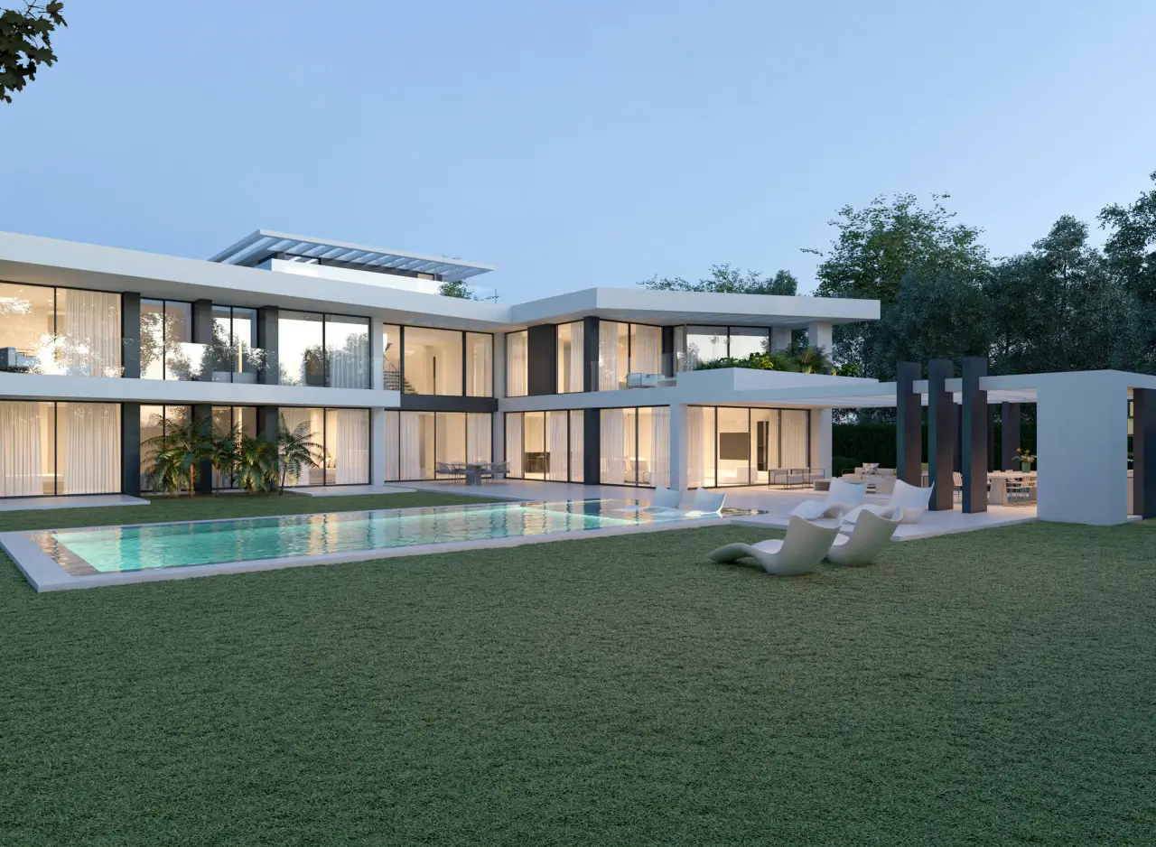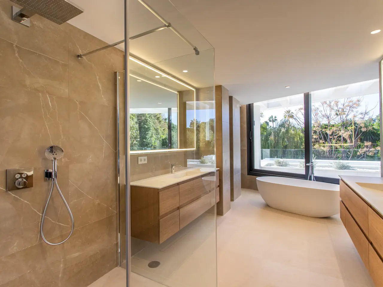 Located on a plot of over 2,000 square meters in one of the most exclusive areas of Sotogrande Costa, this magnificent villa combines modern and elegant style with its vertical lines and sober colors. The house is surrounded by large windows, maximizing natural light and energy efficiency. It features 5 bedrooms, 5 bathrooms, and 2 guest toilets. The ground floor consists of a beautiful entrance hall that separates the two bedrooms, both with ensuite bathrooms, from the spacious living-dining area with an open kitchen and a fantastic island. There is also a guest toilet and an elevator connecting all floors. From the living room, you can access the garden through a lovely terrace with pergolas, perfect for enjoying unforgettable moments under the moonlight with a drink or al fresco dining, taking advantage of the excellent climate of the area. Next to this terrace, there is a 14x6m infinity pool with LED lighting, offering both a swimming area and a relaxation area with sun loungers. The pool also has pre-installation for heating, so you can enjoy a swim after a long day of work. On the first floor, you will find an impressive master bedroom with an ensuite bathroom, a dressing room, and a private sitting area. The master bedroom also has access to a covered porch with stunning views. On the other side of the first floor, there are two more bedrooms, both with ensuite bathrooms. On the next floor, there is an uncovered terrace of 150 square meters. Can you imagine it? Finally, the basement offers endless possibilities. In addition to a covered garage of almost 50 square meters, a laundry room, and a toilet, there is a spacious open area of 149 square meters that can be used as a playroom for children, additional bedrooms, a gym, a wine cellar, a spa, or a magnificent home cinema! As for the quality of the materials, this spectacular villa is equipped with a reinforced door and energy-efficient VRF air conditioning system, as well as ventilation systems with heat recovery for increased comfort and energy savings. It also has underfloor heating and an aerothermal system. The villa is pre-installed for solar panels and an electric car charging point. The kitchen is furnished and equipped by Modulnova, with appliances from the Gaggenau brand. This is the perfect villa in the perfect location. Call us to arrange a viewing!