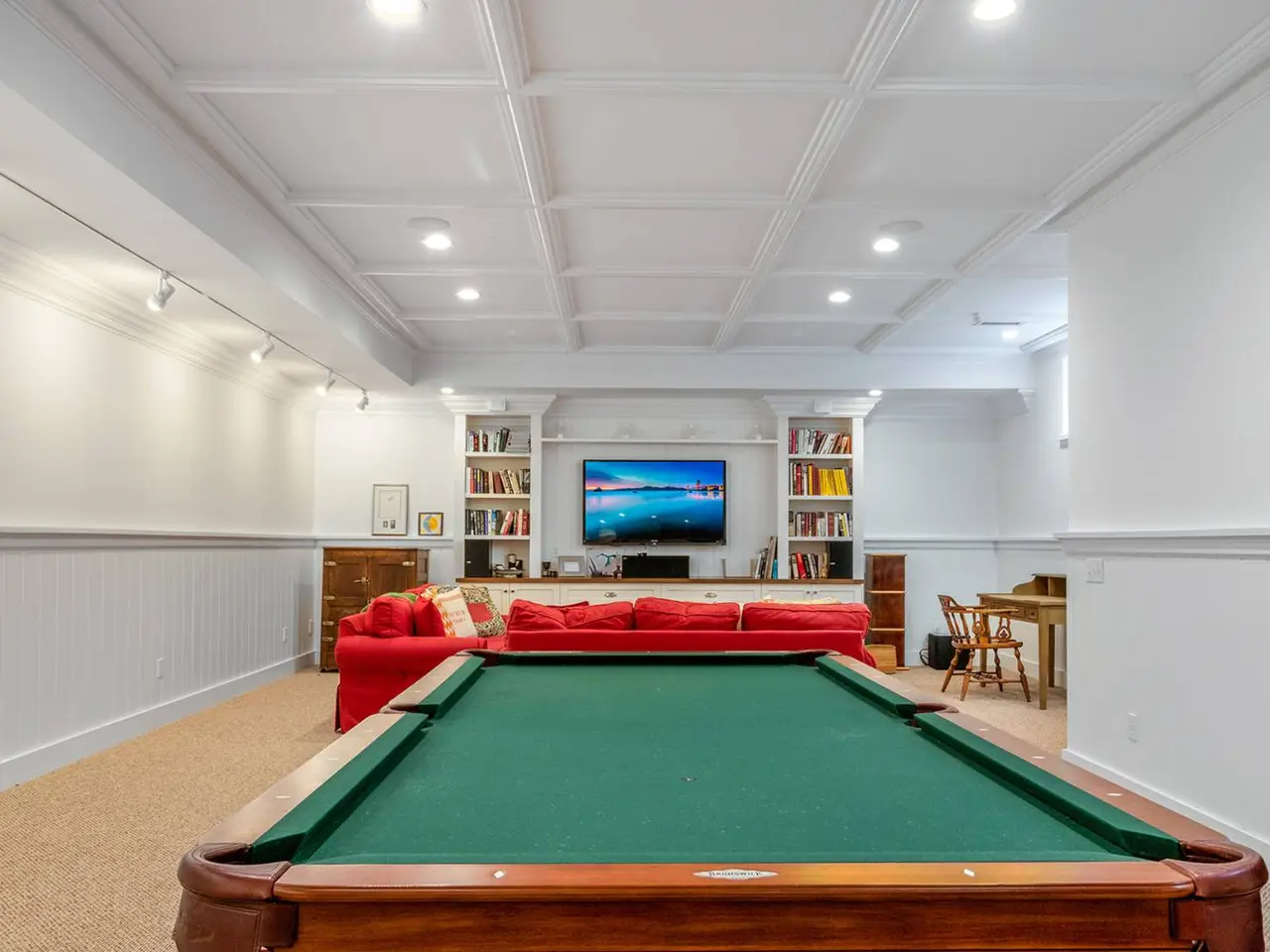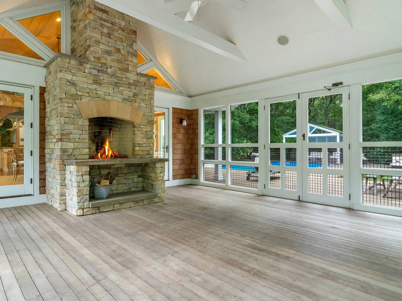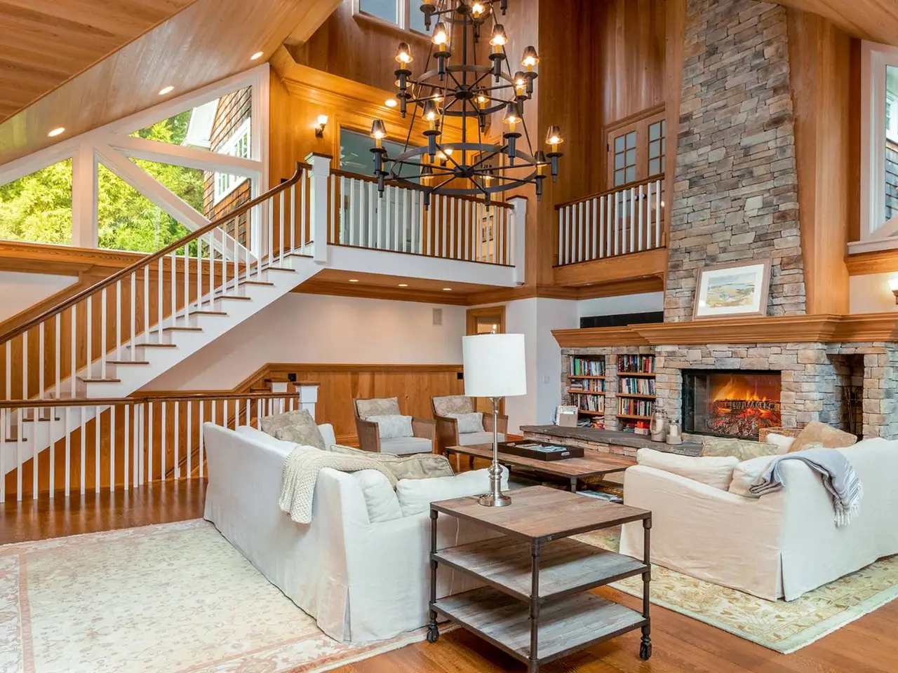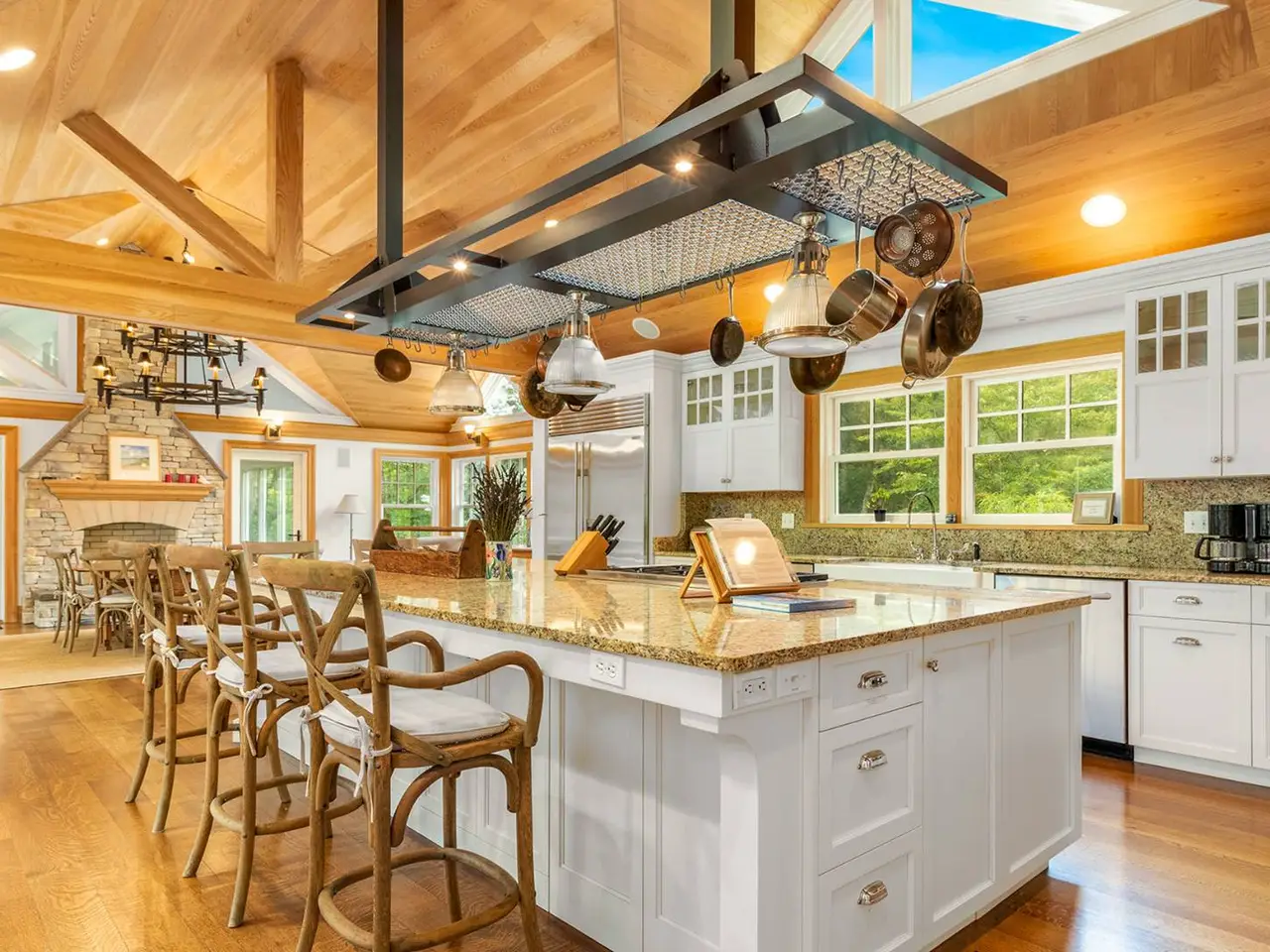 This beautiful home offers great style and large open space and all amenities. Open cathedral living room with fireplace, Huge kitchen with center island and stools for the 'in the kitchen parties', open dining room with fireplace, screened in porch for summer entertaining. The kitchen, dining room, living room and screened porch all connected. All very large public rooms plus a large first floor master bedroom with fireplace. ensuite , with two additional bedrooms, second floor large master bedroom with fireplace ensuite, with two additional bedrooms, finished basement with entertaining area, with flat screen TV and bar area, two bedrooms and two baths. Cozy, private, nicely furnished. The exterior has a salt water pool and very private grounds. A most enjoyable atmosphere. Listing ID: 738205