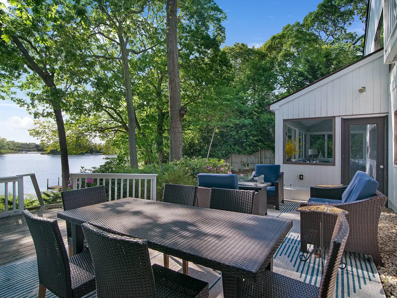 Rental Registry #: RP230332. Charming & magical waterfront property with spectacular views in prime Hamptons location off North Sea Harbor. Minutes to Southampton Village and Sag Harbor. Walk to Towd Point Beach. The property is on the water and features a private dock with room for a 22' boat as well as a jet ski floating dock and is completely navigable to Peconic Bay and the ocean. Renovated and newly furnished with a nautical/coastal vibe, the house features an open concept kitchen, dining, living room & bathroom on the first floor. The second floor has 3 bedrooms and 2 bathrooms as well as another office/den area with pull out sofa. The master has an en-suite bath, walk in closet and lovely Juliet balcony. All bedrooms and living spaces are equipped with TVs. Luxury bedding and linens are provided. Every room in the house directly faces the water and has stunning views. Swans and ducklings are daily visitors. Enjoy dining al fresco on the beautifully furnished outdoor patio equipped with fire pit and tiki torches. Roast marshmallows, grill fresh seafood and watch the sunsets in a sublime setting. Paddleboards & Kayaks are provided and ready to launch directly from your own private dock. Boats and jet skis are available for rent from a local marina minutes away. Fish Cove leads directly into North Sea Harbor and Peconic Bay. Front yard has a basketball hoop and grassy lawn. Laundry room with new washer/dryer on first floor. Extremely private and quiet location. Visit local farms and wineries. Sailing, yoga, golf, tennis, jet skis and fishing are just some of the many possibilities in this upscale and bucolic setting. Listing ID: 899747