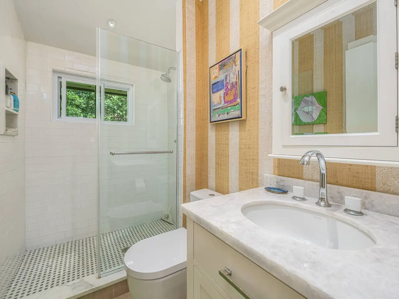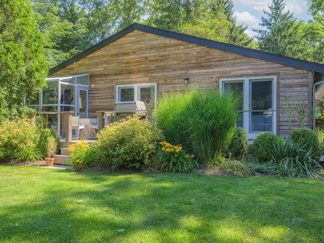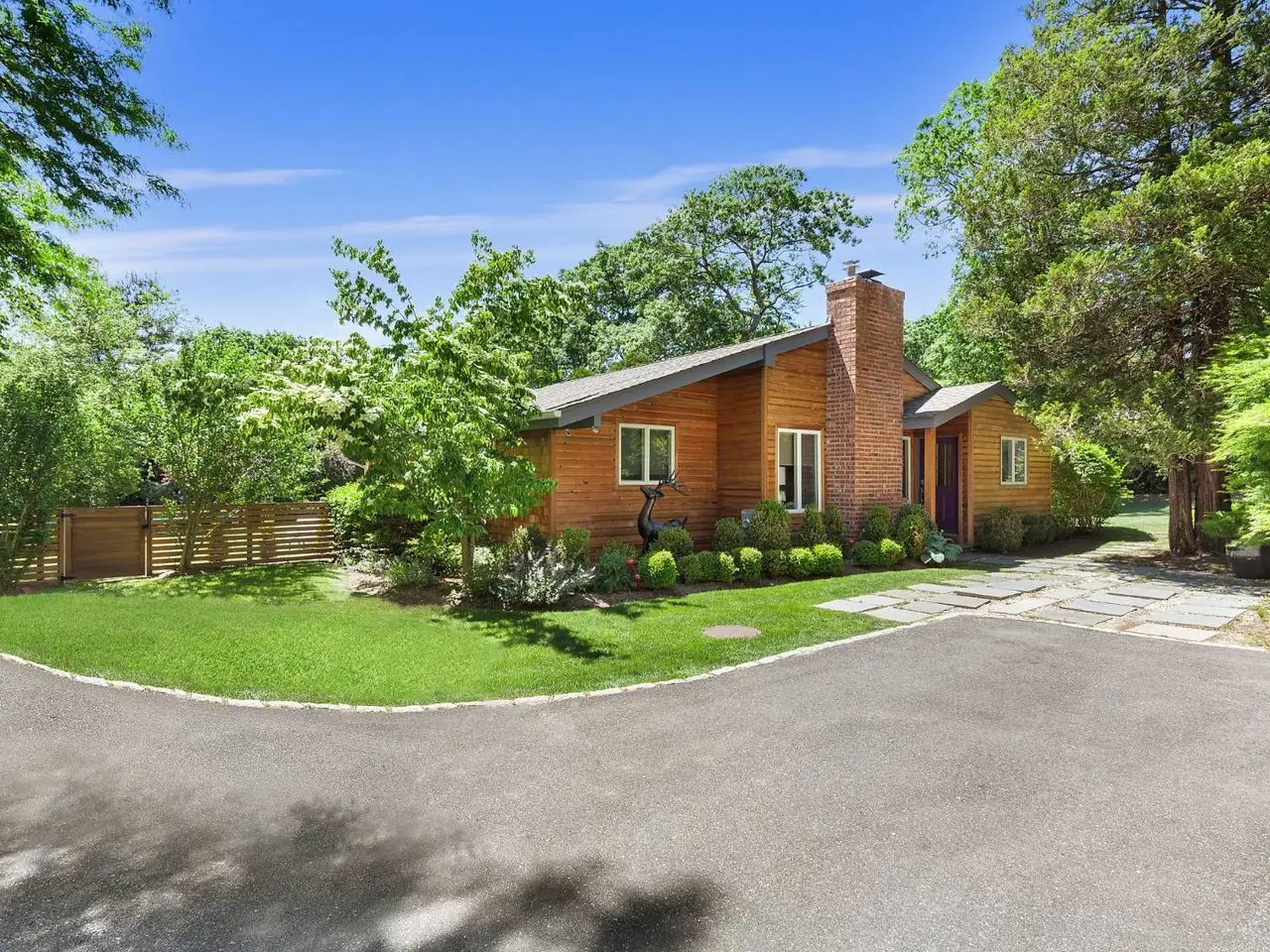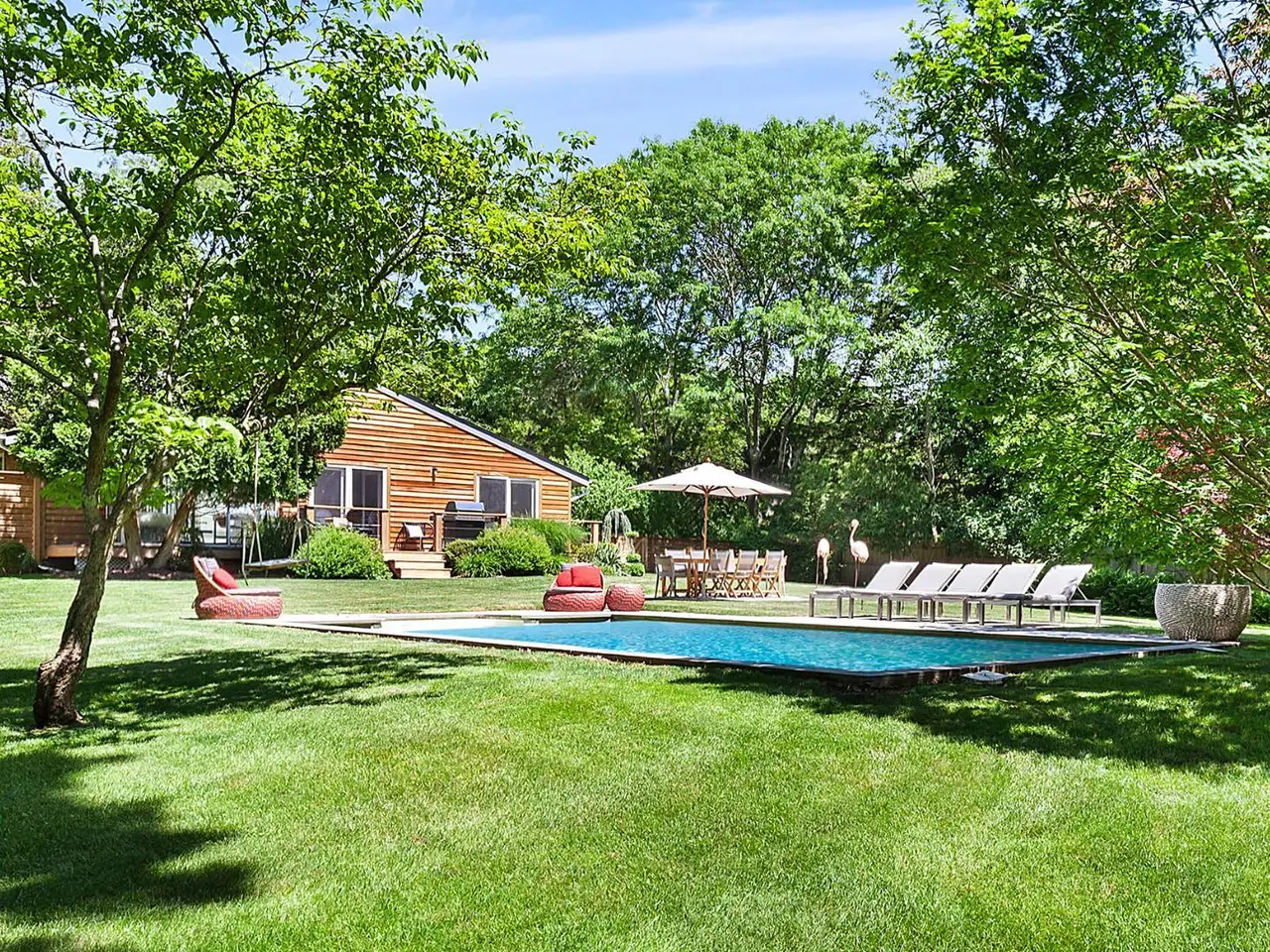 A rare opportunity with great charm in Southampton, sits this updated and well-appointed contemporary with a separate accessory apartment. Conceptualized by world-renowned designer, Elsa Soyars, the single-story four bedrooms and two full baths main house offers charm, style and timeless elegance on 1.03 acres. The bright foyer with vaulted ceilings, opens to a lovely living room and dining area with a wood-burning fireplace. The open floor plan includes a stylishly-renovated kitchen with French doors leading to the outdoor space, which is secluded and tranquil, featuring a deck overlooking the heated swimming pool, multiple entertaining areas and a broad lawn with beautifully mature landscaping. The cottage offers an additional approximately 600 square feet of living space, which has two floors and separate from the main house, has a renovated kitchen and full bath, central air conditioning with a second floor studio, as well as a spacious private outdoor patio and parking area. This gem presents a great potential investment or an opportunity to create a serene Hamptons retreat, conveniently located just outside Southampton Village and world-class shopping, restaurants, bay and ocean beaches. Listing ID: 914528