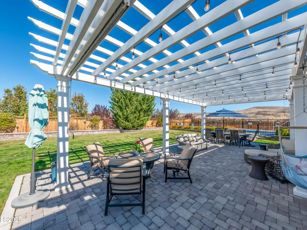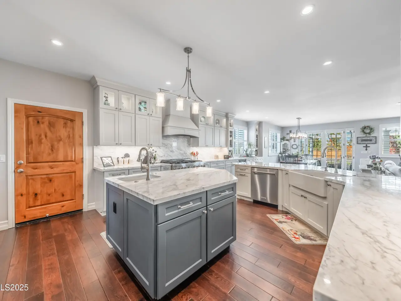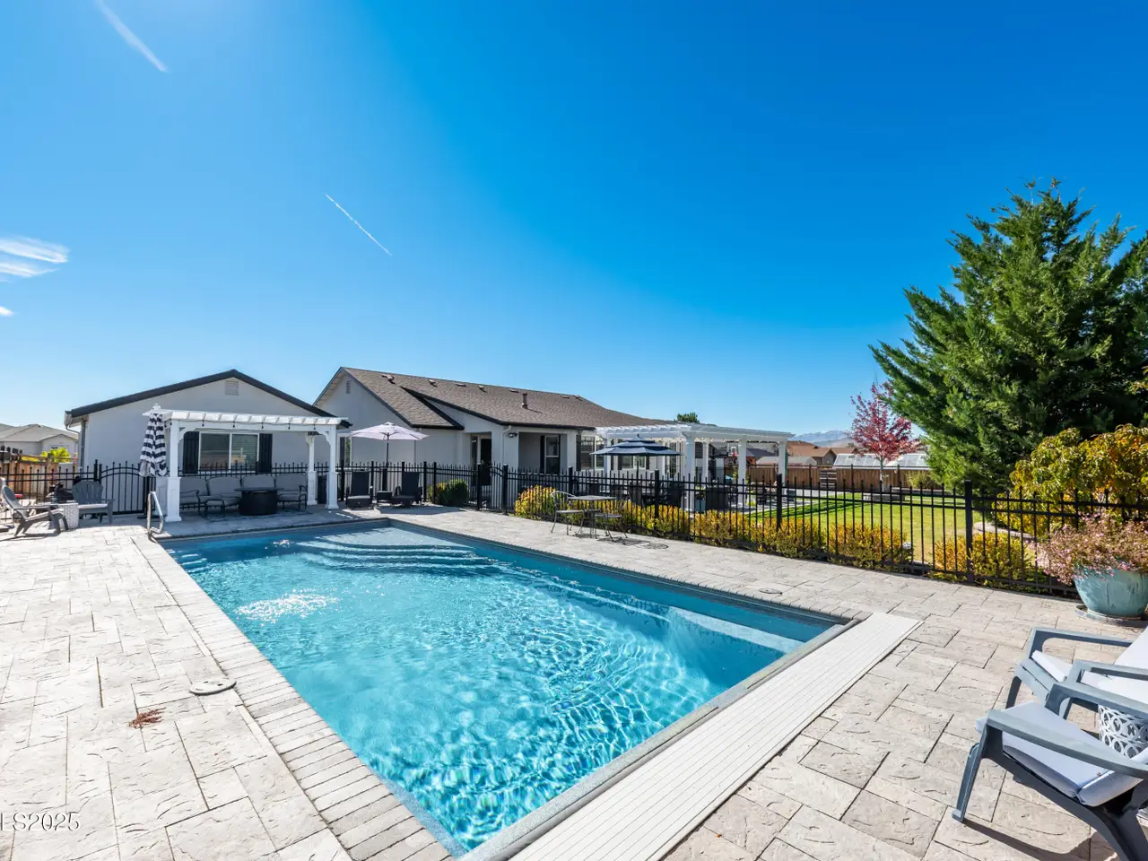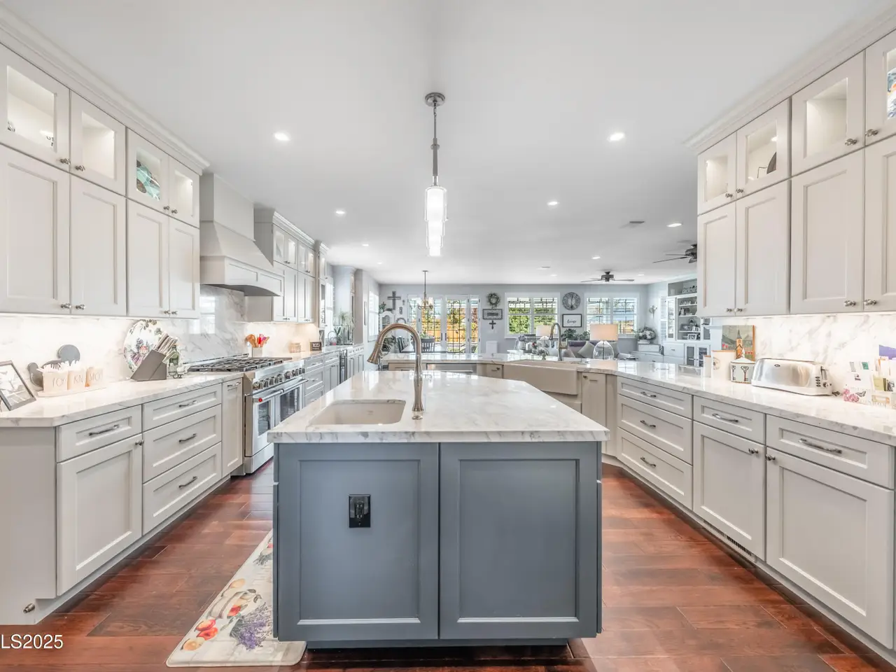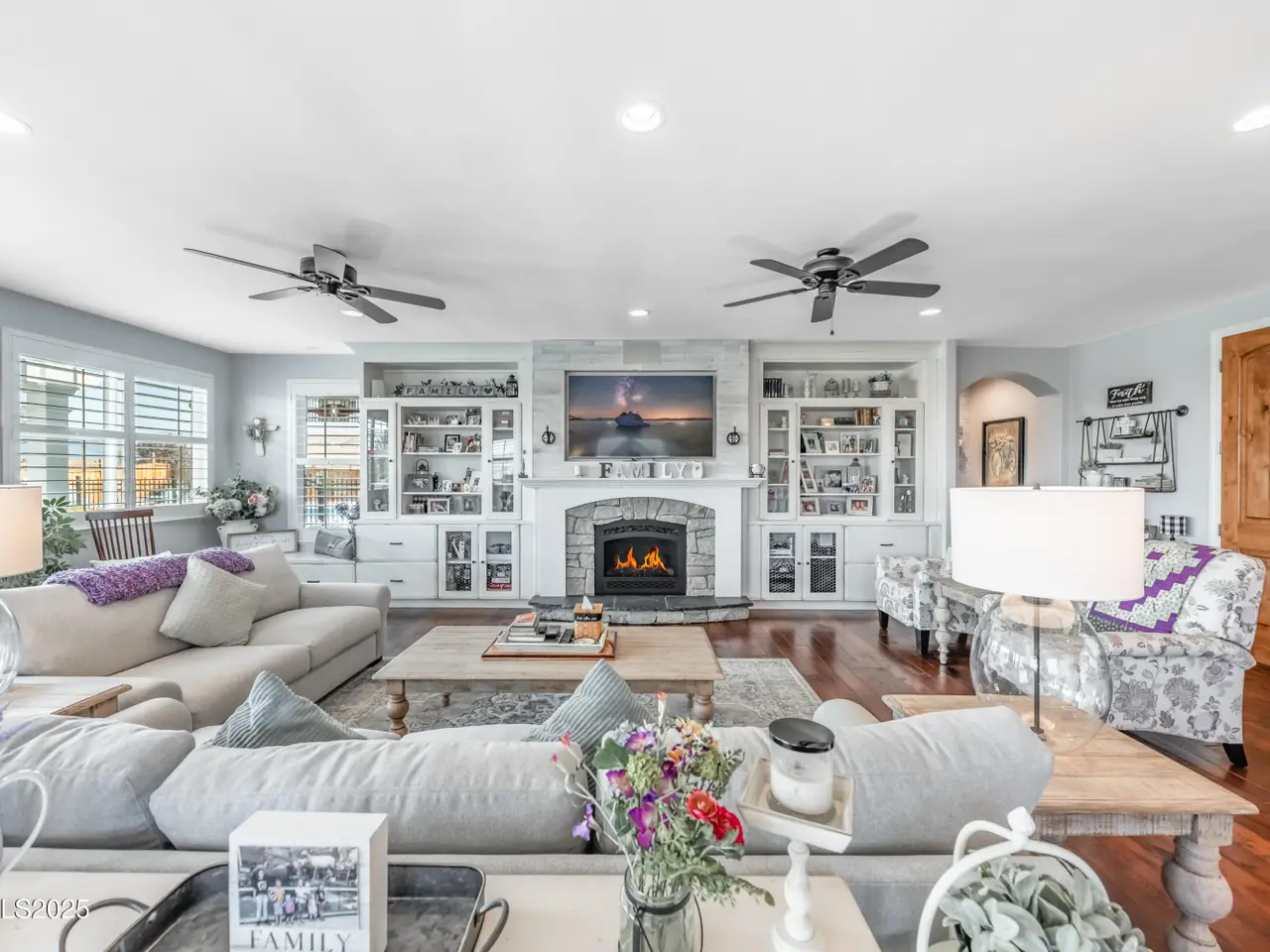 Morning light streams through the windows, casting a golden glow across the wood floors. You step into the expanded great room, coffee in hand, and take in the open, airy feel — sunlight pouring in from every direction, bouncing off the soft tones of the stone fireplace and the built- ins beside it. It is a warm and welcoming space that lets you know you're home. In the heart of it all, the newly remodeled kitchen is a true showstopper. Marble counters and backsplash sparkle beneath the light. The 48" range with double oven hums quietly, ready for breakfast pancakes or a dinner party feast. Stainless steel appliances, a prep sink, custom island, beverage fridge, and bar sink make the space as functional as it is beautiful. The cabinet drawer glides open smoothly, and the roll-out trays make finding what you need effortless. As afternoon arrives, the French doors swing open to the backyard, blurring the line between indoors and out. The paver patio and pergola offer the perfect spot for lunch in the shade, while laughter drifts from the pool area beyond the gated entry. For the outdoor enthusiast, there's room for everything — RV parking, a two-car shop ready for projects or storing your side by side. Evening brings a new kind of energy. The great room glows in the soft light of the setting sun, windows framing a peaceful view. Friends and family fill the open floor plan. Whether it's a formal dinner in the dining room or a cozy meal by the kitchen, this is where entertaining and connection collide. As the night winds down, retreat to your primary suite. The spa-like bath invites you to unwind with a soak in the garden tub, a rinse in the walk-in shower, or a moment at the dual sinks. A waltz into the walk-in closet feels like your own private dressing room. Custom built-ins line the walls — drawers, shelves, and clever storage nooks for shoes, bags, and accessories — keeping every piece in its place. For those working from home, the dedicated office offers the best of practicality with built-ins for organization and display. Even routine tasks feel lighter here — the laundry room features beautiful hard-surface counters, a sink, and plenty of custom cabinetry to keep everything neatly tucked away. This home truly checks every box — and then some. So if you are looking for the ultimate "this place has everything" kind of home, this is it!