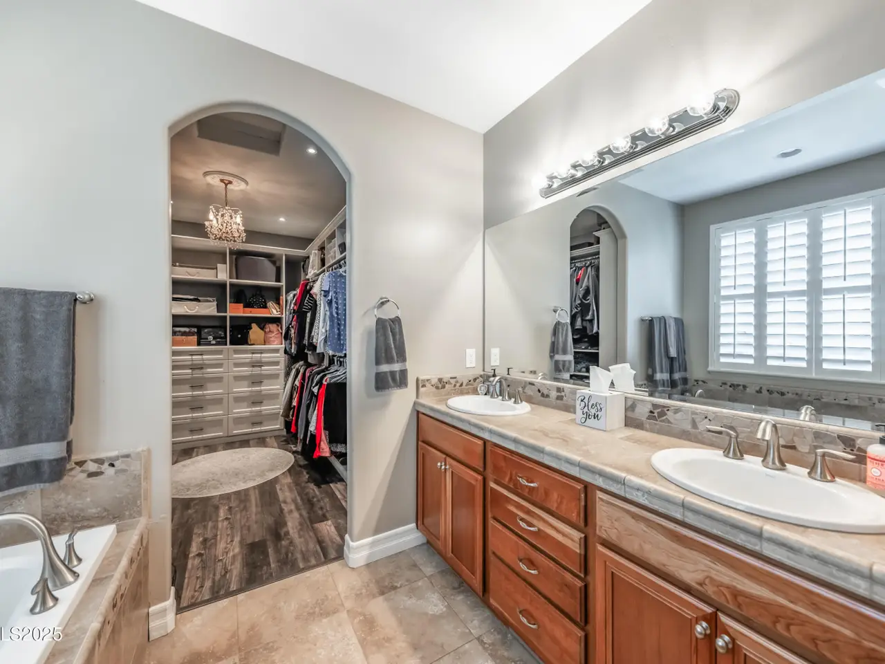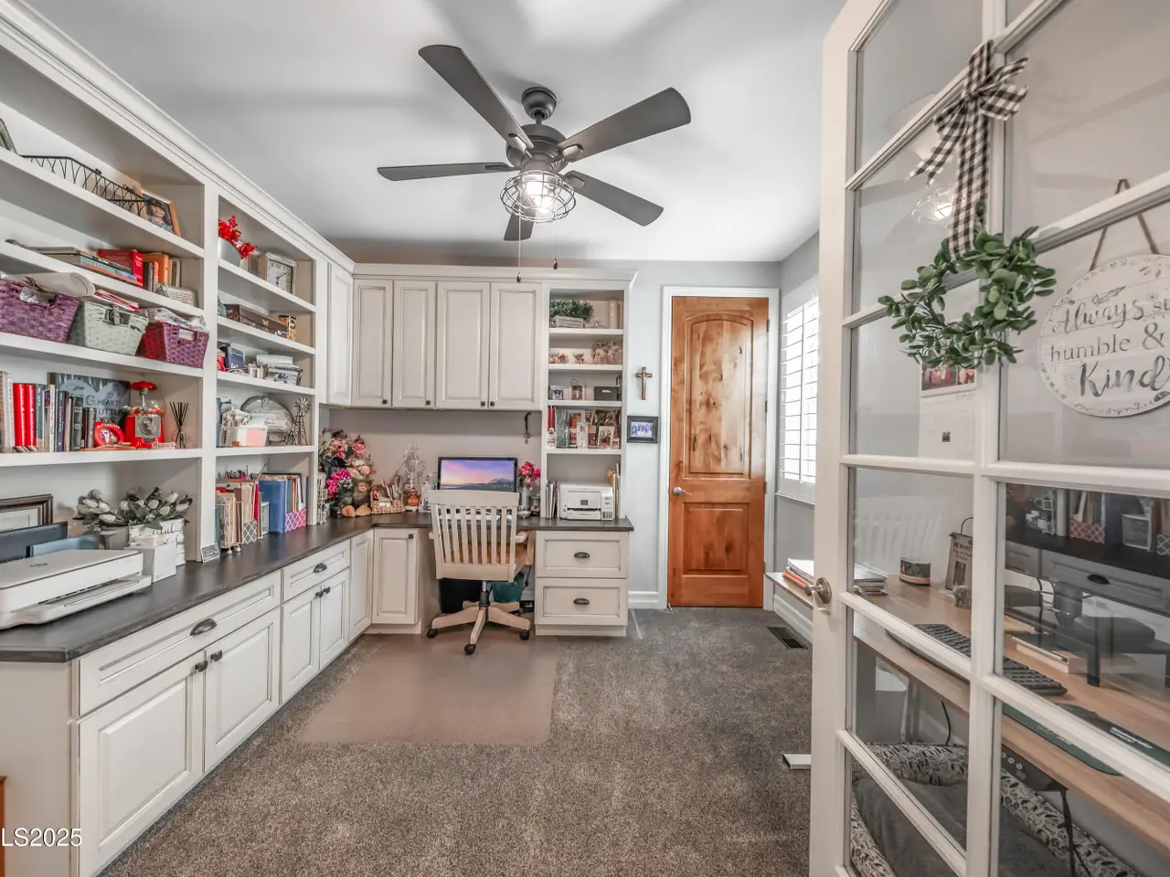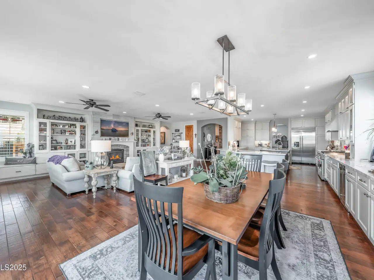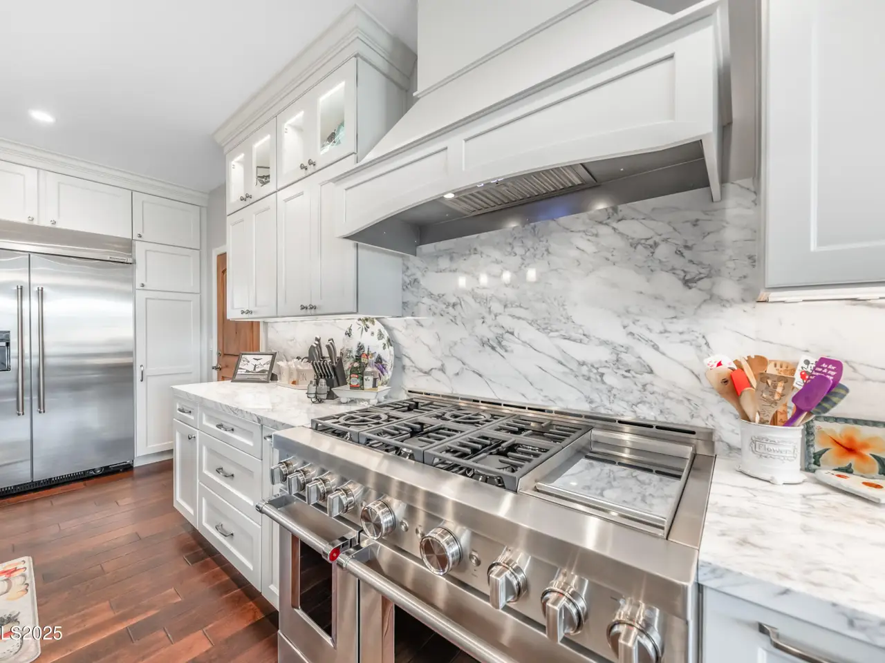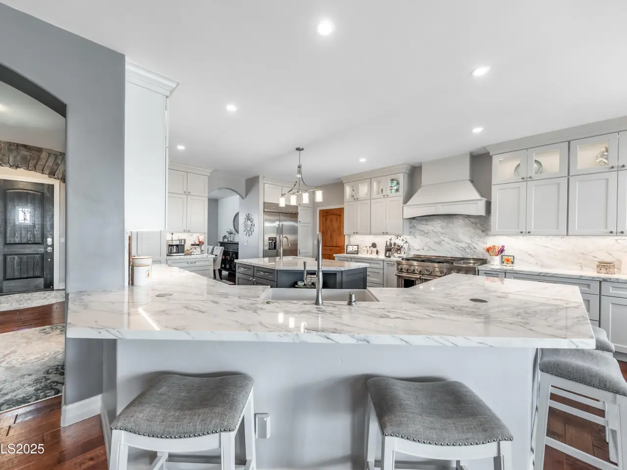 Morning light streams through the windows, casting a golden glow across the wood floors. You step into the expanded great room, coffee in hand, and take in the open, airy feel — sunlight pouring in from every direction, bouncing off the soft tones of the stone fireplace and the built- ins beside it. It is a warm and welcoming space that lets you know you're home. In the heart of it all, the newly remodeled kitchen is a true showstopper. Marble counters and backsplash sparkle beneath the light. The 48" range with double oven hums quietly, ready for breakfast pancakes or a dinner party feast. Stainless steel appliances, a prep sink, custom island, beverage fridge, and bar sink make the space as functional as it is beautiful. The cabinet drawer glides open smoothly, and the roll-out trays make finding what you need effortless. As afternoon arrives, the French doors swing open to the backyard, blurring the line between indoors and out. The paver patio and pergola offer the perfect spot for lunch in the shade, while laughter drifts from the pool area beyond the gated entry. For the outdoor enthusiast, there's room for everything — RV parking, a two-car shop ready for projects or storing your side by side. Evening brings a new kind of energy. The great room glows in the soft light of the setting sun, windows framing a peaceful view. Friends and family fill the open floor plan. Whether it's a formal dinner in the dining room or a cozy meal by the kitchen, this is where entertaining and connection collide. As the night winds down, retreat to your primary suite. The spa-like bath invites you to unwind with a soak in the garden tub, a rinse in the walk-in shower, or a moment at the dual sinks. A waltz into the walk-in closet feels like your own private dressing room. Custom built-ins line the walls — drawers, shelves, and clever storage nooks for shoes, bags, and accessories — keeping every piece in its place. For those working from home, the dedicated office offers the best of practicality with built-ins for organization and display. Even routine tasks feel lighter here — the laundry room features beautiful hard-surface counters, a sink, and plenty of custom cabinetry to keep everything neatly tucked away. This home truly checks every box — and then some. So if you are looking for the ultimate "this place has everything" kind of home, this is it!