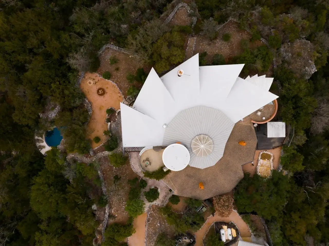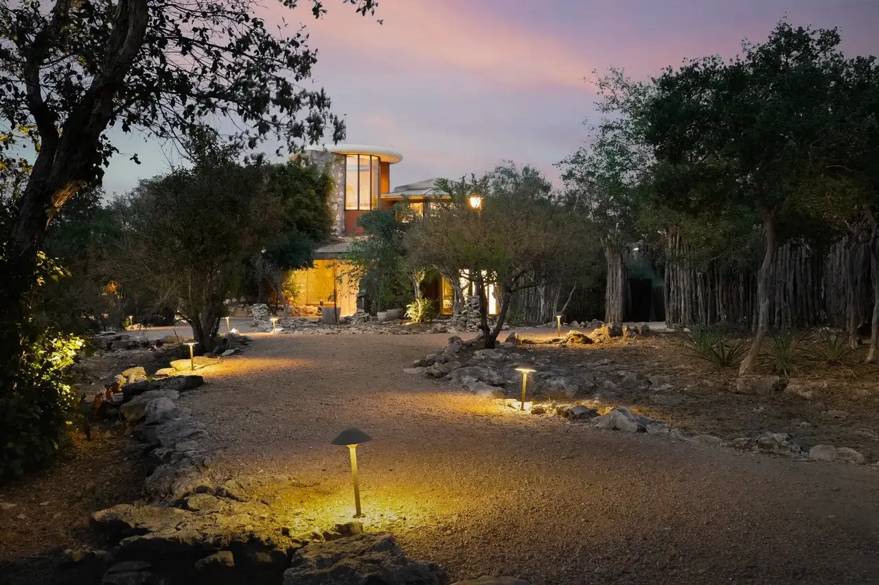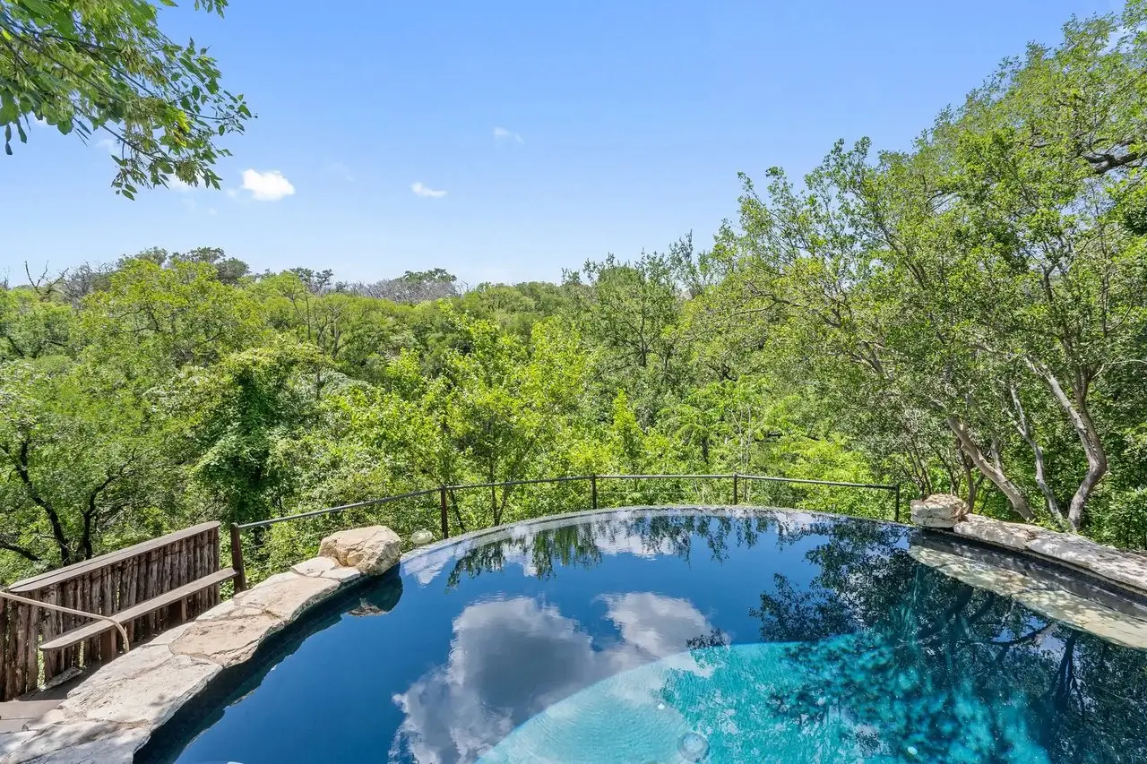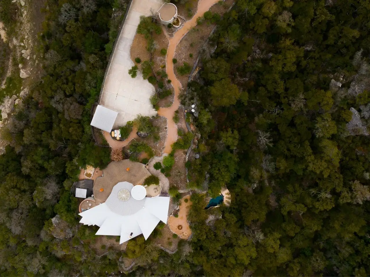 Architecturally Significant Compound in Spicewood | Once-in-a-Lifetime Retreat in Spicewood Once in a lifetime chance to own this culturally and architecturally significant home in the Hill Country, designed by John Covert Watson, an intern of Frank Lloyd Wright’s. Set on 30 stunning acres in Spicewood, The Retreat at Lick Creek Lodge is a one-of-a-kind compound offering the architecture lover the opportunity to be surrounded both by exquisite design and natural beauty. Defined by its hyperbolic parabola roof which resembles a splayed deck of cards, this home is striking inside and out. The roof creates a semi-circular motif that is repeated throughout the house, from the entry rotunda to the arching wall of glass that spans the living room and looks out to the tangle of nature enveloping the home. Interiors Celebrating Local Materials | Memorable Entertaining and Private Hideaways The interior is a celebration of the Texas Hill Country, making use of locally harvested cedar and nearby-quarried desert masonry contrasted with concrete, steel and glass. Cork floors plus rich oak and maple cabinetry add warmth and richness. An extraordinary entertaining space, the living room arches around a limestone fireplace and looks out over the rolling hills; it has hosted galas and concerts when not serving as a private retreat. The floorplan offers many unique hideaways, from a secret-door-accessed office to a serene meditation room. Roam 30 Acres with a Grotto Pool | Miles of Views with Resort Amenities The 30-acre property is set on a cliff over the Pedernales river and overlooks steep ravines and miles of green hills. Step down the hillside to the grotto pool, half-hidden in a rocky crevasse, where you can swim as if you were on a desert island. The ultra-private compound includes a large guest house and office at the front of the property; you will wend your way along gravel paths and native landscaping to reach the main house. Just 40 minutes from Austin, this property offers multiple uses, from a close-in family retreat to executive escape or small resort rental. Regardless, this property will continue to fascinate, inspire and restore its owners for years to come.