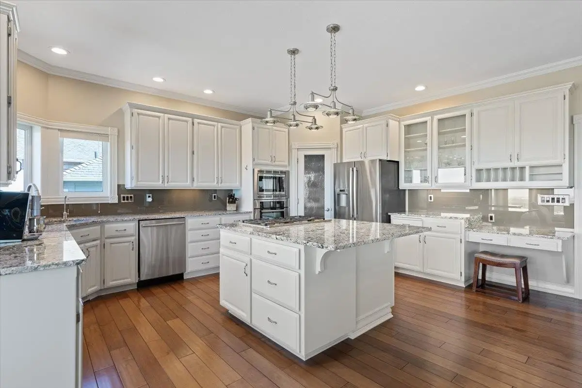 An impressive home on Spokane's South Hill completely updated inside and out with stunning views! Step inside this inviting home to all main floor living and views from every room. The sunsets are gorgeous! The granite kitchen is spacious with white cabinets, big picture windows lets the light pour in. An open living room area with a double sided fireplace brings warmth and relaxation. Great work from home space in the regal office with quality built-ins and a granite-top desk. A large primary suite with a luxurious bathroom and walk-in closet nearby. Off the main bedroom is your separate entrance to an enormous deck overlooking the backyard and views that stretch for miles. Enjoy an in-ground pool with new decking. The daylight basement has 3 bedrooms and a bath with a wet bar and a recreational gathering spot for dozens - pool table, foosball, movies, music, sauna, exercise workout area - it's all there and ready for your enjoyment!