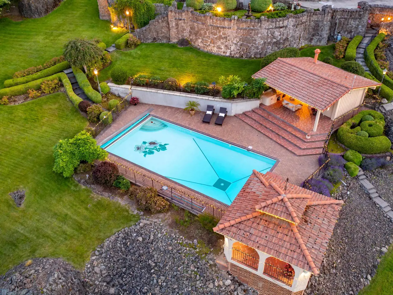 The Victor & Georges Dessert House is a landmark estate in Spokane's historic Rockwood neighborhood - privately sited on 1.32 acres with sweeping 270-degree views. Built in 1936, this Spanish Eclectic masterpiece by architect G.A. Pehrson is listed on both the National and Spokane Registers of Historic Places. With over 7,500 square feet, the home features four bedrooms, five bathrooms, three kitchens, a sun room with wet bar, wine cellar, and two private decks. Recent upgrades include a whole-house generator, on-demand water heater, and pool renovations. A resort-style tiled gunite pool - with a hand-laid rose mosaic at its center - anchors the grounds, alongside a full outdoor kitchen, fireplace, cabana, and gazebo. A showcase of masterful design and enduring craftsmanship, this estate stands as one of Spokane's most architecturally significant homes.