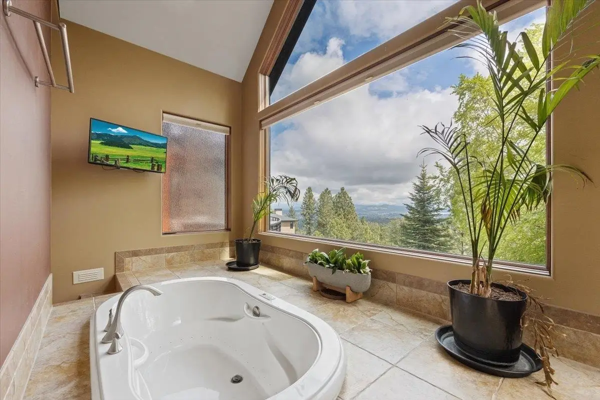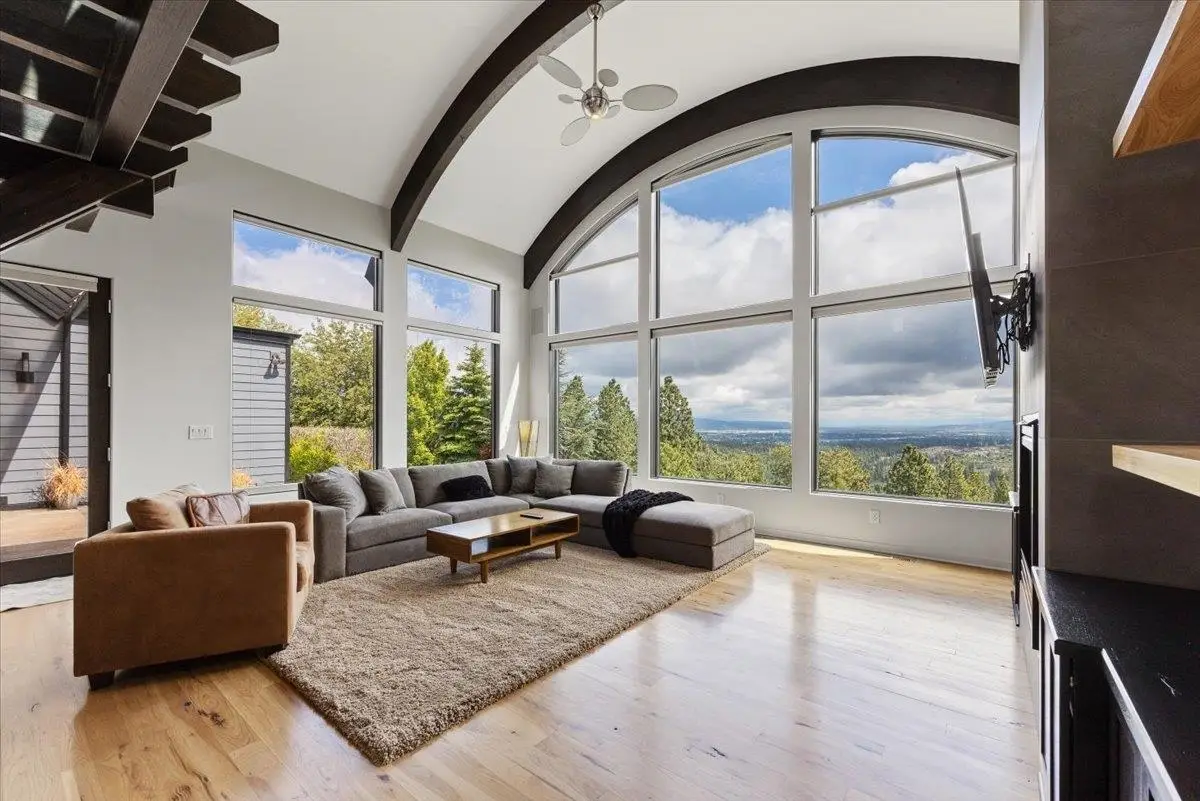 A Pacific Northwest gem built by Fruci Homes, on the market for the very first time. This 6,138 square foot residence sits 1.3 manicured acres with a $2 Million view stretching east and west. Designed for elegance and comfort, the home features 5 bedrooms, five bathrooms and expansive windows that enhance the indoor/outdoor flow. Crafted with natural materials, timeless finishes, and robust stonework, it exudes refined modern luxury. Enjoy radiant heated floors, a chef's kitchen, a spa-like primary bathroom, and a wine cellar, all perfect for entertaining. Backyard has been geo gridded, and ready for an in-ground pool. Nestled in the gated community of Broadmoor Estates, just minutes from downtown Spokane, the airport, and top hospitals. This is a rare opportunity in one of Spokane's most coveted communities.
