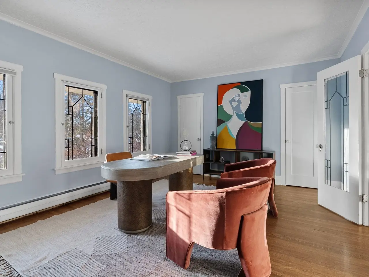 When it comes to location, this home has it, in the most coveted area of Rockwood/Hutton School. With luxury home architecture, this home is far from cookie-cutter & this home's uniqueness adds to the property value in spades. The manicured yard w/2 half circle driveways. The gorgeous entry, hand carved wood staircase, extensive molding, high ceilings & leaded glass windows. The woodwork in this house is art in of itself. Large den leads you into the living area through solid wood pocket doors. Living Room w/marble fireplace, custom drapery, wood floors & dental molding. The heart of the home, the Chef's kitchen w/high end appliances, granite & stone floors, adjoins the dining & family room. Outside is your backyard oasis, south facing paradise w/stretched patio. 2 staircases. Light & bright upstairs, w/wide halls & 5 huge bedrooms & 2 baths, Primary has en-suite bath w/walk-in closet. Basement has storage, rec room, updated laundry & bathroom with new floor, paint & light fixtures. This home is one of a kind!