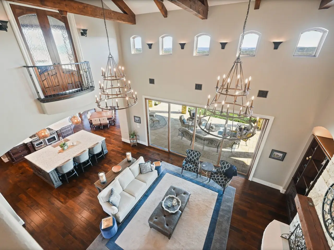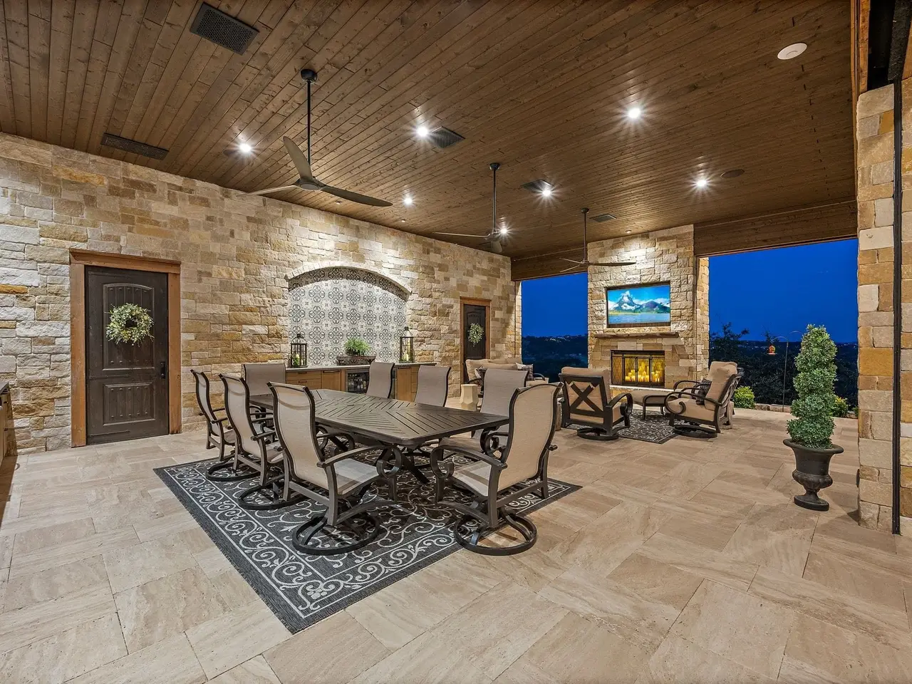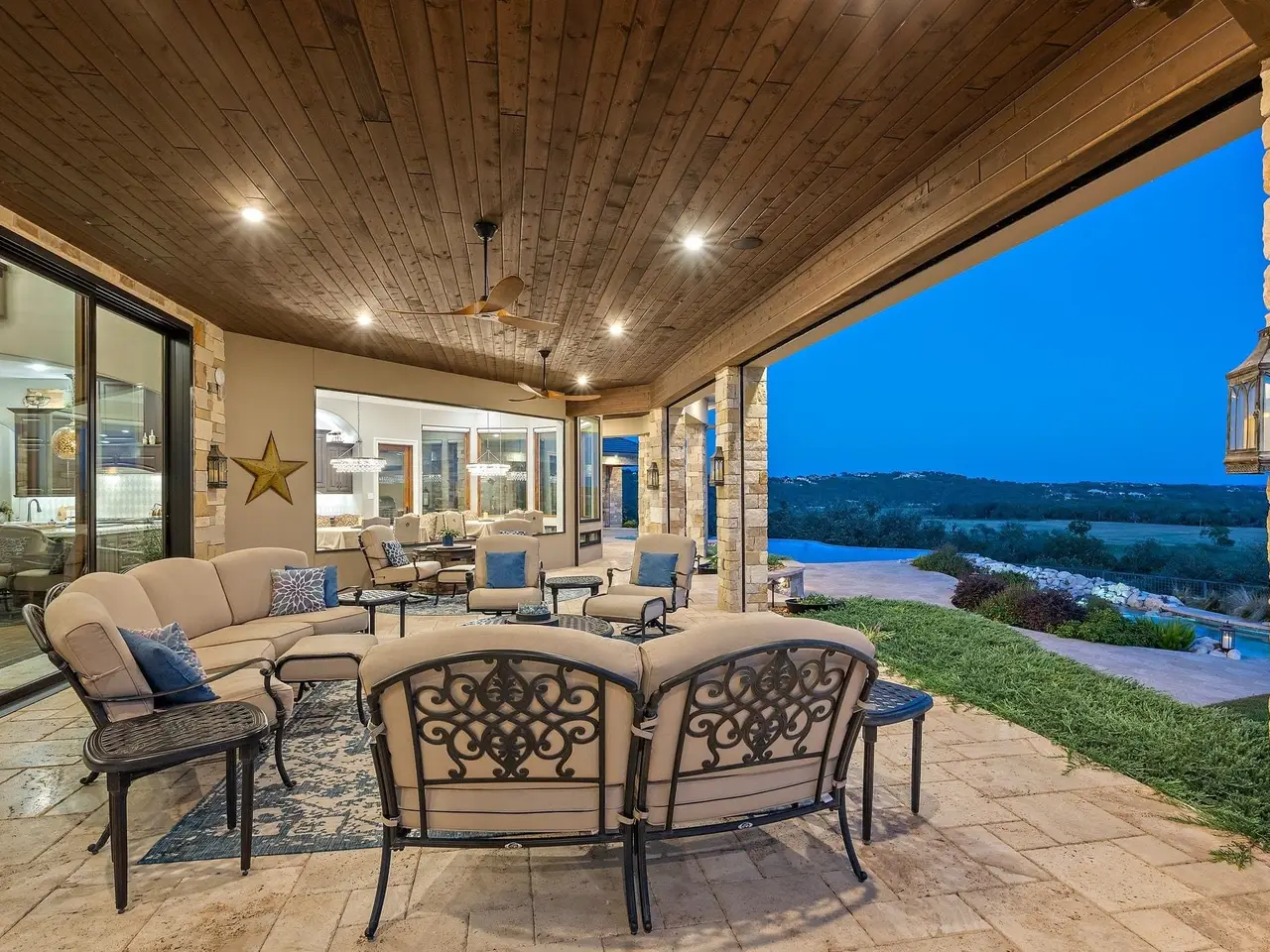 Stunning custom-built luxury home by G. Morris Homes in the heart of the Texas Hill Country. This one-of-a-kind property offers panoramic views of the Guadalupe River & surrounding hills, the perfect setting for quiet, luxury, Hill Country living. Located in the prestigious Mystic Shores community, this home combines privacy, elegance, & convenience, with easy access to San Antonio, Austin, New Braunfels, & Houston, making it ideal for both a full-time residence or a Hill Country getaway. This thoughtfully designed estate offers privacy, comfort, and elegance, with multiple gathering areas, and stunning views from every room. Enjoy a glass from your 400-bottle climate-controlled wine room as you dine overlooking the river. The outdoor living spaces are equally impressive, featuring a covered patio with electric shades, a pavilion with heated floors, fireplace, air conditioning, and an infinity-edge pool, hot tub, and waterfall for year-round relaxation. For car enthusiasts, theres room for up to 8 vehicles across multiple garages. Smart home features include security cameras throughout, all controlled from your phone or tablet. Designed with ADA accessibility, the home includes an elevator, ramps, wide hallways, and accessible showers. A private guest house provides a full kitchen, living area, laundry, bedroom, and bath, ideal for guests or in-home care. Built with efficiency and durability in mind, the property features insulated walls and ceilings, Aprilaire systems, a four-step water filtration and UV treatment system, cistern-fed irrigation, and a commercial Kohler generator for backup power. Enjoy the peaceful surroundings, where deer and native birds are part of everyday life, and a private switchback trail leads to your own serene meadow. Conveniently located near San Antonio, Austin, New Braunfels, and Houston, this property offers the best of Hill Country living, luxury, privacy, and views that will take your breath away. These views are worth the visit.