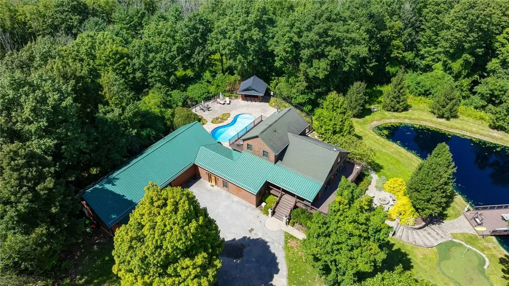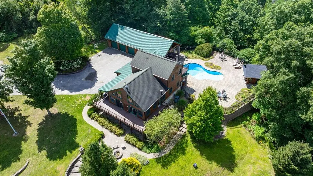 **ONE OF THE MOST BREATHTAKINGLY BEAUTIFUL RESORT STYLE HOMES NY HAS TO OFFER**THIS EXCEPTIONAL PIECE OF REAL ESTATE OFFERS THE PERFECT FUSION OF RUSTIC CHARM AND REFINED LUXURY**NESTLED AMID LUSH, TREE-LINED GROUNDS, YOU WILL FIND THE ULTIMATE PEACE AND TRANQUILITY** INGROUND POOL, OUTDOOR KITCHEN, CABANA/POOL HOUSE, AND HOT TUB ARE JUST A FEW OF THE OUTDOOR LUXURIES YOU WILL BE ABLE TO ENJOY**STEP INSIDE TO SOARING CEILINGS WRAPPED IN RICH NATURAL WOOD, BATHED IN SUNLIGHT THROUGH EXPANSIVE WINDOWS*C/B?B= PERFECTLY DESIGNED KITCHEN FEATURES NEW STAINLESS STEEL APPLIANCES, OVERSIZED ISLAND, AND EAT-IN, OVERLOOKING YOUR LIVING SPACE WITH AN EXQUISITE FLOOR TO CEILING STACKED STONE GAS FIREPLACE*THE PRIMARY SUITE INCLUDES CUSTOM BAR, PELLET STOVE PERFECT FOR THOSE COLDER NIGHTS, FULL BATH AND WALK IN CLOSETS* THIS HOME ALSO INCLUDES AN IN-LAW OR TEEN SUITE WITH SPIRAL STAIRCASE, FULL BATH, LOFT BEDROOM, AND DOORS TO YOUR BACKYARD PATIO/POOL AREA* PRIVATE DRIVEWAY, HUGE POND WITH PERMANENT DOCK, PUTTING GREEN, TWO STORY BALCONIES, AND SO MUCH MORE** THIS PROPERTY IS PERFECT FOR FAMILY LIVING OR THE PERFECT VENUE FOR YOUR NEXT EVENT OR EVEN AIR BNB!!!**