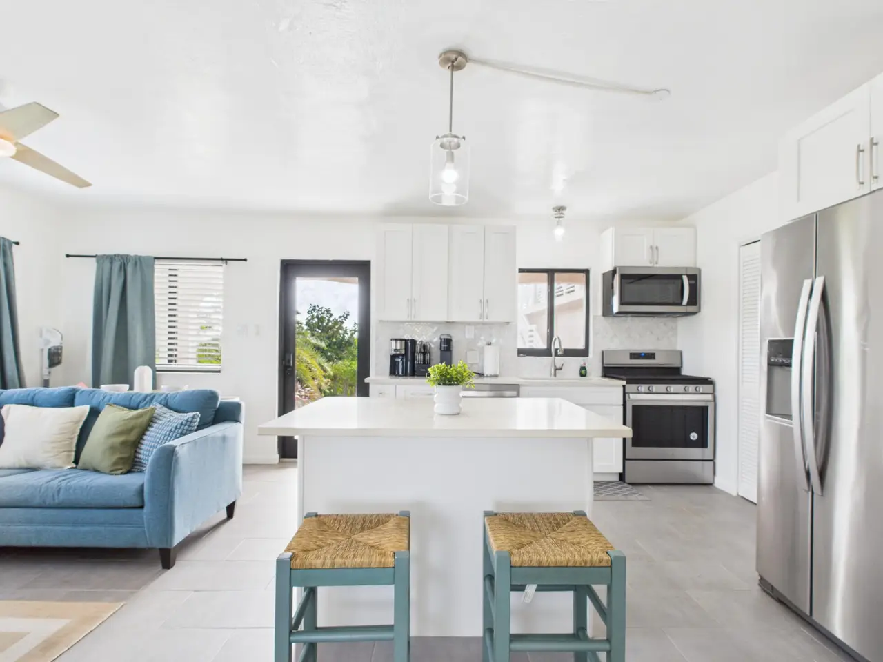 This luxurious home is located in the premier gated beach community of Shoys and features 3 bedrooms and 3 baths upstairs, plus a private 1-bedroom apartment with separate driveway below. Enjoy panoramic views of Christiansted town and The Buccaneer golf course. The interior boasts a spacious open floor plan and a beautiful chef's kitchen with views of Buck Island and the marina. The outdoor living areas seamlessly connect to the interior, creating the perfect setting to relax or entertain. The entire house has been updated and notable features include impact glass windows and doors, modern furniture and an electric gate. Ideally situated just minutes from Shoys Beach, Green Cay Marina, and historic Christiansted with fine dining, shopping, and culture nearby.Fully updated home located in the sought-after gated beach community of Estate Shoys, one of St. Croix's most desirable neighborhoods.