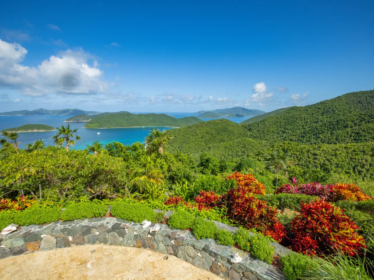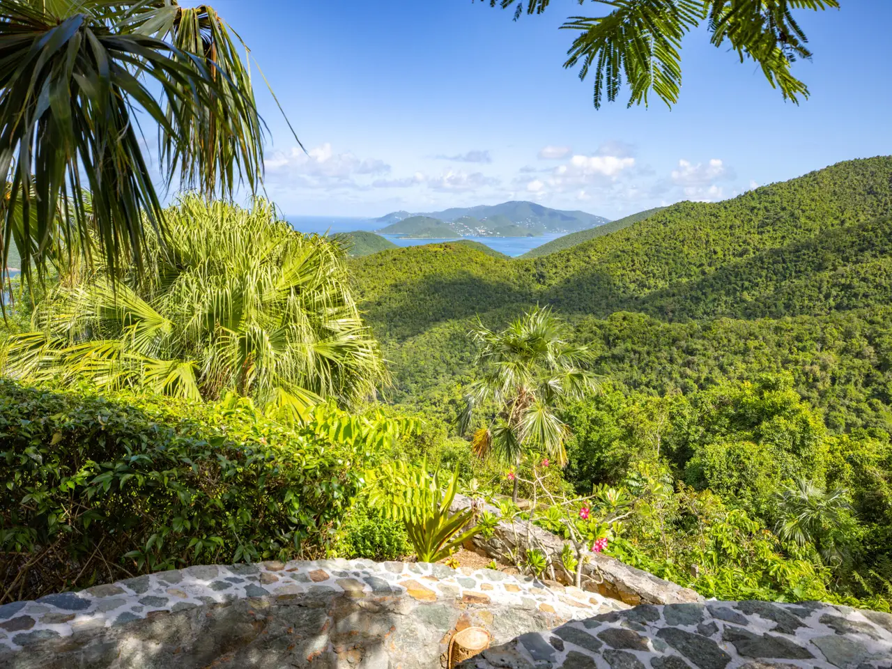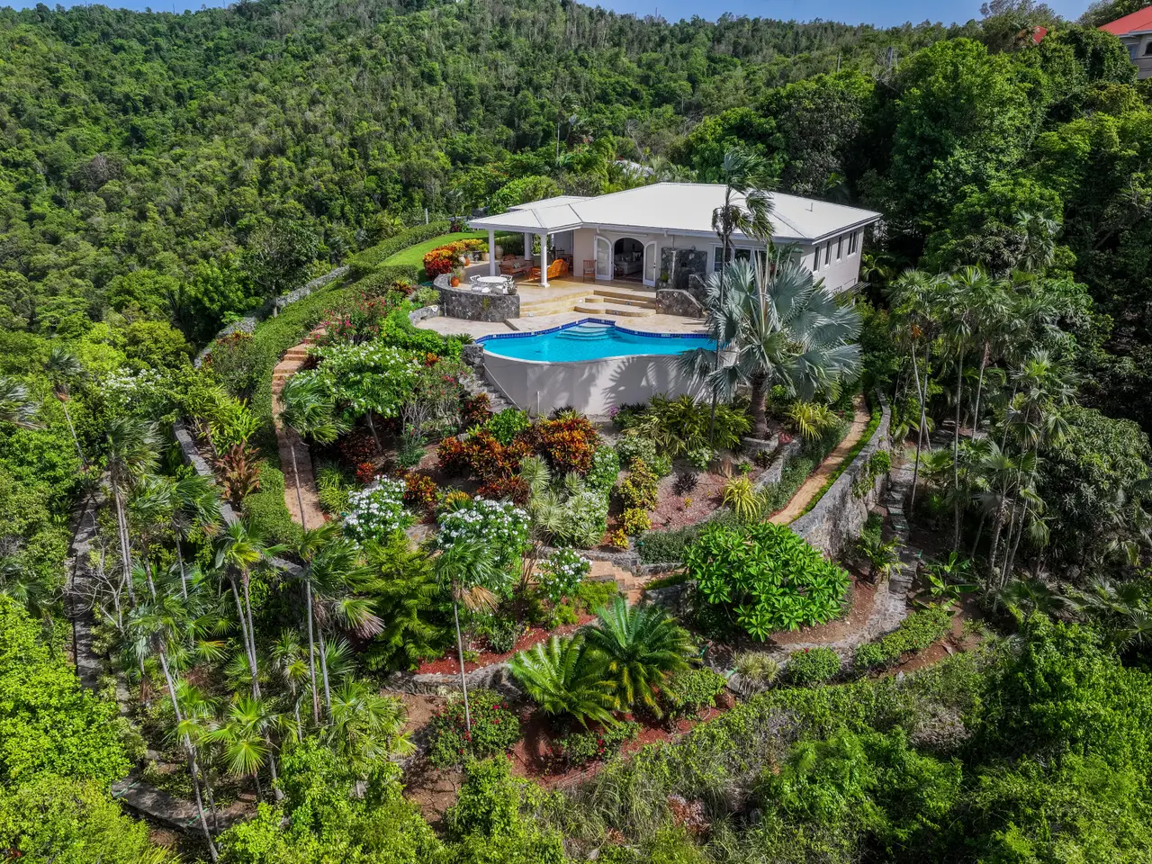 Rare opportunity to own an ultra-private, gated and secure compound situated in over two acres of the prestigious Catherineberg neighborhood. Bordering St. John's National Parkland and perched over 700 ft. above sea level, this exclusive estate offers fall-away views of the famed north shore beaches, the BVI's and beyond. Level entry through tropical gardens to sparkling pool, lawn with hot-tub gardens and sprawling terraces that highlight the sweeping vistas allowing for effortless indoor-outdoor living. An entertainer's dream. A half a mile of meandering stone walkways invites tranquil strolls through the terraced grounds of fruit trees. The sky is truly the limit for customizing this unique property into your ideal island escape.An extraordinary opportunity awaits to own an ultra-private, gated, and secure compound sprawled across over two acres of fenced property in the prestigious Catherineberg neighborhood. Nestled along the border of St. John's National Parkland and perched over 700 feet above sea level, this exclusive estate offers breathtaking fall-away views of the renowned north shore beaches, the British Virgin Islands, and beyond.