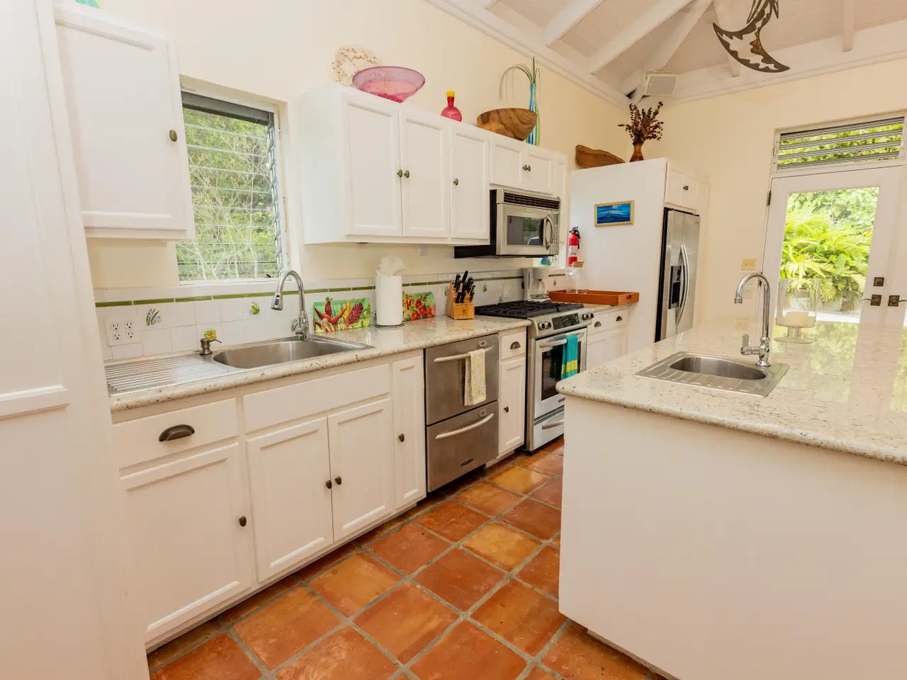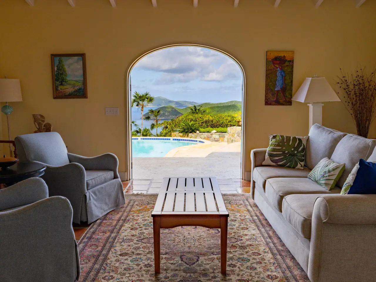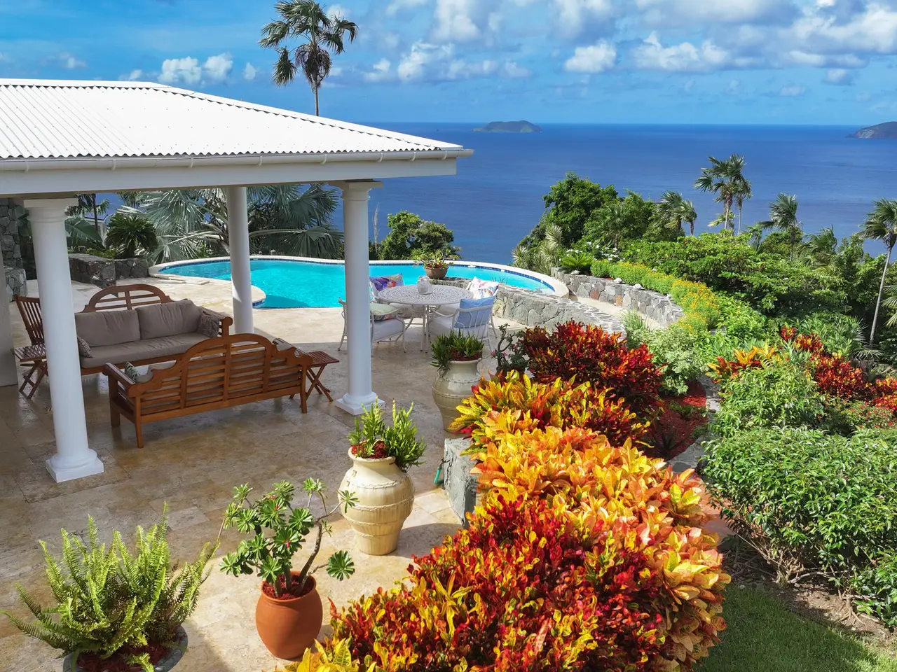 Rare opportunity to own an ultra-private, gated and secure compound situated in over two acres of the prestigious Catherineberg neighborhood. Bordering St. John's National Parkland and perched over 700 ft. above sea level, this exclusive estate offers fall-away views of the famed north shore beaches, the BVI's and beyond. Level entry through tropical gardens to sparkling pool, lawn with hot-tub gardens and sprawling terraces that highlight the sweeping vistas allowing for effortless indoor-outdoor living. An entertainer's dream. A half a mile of meandering stone walkways invites tranquil strolls through the terraced grounds of fruit trees. The sky is truly the limit for customizing this unique property into your ideal island escape.An extraordinary opportunity awaits to own an ultra-private, gated, and secure compound sprawled across over two acres of fenced property in the prestigious Catherineberg neighborhood. Nestled along the border of St. John's National Parkland and perched over 700 feet above sea level, this exclusive estate offers breathtaking fall-away views of the renowned north shore beaches, the British Virgin Islands, and beyond.