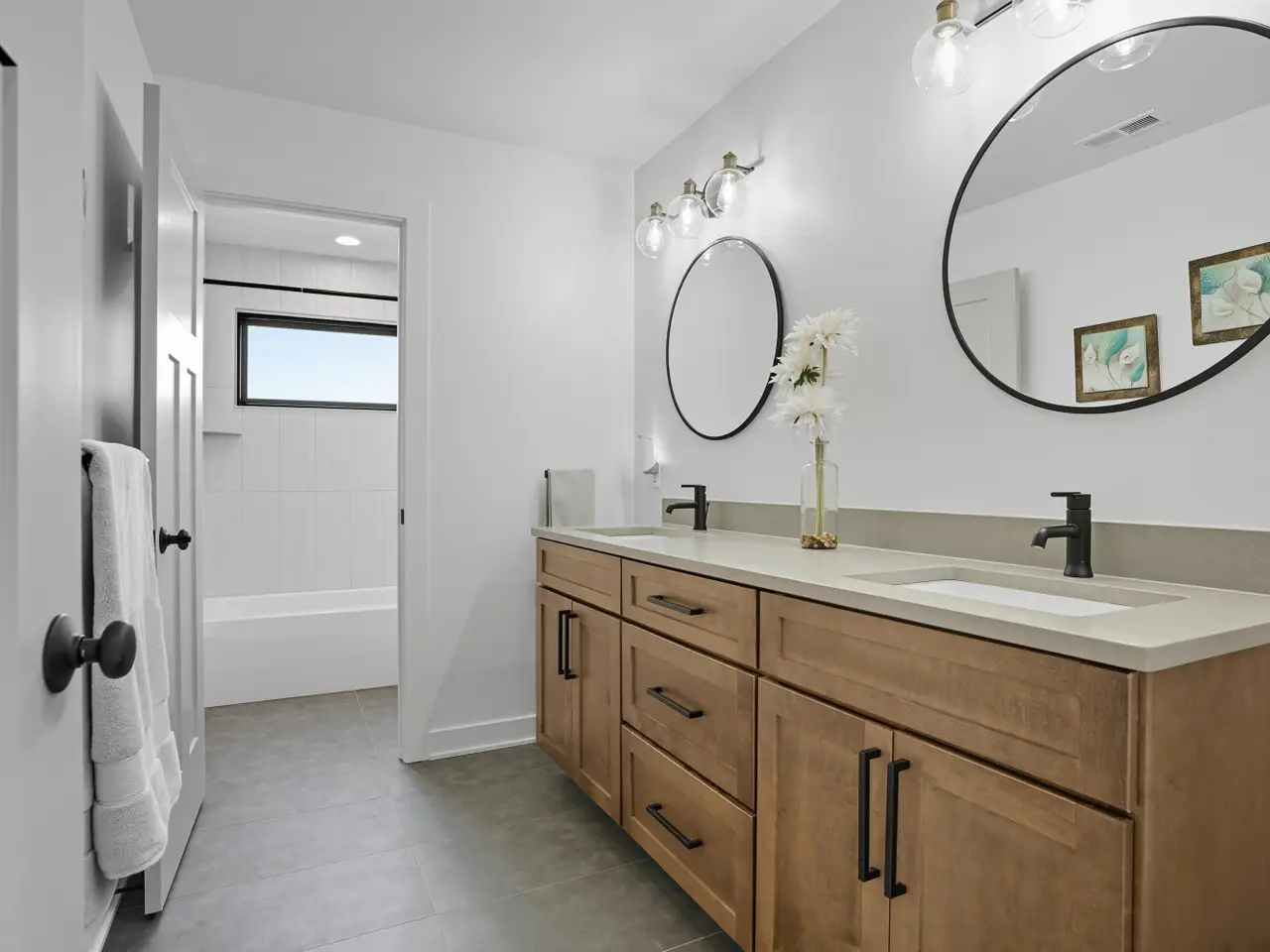 Why wait to build when you can move right into this nearly new showstopper of a home! Step through the foyer and be greeted by a striking modern staircase and custom accent wall. The heart of the home is the stunning 2-story great room, complete with a floor-to-ceiling fireplace, seamlessly flowing into the gourmet kitchen with an oversized island, stainless steel appliances, and a spacious walk-in pantry. The main-level primary suite offers a spa-like ensuite with an oversized shower and a custom walk-in closet. A laundry room, stylish half bath, and mudroom with custom designed bench complete the first floor. Upstairs, you'll find four generously sized bedrooms with walk-in closets, a versatile loft area, and a full bath. Step outside to the covered patio overlooking the large fenced-in yard--perfect for entertaining and relaxation. Additional highlights include a 3-car garage with epoxy floors, Aquasana whole-home water filtration, sump pump with WiFi battery backup, customized shades, casement windows, irrigation system, dual furnaces and AC units, and distinctive finishes throughout making this home truly one-of-a-kind!