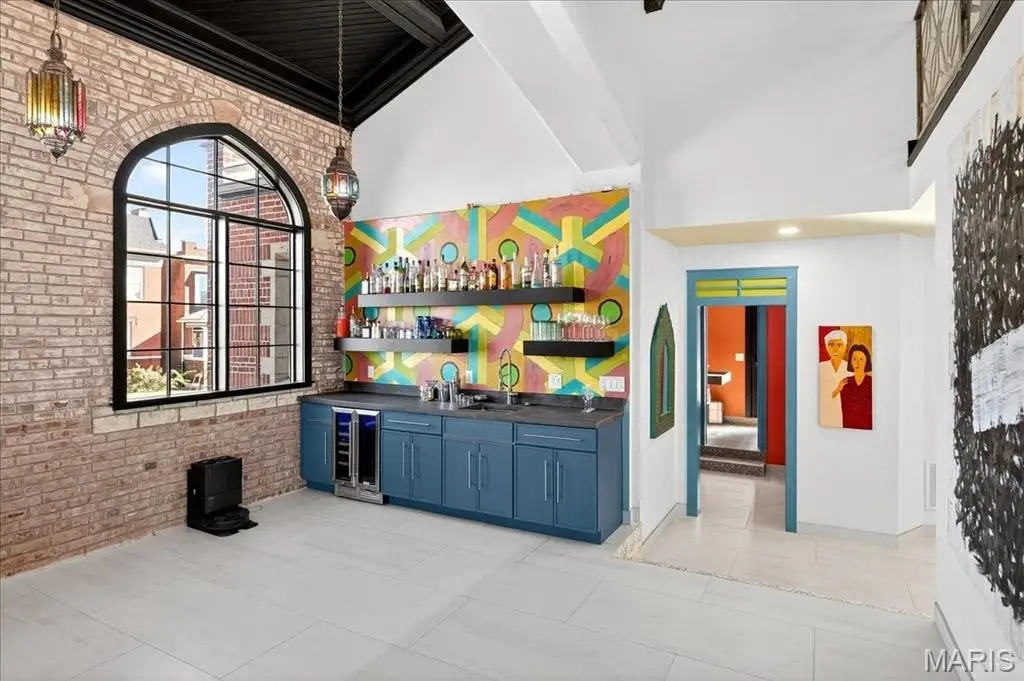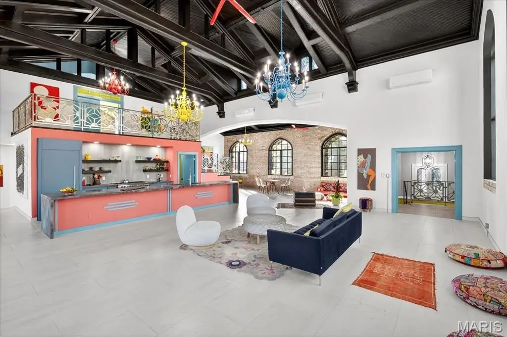 Once an abandoned early-1900s church, this breathtaking property at 1034 South Kingshighway Blvd, St. Louis, MO 63110 has been reborn through a visionary transformation by renowned artist Nabil Mousa. Every inch of this residence is a testament to design, craftsmanship, and imagination — blending history, art, and modern luxury into a one-of-a-kind home that simply cannot be replicated. Inside, a soaring 25-foot sanctuary ceiling immediately commands attention, its intricate architecture accentuated by a rich black stain that adds depth and drama preserving the building’s historic elegance. Three statement chandeliers illuminate the space, creating a breathtaking focal point that bridges the structure’s past and present. A stunning TV room, enclosed by custom iron and glass walls and doors, adds a sophisticated and contemporary edge to the space. The room is fully soundproof, offering privacy and comfort, and features a 12-foot glass wall with sliding doors that opens to the private outdoor area — creating an exceptional flow between indoor and outdoor living. The main level features two bedrooms, complemented by a gourmet kitchen designed for both function and artistry — including a striking 20-foot island, custom cabinetry, a walk-in pantry, and a wet bar perfect for entertaining. Upstairs, the master suite and spacious loft offer a private retreat, highlighted by a custom railing and stair case designed by Nabil Mousa. Original exposed beams in the entryway, library, and one of the bedrooms celebrate the building’s craftsmanship, while new hardwood floors, tile, and refined finishes bring a sense of modern sophistication to this architectural masterpiece. Every element of this home has been renewed — from the roof and structural beams to the HVAC systems (8 units), three-phase electrical panel, and flooring that was completely leveled after a 19” tilt adjustment. The property also boasts new windows, gutters, doors, bathrooms, and a custom kitchen, combining elegance with practicality. The lower level (7,000 sq. ft.) has been reimagined into an extraordinary creative and functional space — featuring a wine cellar, artist studio, vertical garden, two gallery spaces, three offices, and multiple additional rooms with limitless potential. Outside, a 2,800 sq. ft. backyard offers endless possibilities for a private outdoor oasis — complete with two custom shipping containers, ideal for a future outdoor kitchen, bar, or lounge area. A 9-foot custom iron privacy fence encloses the property, complemented by extensive tuckpointing and stone restoration that celebrate the building’s original craftsmanship. With 11 parking spaces, this home balances luxury, artistry, and functionality effortlessly. Located just two blocks from Forest Park, one of the nation’s largest urban parks, residents enjoy access to over 1,400 acres of cultural and recreational amenities, including three golf courses, world-class museums, The Muny outdoor theatre, the St. Louis Zoo, and countless walking trails and dining options. Minutes from the Central West End, downtown, and major hospitals, this home offers the perfect balance of serenity and city living. This is more than a home — it is a living work of art, meticulously restored and reimagined for those who see beauty not just in architecture, but in vision.