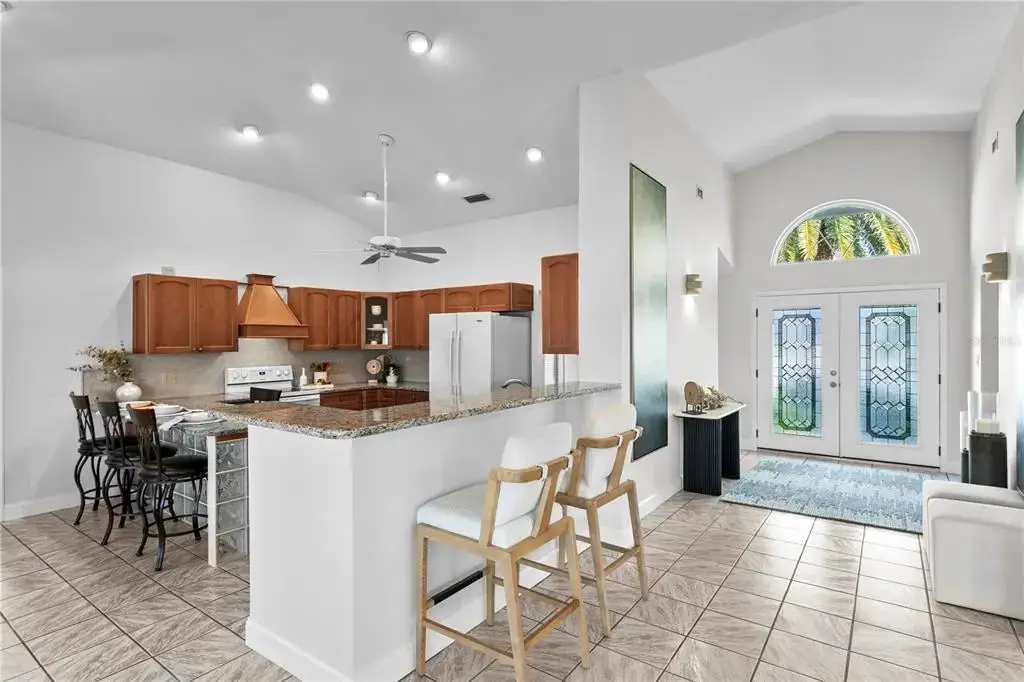 Generous kitchen with counter- and bar-height seating