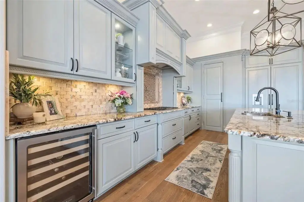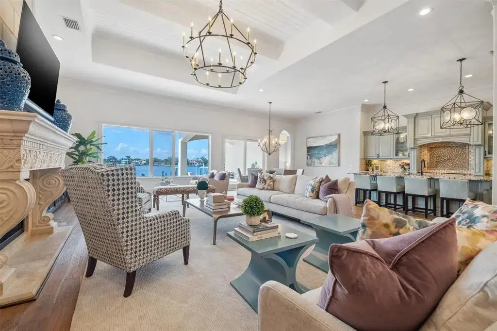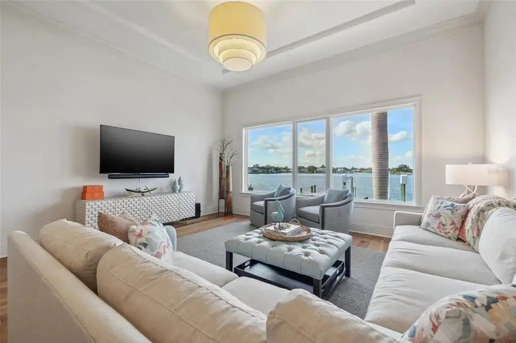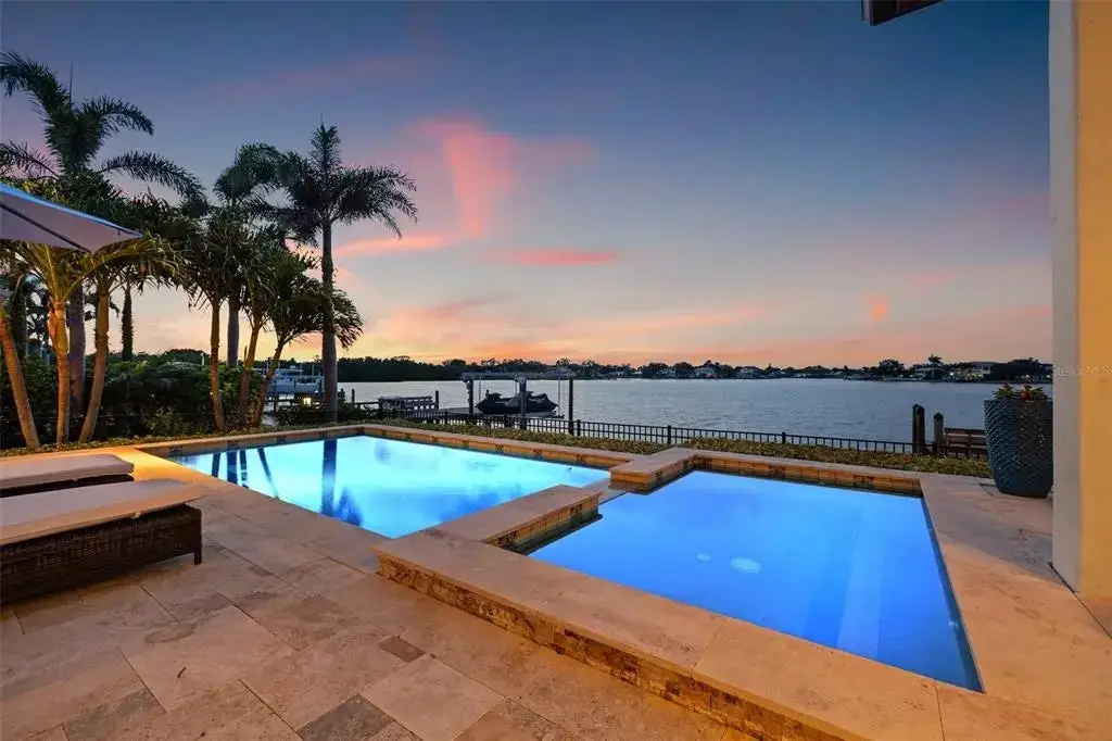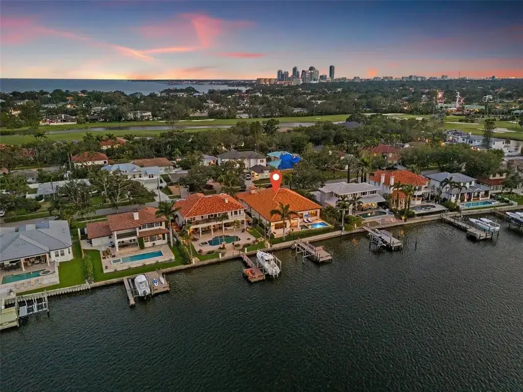 Experience coastal elegance and luxury living at its finest at 301 Bayview Drive NE, nestled on the shores of Smacks Bayou in the exclusive Snell Isle neighborhood of St. Petersburg. Elevation is 9.8 and sustained NO WATER INTRUSION in recent storms. Built by Andrew Vecchio in 2015, this exceptional waterfront residence offers superior craftsmanship, timeless finishes, and a flexible floor plan designed for modern Florida living. Enjoy sweeping water views the moment you step inside. Soaring 10–12 ft ceilings throughout the home create an airy, open atmosphere, enhanced by gorgeous engineered hardwood flooring, custom designer lighting, and upscale finishes. The main living space is anchored by a stunning gas fireplace and filled with natural light from oversized windows and glass doors. The chef’s kitchen is a showstopper—featuring top-of-the-line Thermador appliances, a gas cooktop, pot filler, wine refrigerator, pantry, stone countertops, and an oversized island with bar seating—perfect for gathering and entertaining. Enjoy your private waterfront oasis with a heated saltwater pool, spa, covered lanai, outdoor kitchen, and private dock. Whether you're hosting sunset dinners or launching paddleboards from your backyard, this home was built for the Florida lifestyle. The private primary suite is a serene retreat offering panoramic water views, dual walk-in closets, and a spa-inspired en suite bath with dual vanities, a freestanding Jacuzzi soaking tub, and a glass-enclosed walk-in shower. Each guest bedroom includes its own en suite bath, providing comfort and privacy for family and guests. A unique highlight of this home is the separate casita/in-law suite—attached yet completely private with its own entrance, walk-in closet, and full bath. It’s ideal for multi-generational living, a dedicated home office, home gym, or studio. Additional features include a spacious laundry room, 3-car garage with high ceilings for extra storage or lift installation, and a circular brick driveway that enhances curb appeal. Located minutes from vibrant downtown St. Pete, yet tucked away in a peaceful enclave, 301 Bayview Drive offers the best of both worlds—quiet luxury living with world-class dining, culture, and shopping just moments away.