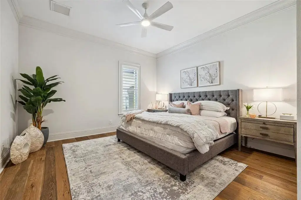 Soaring 10–12 ft ceilings with gorgeous engineered hardwood flooring