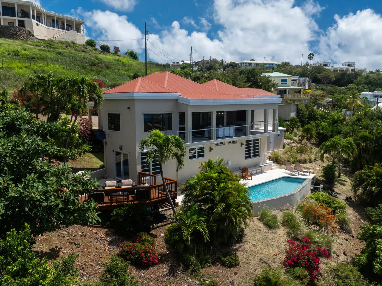SPECTACULAR VIEW, AMAZING LOCATION! Welcome to your stunning slice of paradise in St. Thomas, where luxury meets island living. Nestled atop a lush hillside, this exquisite 4-bedroom, 3.5-bath residence offers breathtaking panoramic views of the crystal-clear Caribbean Sea. Enjoy dinner and drinks from your covered deck or relax by the pool. This home offers it all. The home also has the option to have one of the bedrooms as a separate apartment/caretaker unit/nanny quarters. Villa Solaris was remodeled in 2020 with gorgeous finishes including a new gourmet kitchen boasting top-of-the-line Thermidor appliances, sleek marble countertops, and custom cabinetry. Conveniently located near the newly opened the Westin Resort, pristine beaches, and the cruise ship dock.
