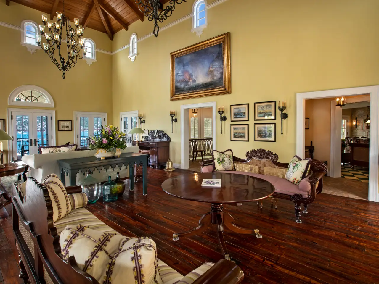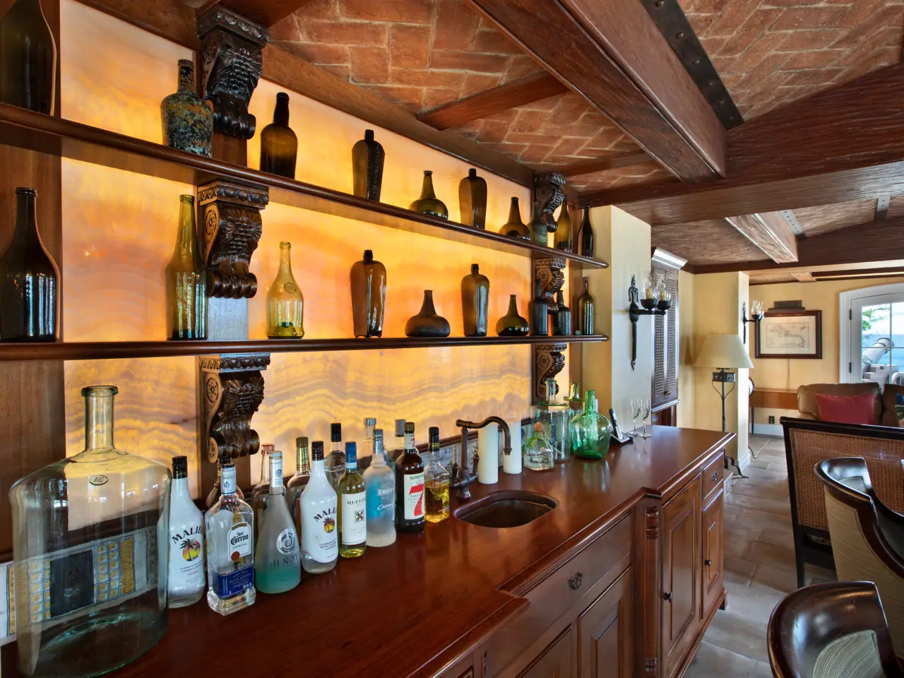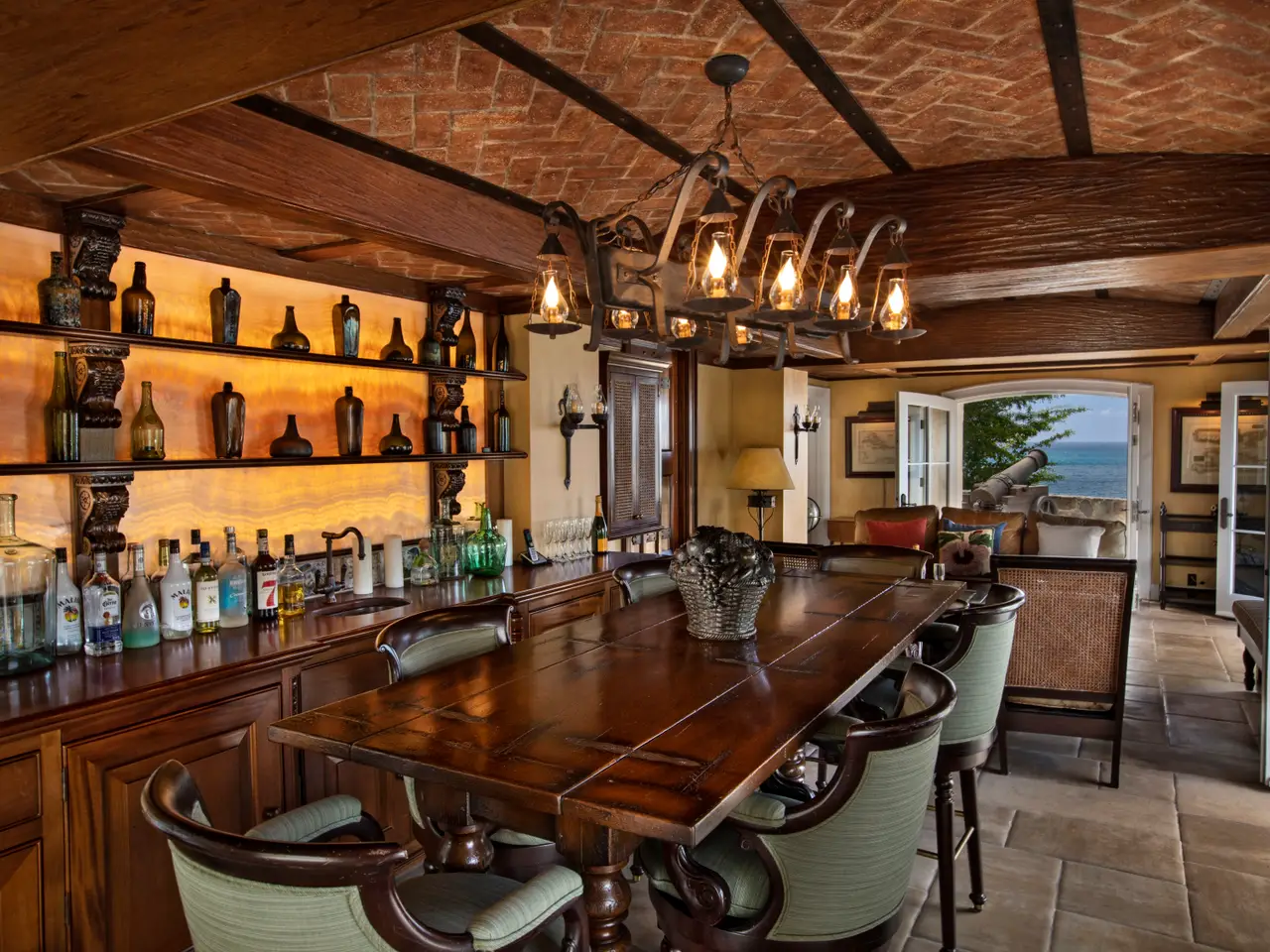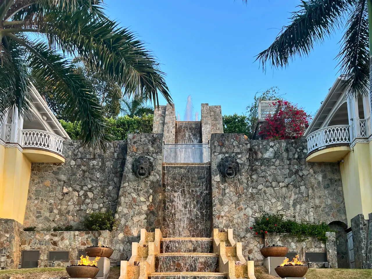 The Waterfront Estate is more than a home. It's a one-of-a-kind experience. The expansive nine-acre estate includes four homes and boasts a total of 18 bedrooms, 14 baths, two infinity pools and 25,490 square feet of luxury and privacy across 11 parcels. Tropical walkways bursting with royal palms and native plants connect all four homes. The real treasure among these are the two waterfront villas, both with direct water access. Stone staircases, as well as two trams with intermediate stops, allow you to descend all the way to the turquoise ocean below. As you enter the main villa, the tasteful and elegant furnishings will usher you to another era. Magnificent architecture, enchanting stonework, unique hardwoods, and a prized collection of antiques evokes feelings of nostalgia, grandeur, and adventure. Each room has a distinct persona and story of its own, from the 800 square foot great hall to the wine grotto, all brought together by the old-world charm of a Caribbean estate aesthetic. The fun truly begins as you step outside and explore the many terraces and verandas overlooking Charlotte Amalie harbor. Try your hand at shooting one of the two working water cannons straight into the Caribbean Sea. Relax on the lounge deck or soak in the infinity pool. Take a stroll along the gorgeous 50-foot white sand beach. Watch the sunset over Hassel Island on your own private 80-foot dock. Enjoy the Caribbean's most spectacular music and light show courtesy of the estate's terraced waterfall, which features 10 jumping jets, eight fire braziers, 17 falls, a fog machine, more than 100 LED lights and a holographic water screen. Whether you're interested in an exceptional island getaway or the ultimate place to entertain, this captivating property will exceed your expectations. Property Details: Main Villa: 5 Bedrooms, 5 Full Baths / 2 Powder Rooms, 6,500 Total Square Feet, Infinity Pool (1,630 Cubic Feet) Guest House Cottage: 4 Bedrooms, 2 Full Baths / 1 Powder Room, 2,400 Total Square Feet Second Villa: 6 Bedrooms, 5 Full Baths / 1 Powder Room, 4,400 Total Square Feet, Infinity Pool (2,750 Cubic Feet) Two Car Garage Third Home: 3 Bedrooms, 2 Full Baths