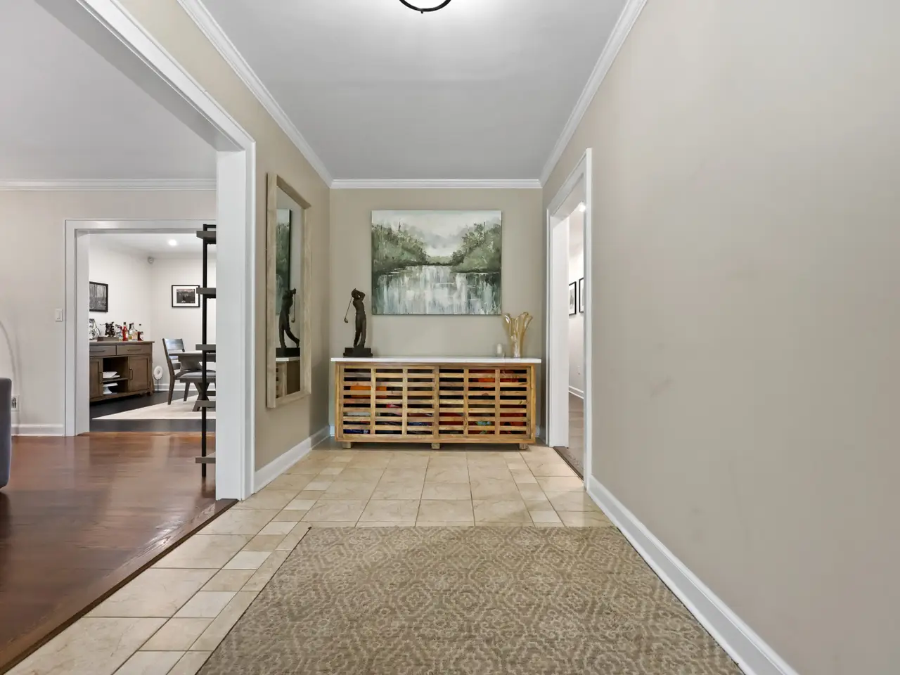 This inviting 4-bedroom ranch sits on one level acre in a great location. Wraparound driveway leads to a welcoming foyer and huge family room with fireplace, play area and two seating areas. Primary suite with walk-in closet and en-suite bath; as well as two large bedrooms and a full bath on one side of the house. Dining room with bar and kitchen leads to large Azek deck, ideal for outdoor entertaining. Separate guest suite with full bath would make a great in-law or nanny suite. Laundry room, mudroom and attached 2-car garage. Updates include newer landscaping and freshly painted interiors. HVAC, duct insulation, and hot water heater were all replaced in 2024. For golf lovers, there's a Tom Fazio-designed Swilcan Bridge, replica from St. Andrews in the front of the front of the property.