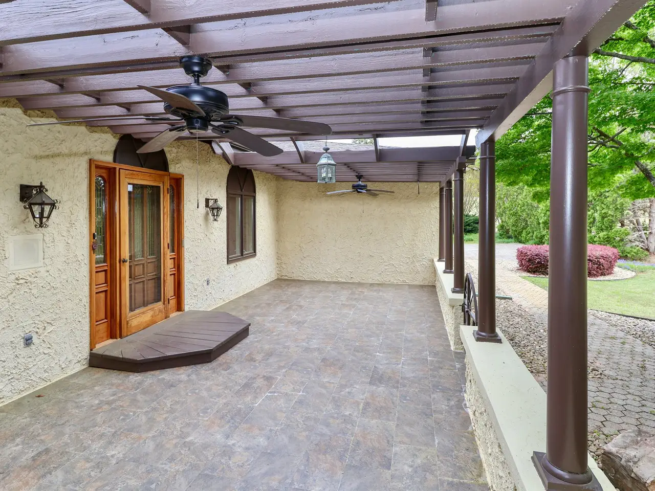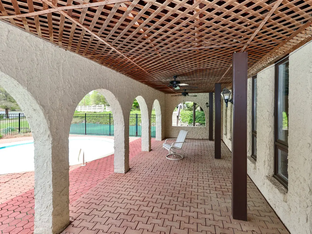 Spanish-Inspired Estate in Statesville Country Club, Nestled on 1.14 acres blends timeless charm with modern updates. Renovations in 2025 include a new roof, new paint, updated flooring throughout most of the home, and fresh tile on the inviting front patio. Shade trees and beautifully updated landscaping enhance the curb appeal, lush Bermuda grass adds a vibrant touch to the grounds. Great room includes a pretty stone fireplace w/ gas logs. Stylish kitchen flows to the dining room - ideal for entertaining. The primary en suite is a retreat with its own sunroom, Natural light throughout the home. Three bedrooms are conveniently located on the main floor. The fully finished walkout basement offers a large family room, game room, a fourth bedroom, and a full bath with direct access to the pool -perfect for entertaining. Back deck overlooks a sparkling pool and a picturesque pond, Storage and upgrades throughout, this home offers comfort, space, and style in an unbeatable setting.