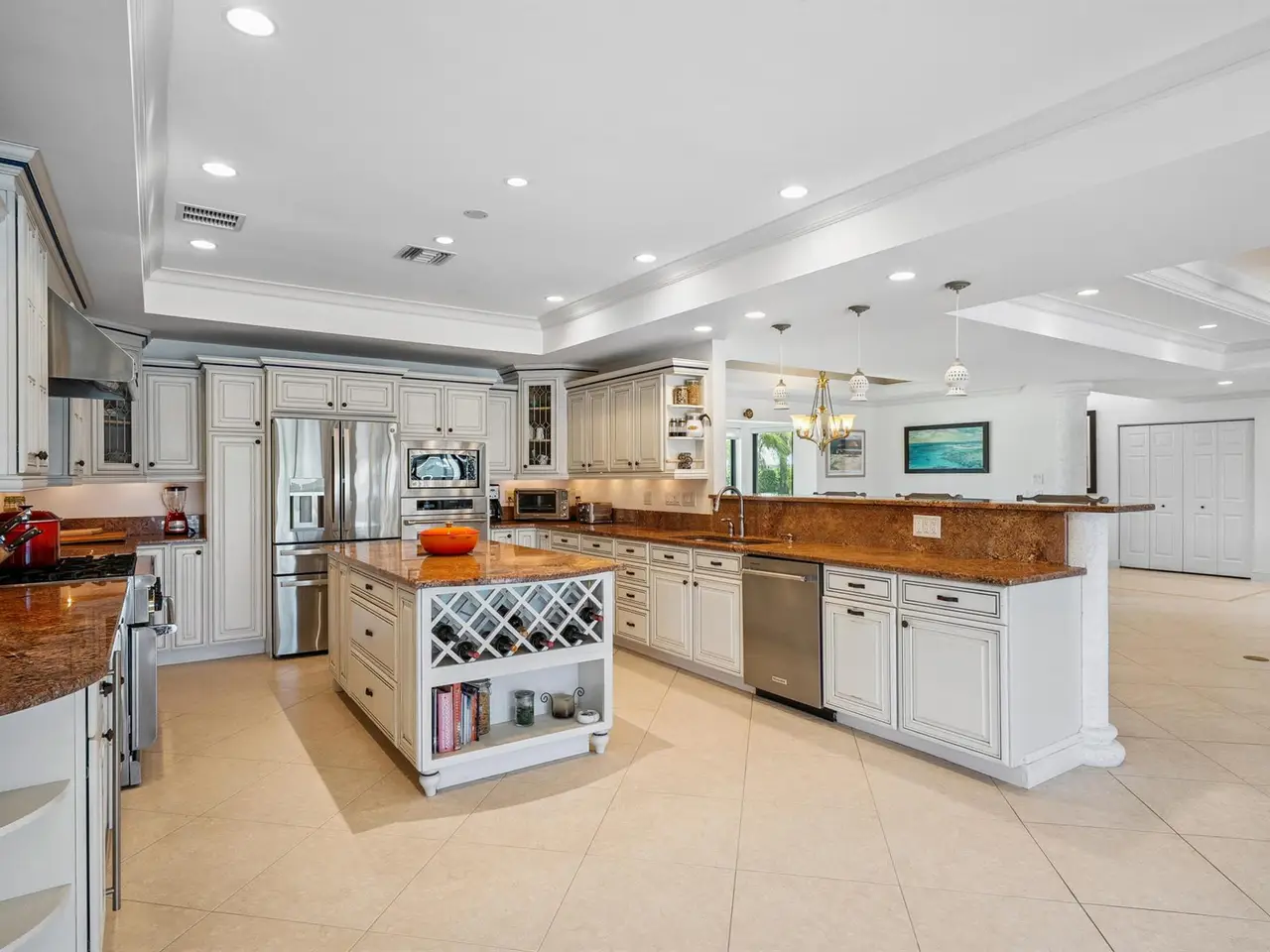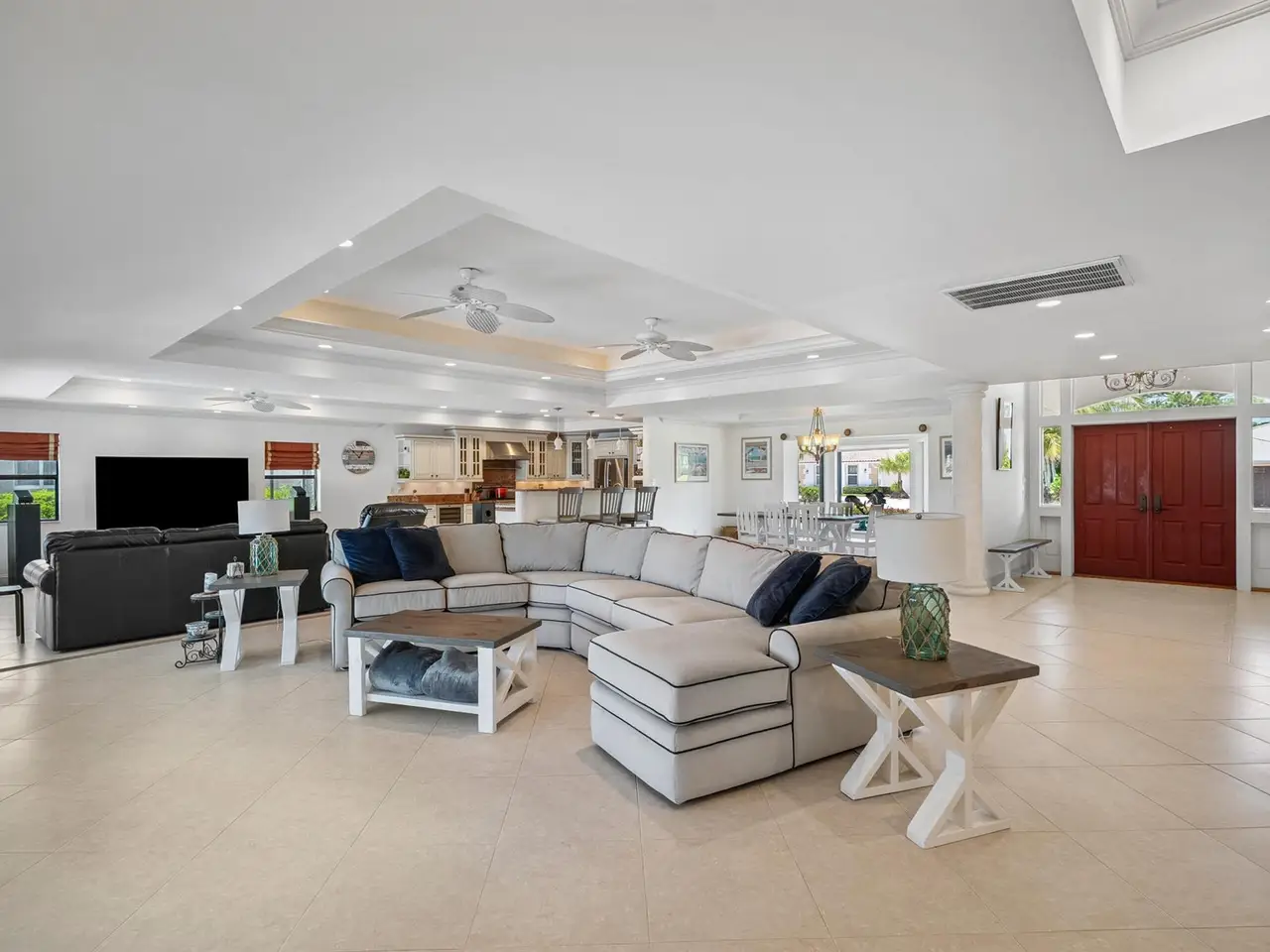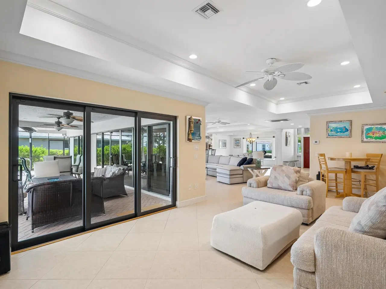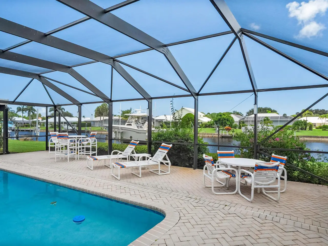 Welcome Home to your impeccably renovated 3-bdrm, 3-bath waterfront home with private dock located in the prestigious, guard-gated Stuart Yacht & Country Club. Perfectly positioned on a quiet cul-de-sac with direct canal access, this residence blends luxury living with effortless coastal charm. Designer chef's kitchen boasts custom cabinetry, Thermidor 6‑burner gas range & wall oven, wine fridge and newer S/S fridge, dishwasher & microwave. Airy and open living area perfect for entertaining or just relaxing, impact glass window's/sliders throughout, owner's suite w/ spa bath; 2 en‑suite guest rooms. Step through the sliders to your newly screened lanai and stunning pool! 30,000 lb boat lift with newer Seawell cap and tiebacks (2019). Enjoy this low HOA gated community with golf