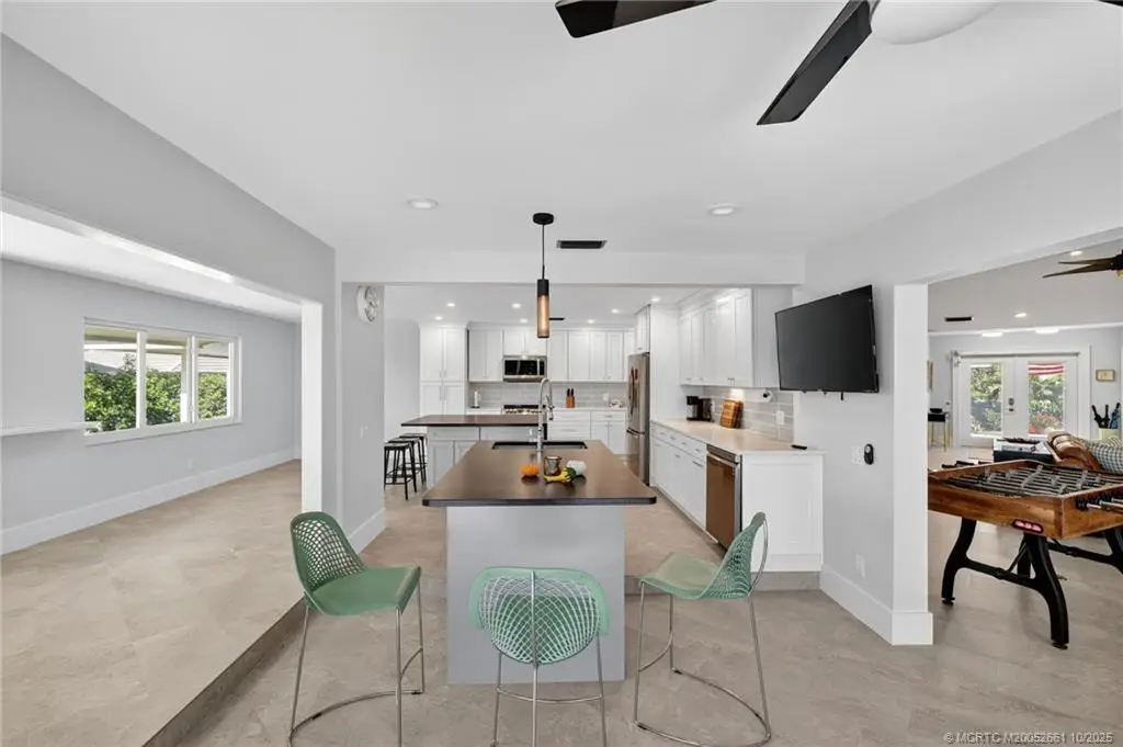 Stunning Golf Course Home with Water View, situated on the 12th hole. This beautifully renovated 4-bedroom, 2.5 Bath residence boats breathtaking views and top-notch finishes. New HVAC system and all-new windows. New Flooring throughout and a striking Chicago Brick Wall in the master bedroom. Enjoy a brand-new kitchen equipped with modern appliances. Updated pool deck, bigger/newer pool heater, and an outside shower. New Front Door, garage door, and golf cart door. Double Entry adds elegance and charm. This home combines luxury, comfort, and stunning views, making it perfect for both relaxation and entertaining. Discover South Florida's best kept secret. Schedule showings by contacting listing agent. One-Time Capital Contribution of $50,000.00 due at closing. Monthly HOA fee Mariner Sands Dues $1,499.00 Golf Membership is $70,000.00; Golf membership is available. YouTube Link of New Club House: https://www.youtube.com/watch?v=EOcJ6f9Un58