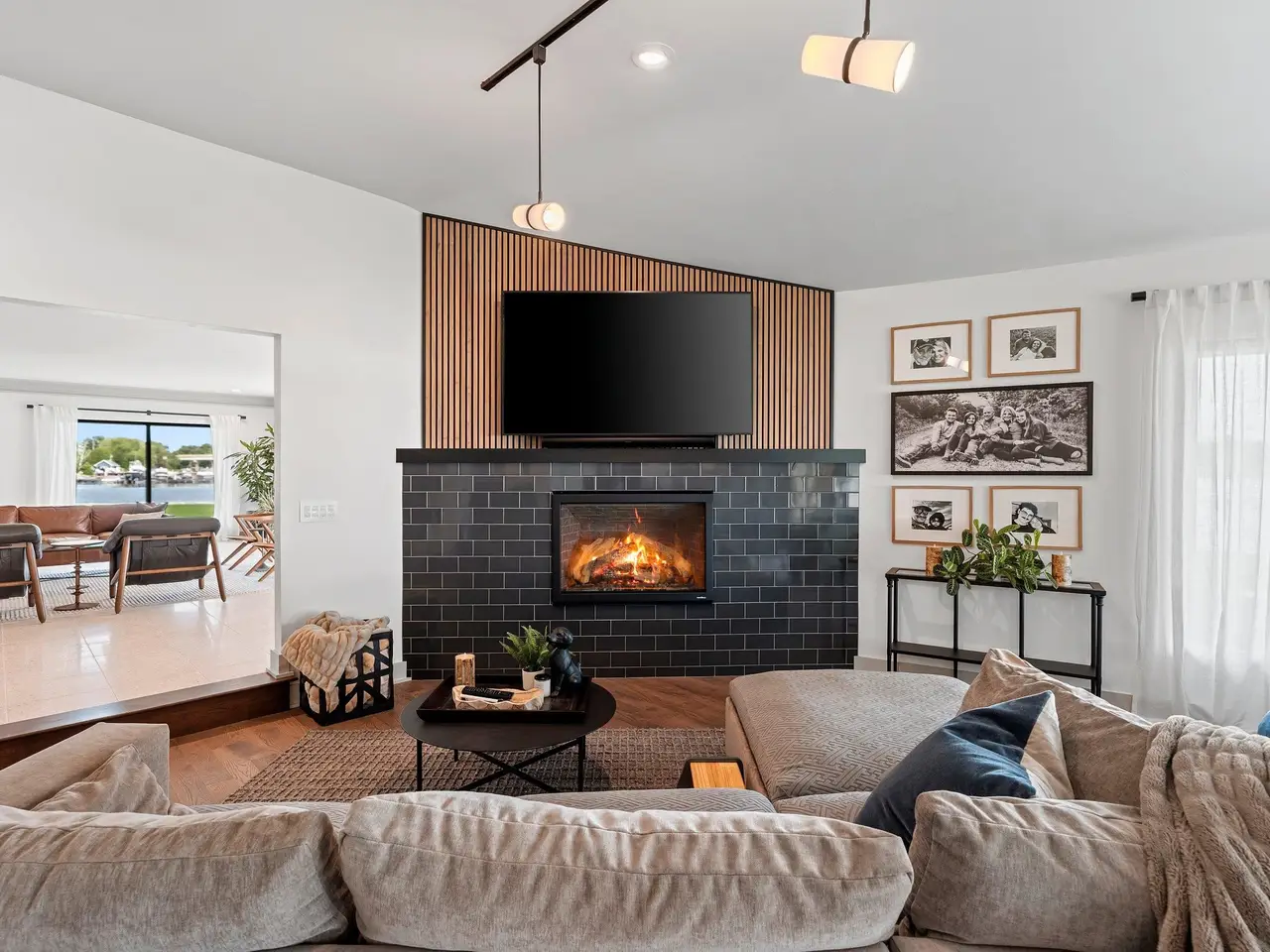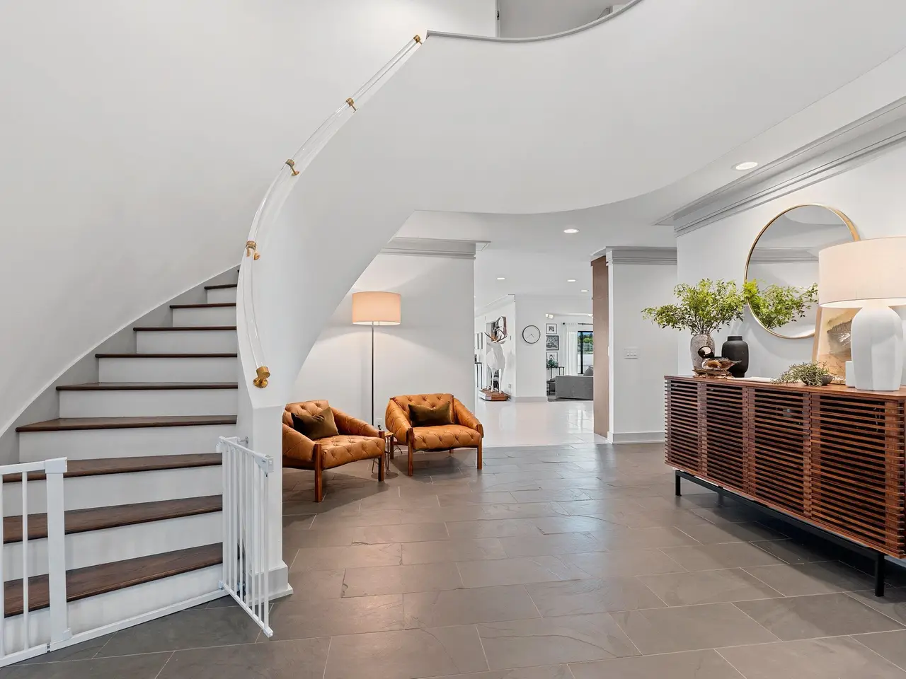 Exceptional waterfront property with nearly 600' of meandering frontage in a park-like setting offering incredible privacy and boating access to both Lake Michigan & the Green Bay. 100' deep water pier with 30/50 amp power & newly engineered seawall offers your own private marina. The 7,500 sq ft architectural gem has been rebuilt from the ground up with the finest details including all natural stone & designer tile surfaces, Gucci wallpaper, slate & hardwood flooring, elevator, and complete home surveillance and smart control system. Primary retreat consist of two walk in closets, coffee bar, and spa-like bathroom. Covered outdoor kitchen and bar with gas grill, kegerator, fireplace and entertainment center. Elegantly furnished/turn-key.