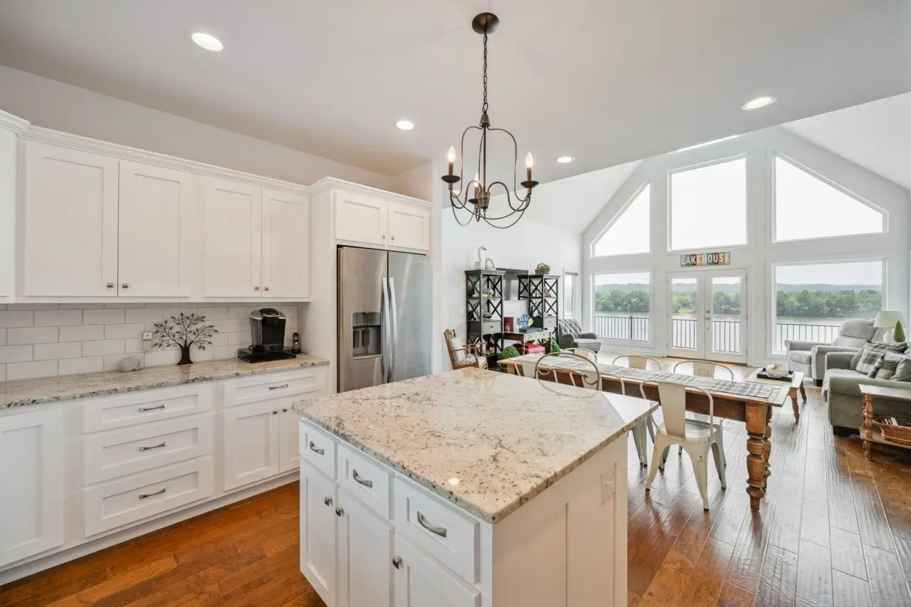 Majestic Tennessee River Views! Custom 5 BR 3.5 BA home located in desirable Woodlawn Shores overlooking the Tennessee River and out of the flood plain. Situated on 2 resort lots & an additional lot at Woodlawn Shores Rd, this comfortable & roomy Family Home offers many custom touches! Upon entry at the double garage, immediately your eye is drawn to the vaulted ceiling Family Room! Awesome River views from plentiful windows & glass french door out to the wonderful open deck w/front seat water views of the TN river-North to South! Open to the pretty custom kitchen/dining area featuring granite countertops, tile backsplash, wonderful island, pantry closet, all large appliances, & dining area. The executive style master features wonderful water views & custom glass & tiled shower, separate jetted tub, double vanities & tiled flooring. Also on the main floor is a 2nd Master w/all the water views, custom tiled tub/shower, & laundry next door. A pretty half bath completes the main floor. Up the pretty stairway leads to a large bonus den/area-perfect for the kids or even a 6th large BR. 3 additional bedrooms & 1 full bath complete the large upstairs floor plan. The basement features a garage door for easy storage of a mower or any river toys/storage/workshop you may need! The boat ramp is just a few feet away - plus Cherokee Marina is next door! Excellent fishing in the TN River as well as the many creeks that meander the beautiful water & landscapes! Located just mins from the small TN River town of Parsons, & 15 mins to I-40 located between Memphis & Nashville. Come to the peaceful living River Life-your new home awaits!