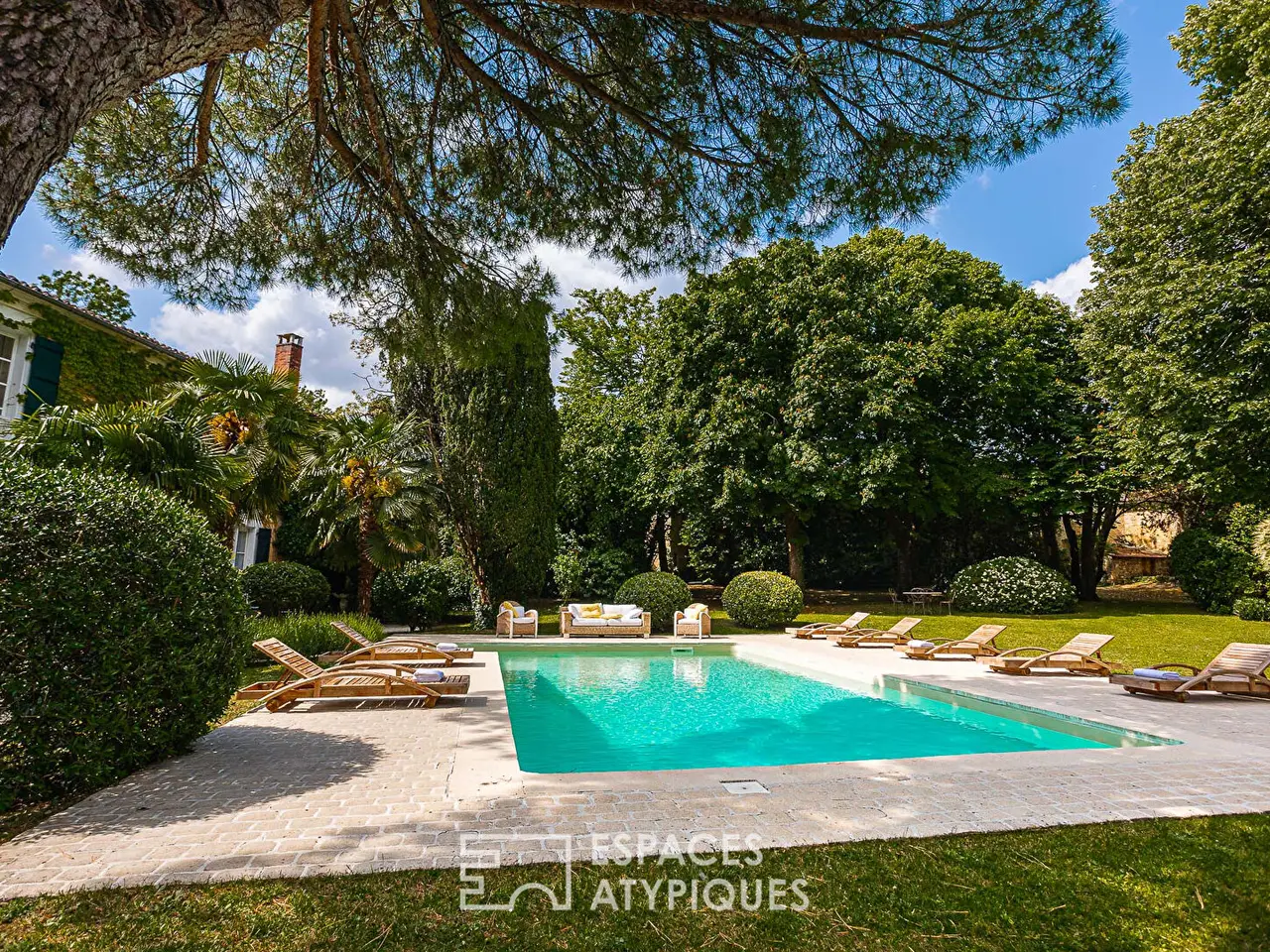 Located in a veritable green setting, this former 17th century seigneury (1643) is an exceptional place that has been pampered by its owners to preserve the beauty and prestige of the property over the centuries. Today, it has the air of a charming house fitted out and decorated with finesse and elegance, like a timeless interlude that leaves no one indifferent after their visit. On one side, the property is bordered by a park with century-old trees of approximately 2 hectares, which offers a prestigious access path to the heart of the place guarded by two imposing plane trees and a vault. On the other, an orchard of approximately 4,000 m2 on the banks of the Boutonne delimits the property. This facade is guarded by a remarkable cylindrical dovecote surrounded by Virginia creeper, as well as a high stone wall sheltering the door to the garden of the house. Once the imposing wooden door is pushed open, a true bucolic paradise enclosed by high stone walls and various period outbuildings is revealed. The vegetation, the swimming pool, and the buildings are in perfect harmony. This delightful spectacle gives a strong feeling of tranquility and happiness. Accessible from the terrace, the entrance offers a unique view of the design of the place. A row leading to the living rooms features stone, cement tiles, and in the distance, parquet flooring laid in a herringbone pattern. For the walls, a rare and clever mix of freestone and period bricks arouses an appreciable curiosity that invites you to discover this beautiful residence. The kitchen has retained its beams and its imposing fireplace. They are accompanied by a magnificent piano and a stone sink. The dining room, meanwhile, displays its more bourgeois style with moldings and a marble-clad fireplace. Finally, the living room with its many openings is notable for its pleasant volume and the warmth provided by the parquet flooring and the views of the outdoors. Before leading to the upper floor of the house, the splendid stone staircase covered in wood opens onto the linen room. Once on the landing, a first bedroom is now converted into an office enjoying a view of the garden, as well as the river at the front. Just like the ground floor, a wide hallway furnished with sofas and chests of drawers leads to the other rooms. The second bedroom offers a very beautiful volume with direct access to the large bathroom. The latter, with its approximately 31 m2, has both a magnificent bathtub in the center of the room, as well as a shower area. Its terracotta tiles and woodwork give it a great deal of elegance. Then comes the largest of the bedrooms (approximately 30 m2) which impresses with its surface area and its light oak headboard. The fourth bedroom benefits from a bathroom open to the room, nicely hidden. In the garden, the main annex building has two floors of approximately 200 m2. The ground floor is converted into a sewing workshop, the upper floor into storage. A former aviary with interesting volumes offers great development potential. A vaulted cellar and a box for an equine companion complete the property. A perfectly maintained prestigious property that will delight lovers of history and beautiful homes in peaceful locations. Surgeres, Niort, and Saint Jean d'Angely are the nearest towns. La Rochelle is 50 minutes away. ENERGY CLASS: F / CLIMATE CLASS: F. Estimated average annual energy expenditure for standard use, based on 2021 energy prices: between EUR6,850 and EUR9,310. REF. EALR2007 Additional information * 7 rooms * 4 bedrooms * 2 bathrooms * 1 bathroom * Outdoor space : 34250 SQM * Parking : 30 parking spaces * Property tax : 2 815 € Energy Performance Certificate EPC : 281 kWhEP/m2.year