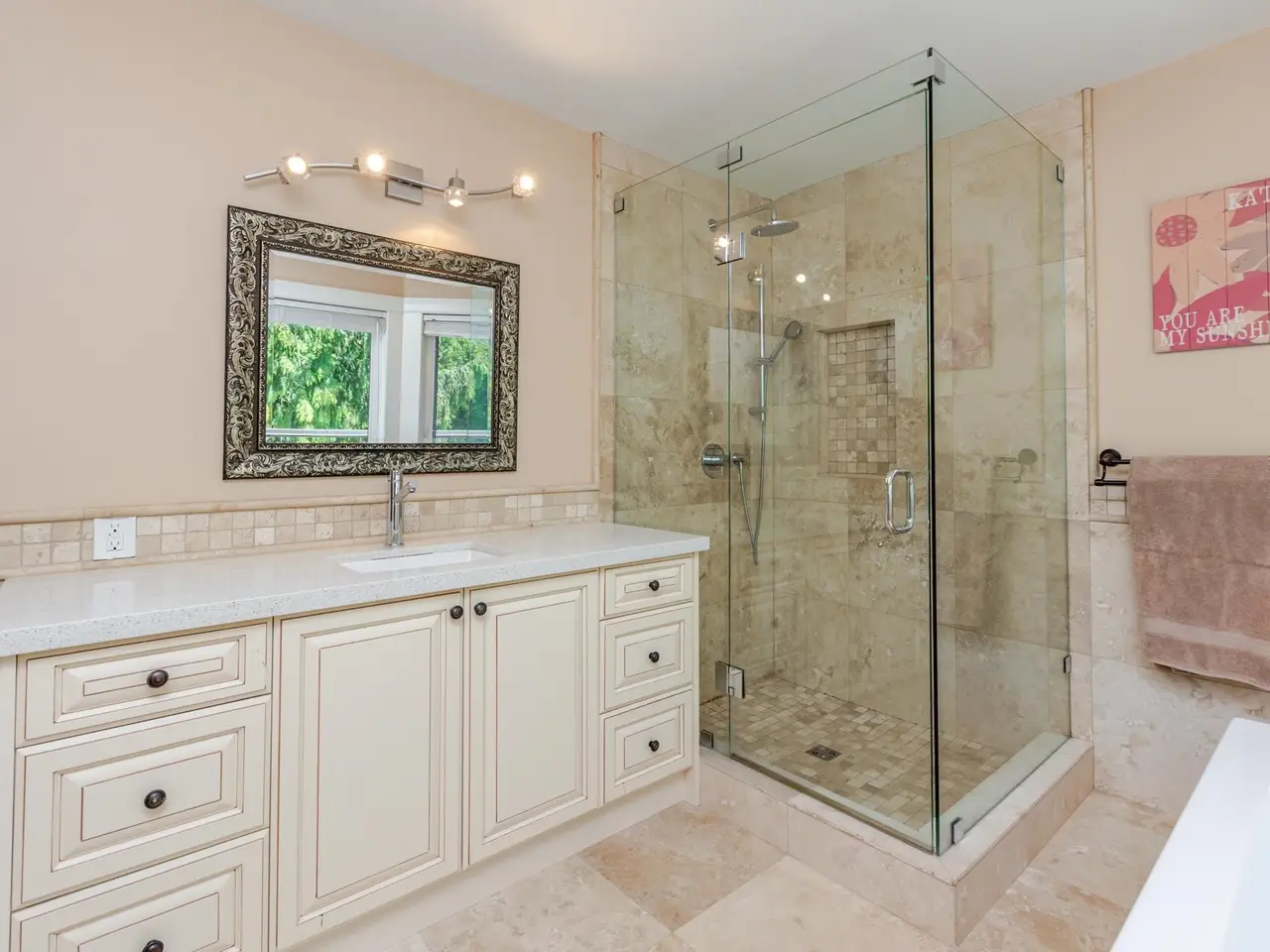 Acreage in highly sought after Redwood location! Beautiful private landscaped property offers serene tranquil setting yet still close to amenities! Extensive 7000 sq ft home offers many options for extended or multi-family living! 6+ bedrooms including 2 masters with ensuites! Completely rebuilt in 2009 with 4500 sq ft addition added to existing home! Stunning features include: Designer kitchen with top of the line appliances, soundproofed home theatre room, sports room/den with wet bar for game nights, sports court, relaxing enclosed sunroom, air conditioning HVAC system, on demand hot water and 4 car garage and workshop for all your toys! Wonderful outdoor decks and patio areas with wood-fired pizza oven for ultimate private outdoor entertaining! Just a short stroll to Redwood Park!