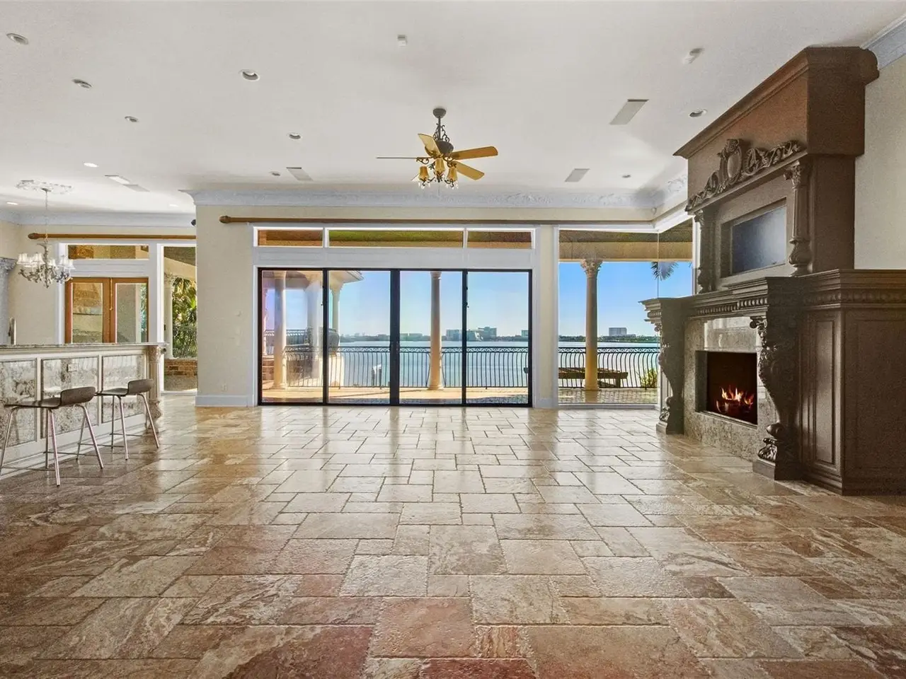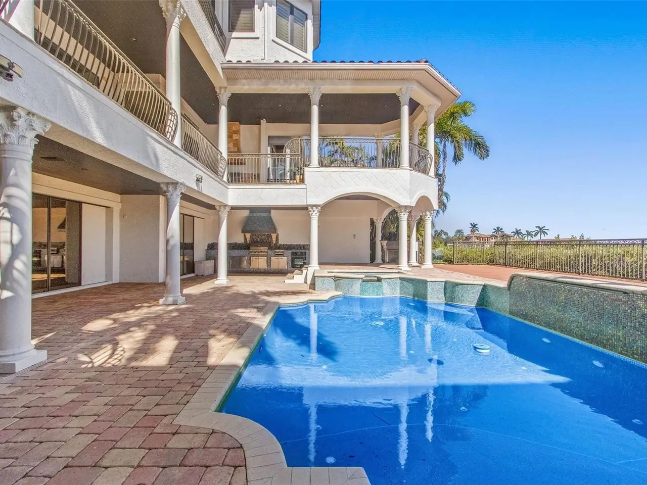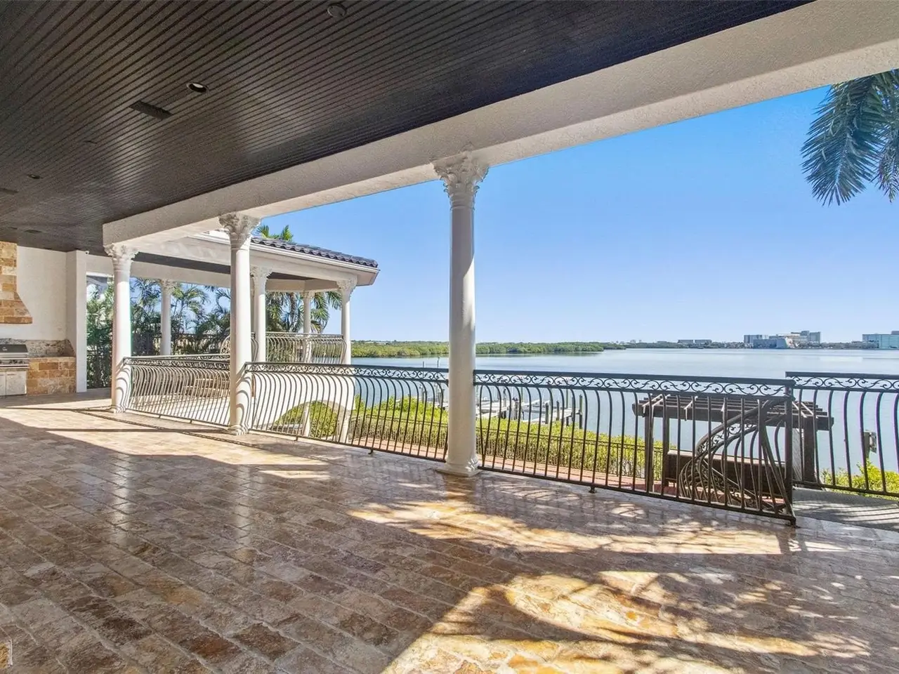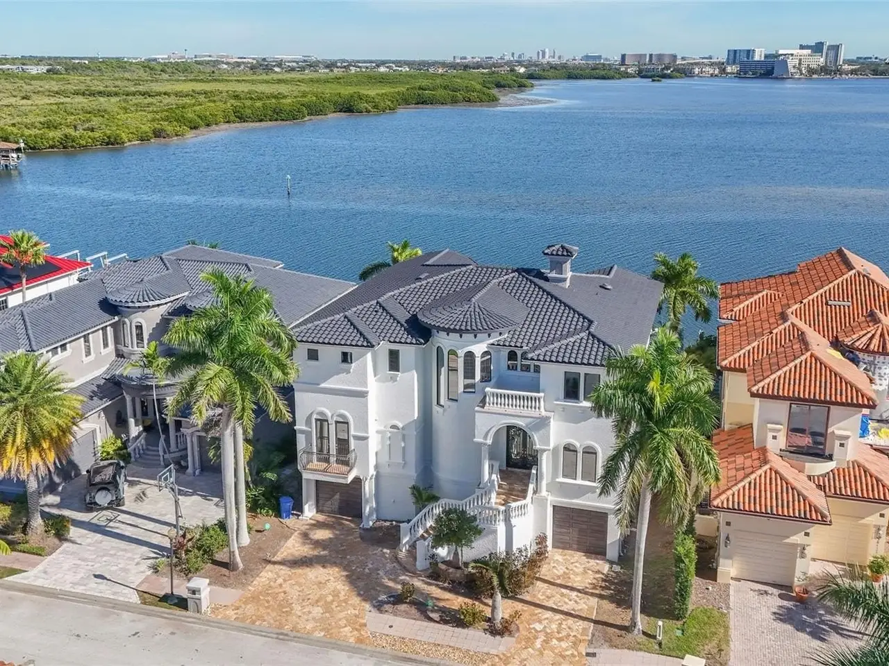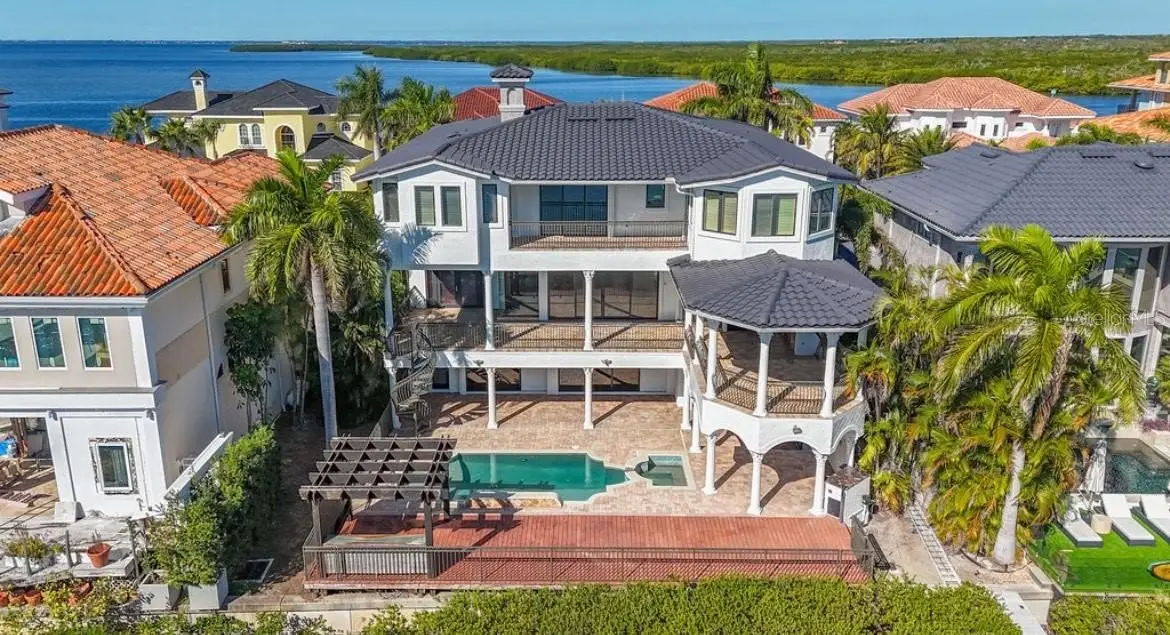 Experience this sleek, modernized Mediterranean masterpiece in an elite Alvarez community, featuring Tampa Bays most expansive waterfront. Brand new tile roof, vibrant fresh paint inside and out. Glide up the chandelier lit elevator to break taking bay views on entry level. Main Floor dazzles with a gourmet kitchen, Wolf Gas Stove, Sub Zero Fridge, massive island, beige cabinetry, pristine white granite; cozy fireplace living room; elegant dining room; travertine floors flowing to a grand balcony with full outdoor kitchen. The upper level has rich cherry hardwoods; luxurious master suite, guest bedroom; epic 10 speaker theater with starry ceiling and power recliners; and a terrace showcasing endless water vistas. The lower level thrills with a wine room, entertainment hub, private mother in law suite, sparkling pool/spa with a cascading waterfall and fountain, the second outdoor kitchen is on the expansive wood deck. There is also a versatile space for a 5th bedroom or office. Comfortably take the elevator to each floor for ultimate convenience. The whole home has sonos audio perfect for entertaining. The Ultimate dock has a 16k lb boat lift, dual sea-doo lift; stunning pergola with glowing bar commanding a full bay panoramic view. This amazing property is close to the Tampa International Airport, Downtown Tampa, St Petersburg, the world class Gulf beaches, Michelin star restaurants and so much more. This home is the embodiment of waterfront luxury!