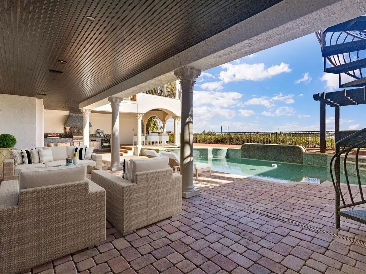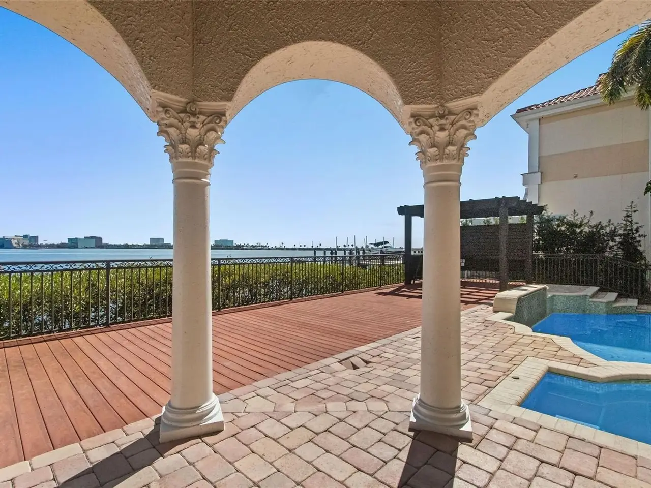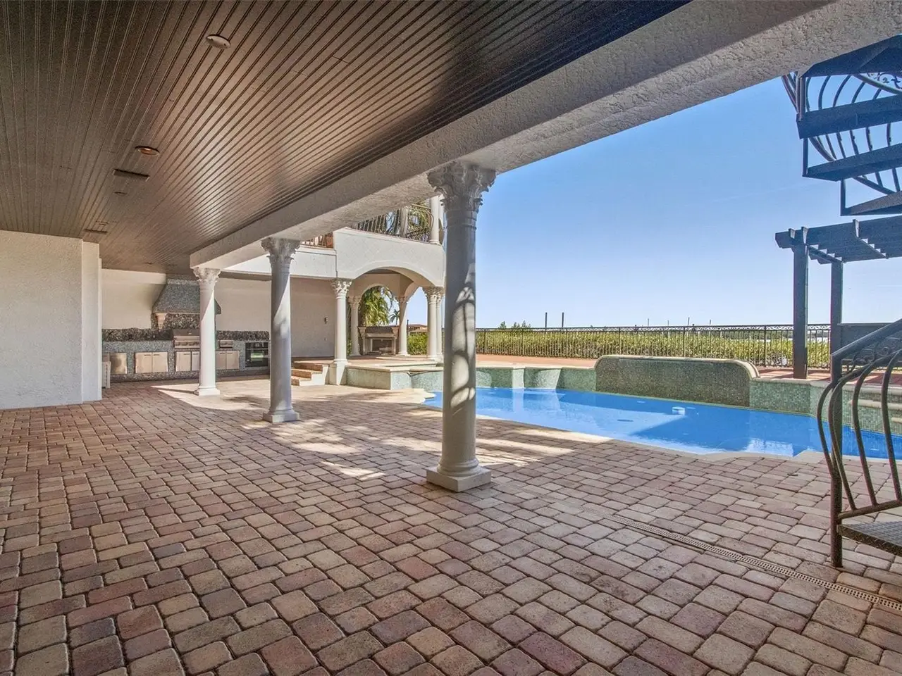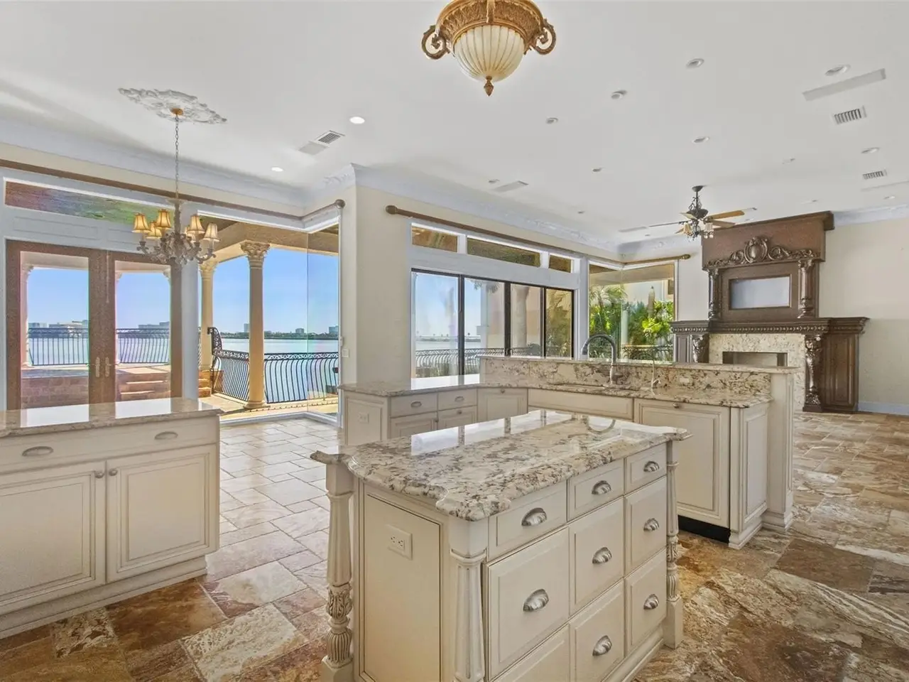 Experience this sleek, modernized Mediterranean masterpiece in an elite Alvarez community, featuring Tampa Bays most expansive waterfront. Brand new tile roof, vibrant fresh paint inside and out. Glide up the chandelier lit elevator to break taking bay views on entry level. Main Floor dazzles with a gourmet kitchen, Wolf Gas Stove, Sub Zero Fridge, massive island, beige cabinetry, pristine white granite; cozy fireplace living room; elegant dining room; travertine floors flowing to a grand balcony with full outdoor kitchen. The upper level has rich cherry hardwoods; luxurious master suite, guest bedroom; epic 10 speaker theater with starry ceiling and power recliners; and a terrace showcasing endless water vistas. The lower level thrills with a wine room, entertainment hub, private mother in law suite, sparkling pool/spa with a cascading waterfall and fountain, the second outdoor kitchen is on the expansive wood deck. There is also a versatile space for a 5th bedroom or office. Comfortably take the elevator to each floor for ultimate convenience. The whole home has sonos audio perfect for entertaining. The Ultimate dock has a 16k lb boat lift, dual sea-doo lift; stunning pergola with glowing bar commanding a full bay panoramic view. This amazing property is close to the Tampa International Airport, Downtown Tampa, St Petersburg, the world class Gulf beaches, Michelin star restaurants and so much more. This home is the embodiment of waterfront luxury!