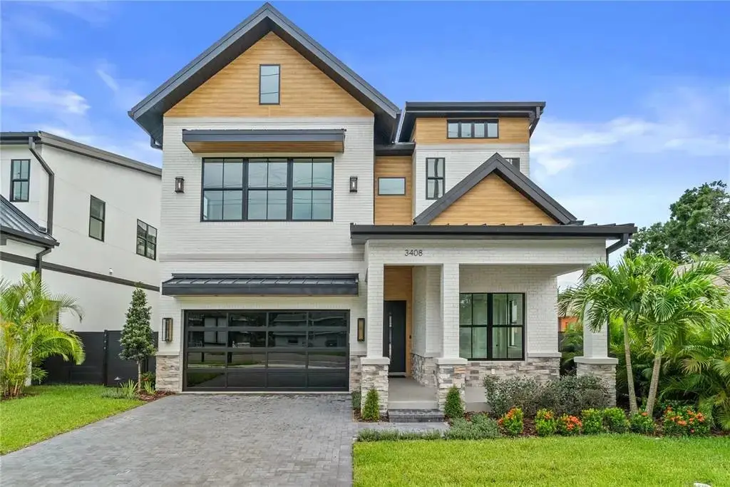 UNDER CONSTRUCTION. Anticipated completion 10/31/2025. Welcome to this design-forward masterpiece where farmhouse charm meets sleek contemporary design in the heart of Midtown. This brand new 5-bedroom, 5.5-bath home spans 3,420 square feet of elevated living, expertly crafted with luxury finishes and thoughtful functionality throughout — and best of all, not located in a flood zone. Inside, smooth Level 4 walls and engineered oak hardwood floors create a refined, minimalist backdrop. The open-concept great room features a statement fireplace, flanked by designer sconces and bathed in natural light. The chef’s kitchen stuns with fluted black paneling on the island, custom white and black oak cabinetry, and striking pendant lighting — all seamlessly connected to the bar and pantry for effortless entertaining. Retreat upstairs to the second-floor primary suite, where spa-like serenity awaits with a freestanding tub, dual rain showerheads, a chandelier over the tub, and a white oak vanity layout accented by bold black plumbing fixtures.