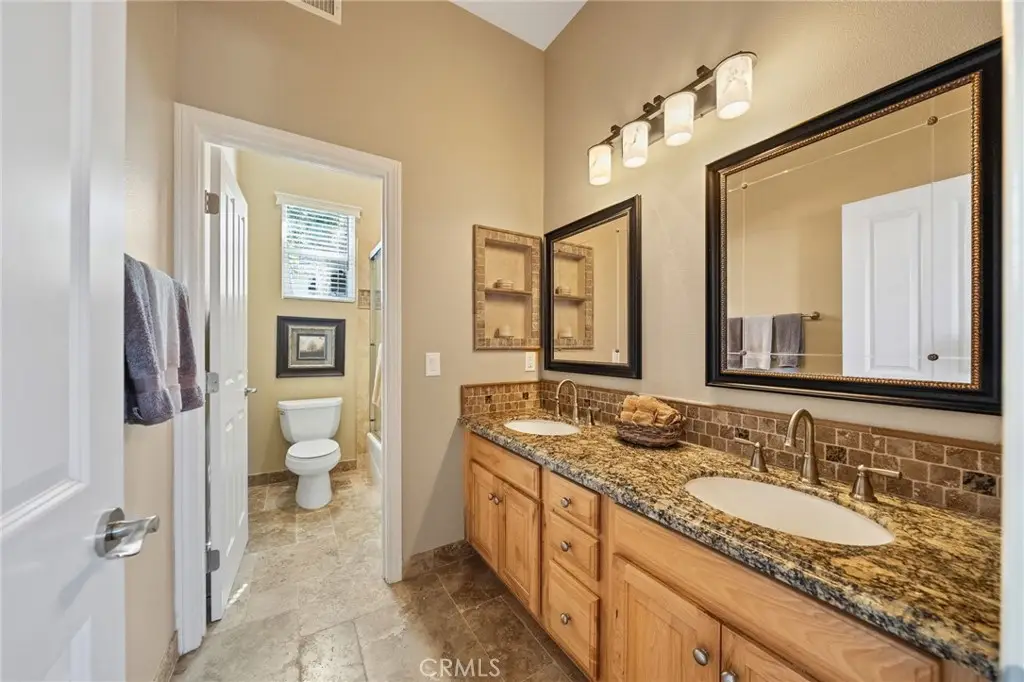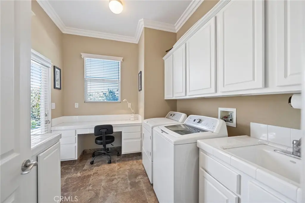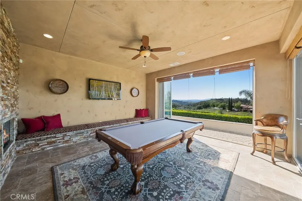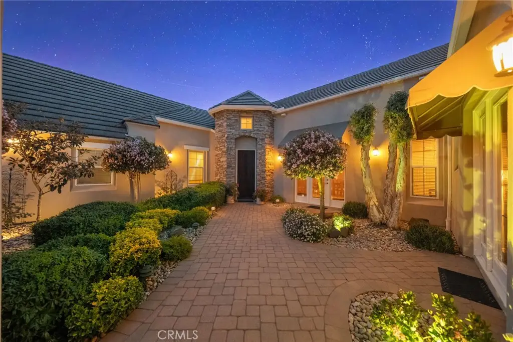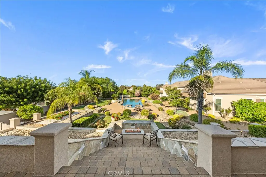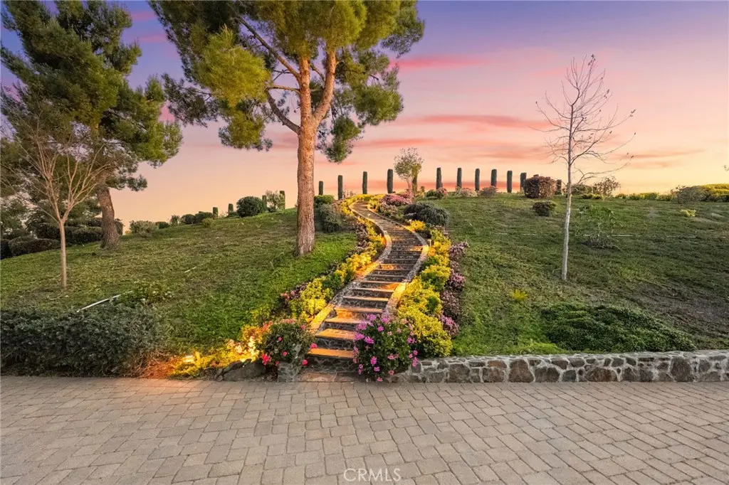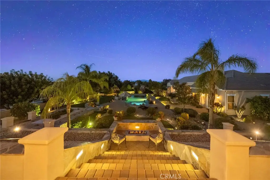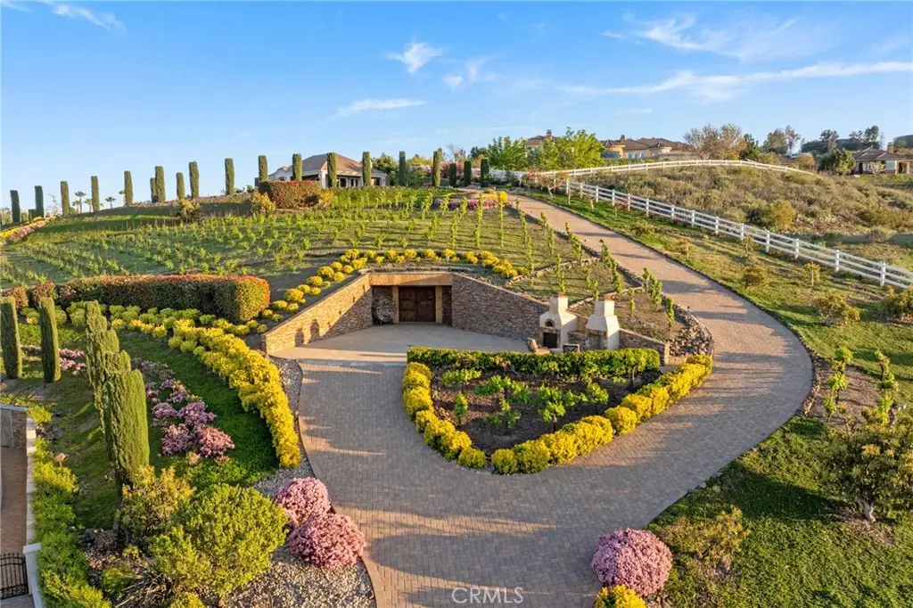 One-of-a-kind estate located just 5 minutes from the charm & culture of Old Town Temecula. Set behind 3 private gated entrances, this sprawling 4.19 acre compound features 3 separate single-story residences & an underground wine cellar all totaling approx. 6100 sq ft, masterfully positioned to capture breathtaking sunset views across rolling hills. The grounds truly set this estate apart; meticulously manicured landscapes framed by stately Italian cypress trees create an outdoor setting unlike any other. A dramatic stone stairway leads from the main home to the elevated studio residence. Entertain w/ ease and elegance w/resort style amenities; sparkling pool, two separate spas, water features, outdoor fireplaces, 2 putting greens, a sports court, & a post-tensioned tennis court w/ breathtaking views. Plus 2 built-in BBQ islands & pizza oven. Approx. 30,000 sq ft of stone pavers weave through the property. The main residence is approx. 3,275 sq ft w/ travertine flooring & architectural arches. It features 3 bedrooms, office, & 3.5 baths. The gourmet kitchen complete with granite countertops, 2 sinks, stainless steel appliances, built-in refrigerator, walk-in pantry, wine fridge, butler's pantry, & bar seating-all flowing seamlessly into the family room w/ views of the pool & gardens. The primary suite offers a private retreat w/ its own fireplace & French doors leading to the amazing pool & spa. The guest house offers approx. 1,600 sq ft of luxury living w/ 2 bdrms, 2 baths, a chef's kitchen, & fully retractable glass doors opening to commanding views of the surrounding countryside. At the estate's highest point, the studio offers approx. 600 sq ft of open-concept living, complete with an elevated desk area, curved wine bar, a built-in spa, putting green, rooftop lounge, ATV-sized garage, & unmatched panoramic vistas. A 600 sq ft stand-alone reinforced concrete wine cellar is the perfect sanctuary for wine-making enthusiasts - complemented by approx. 1,000 wine grapevines and 21 table grapevines, as well as approx. 100 avocado trees, and various fruit trees. Additional features include upgraded mahogany garage doors, extensive landscape lighting, whole house & outdoor sound systems, multiple whole-house fans for year-round comfort, & a comprehensive security system. Perfect for a multigenerational compound, vineyard retreat, or entertainer's paradise, this Temecula estate redefines California luxury living with a setting that must be seen to be believed.