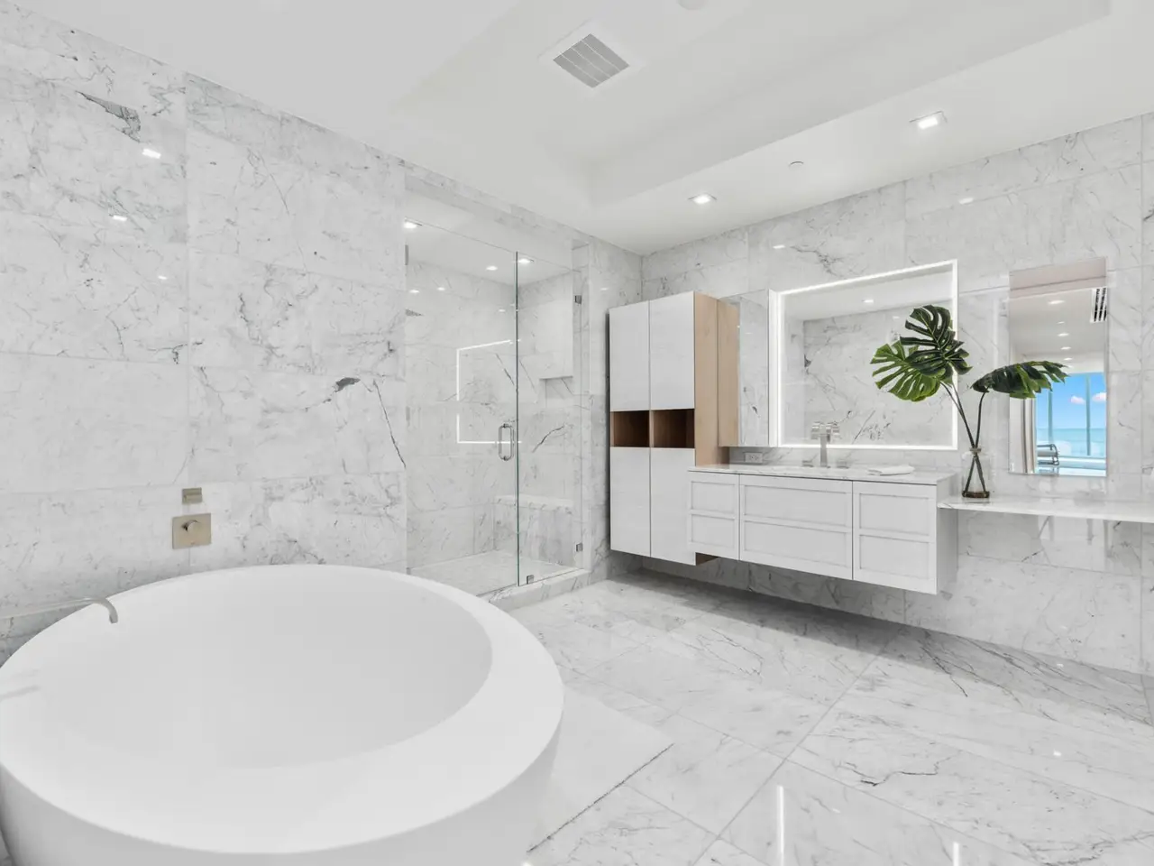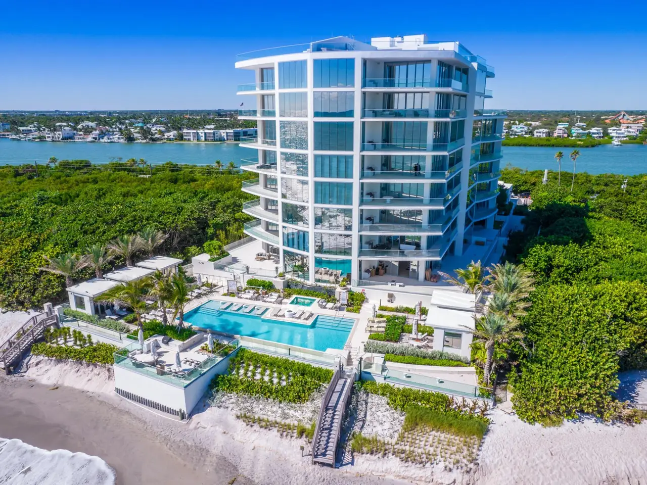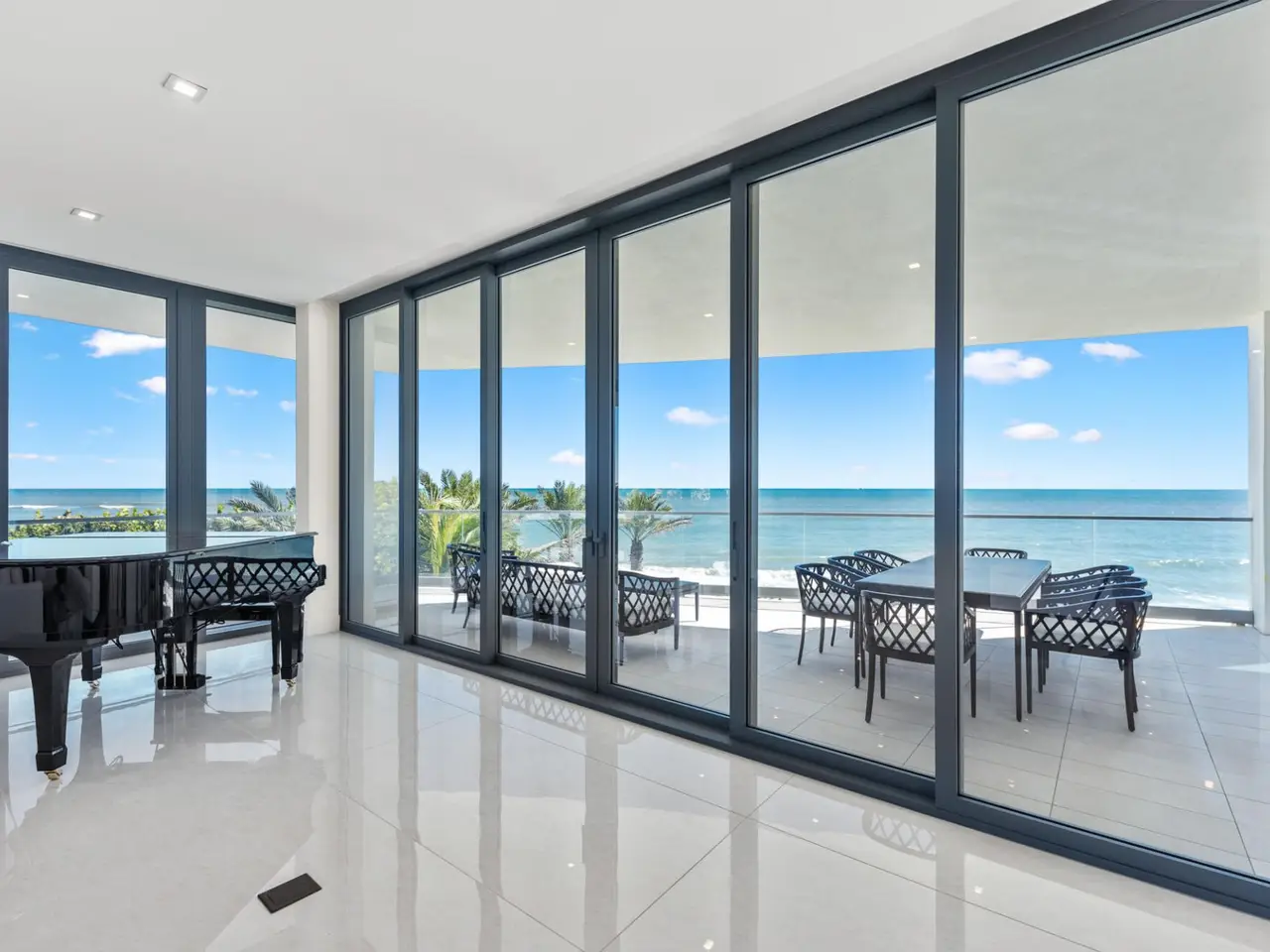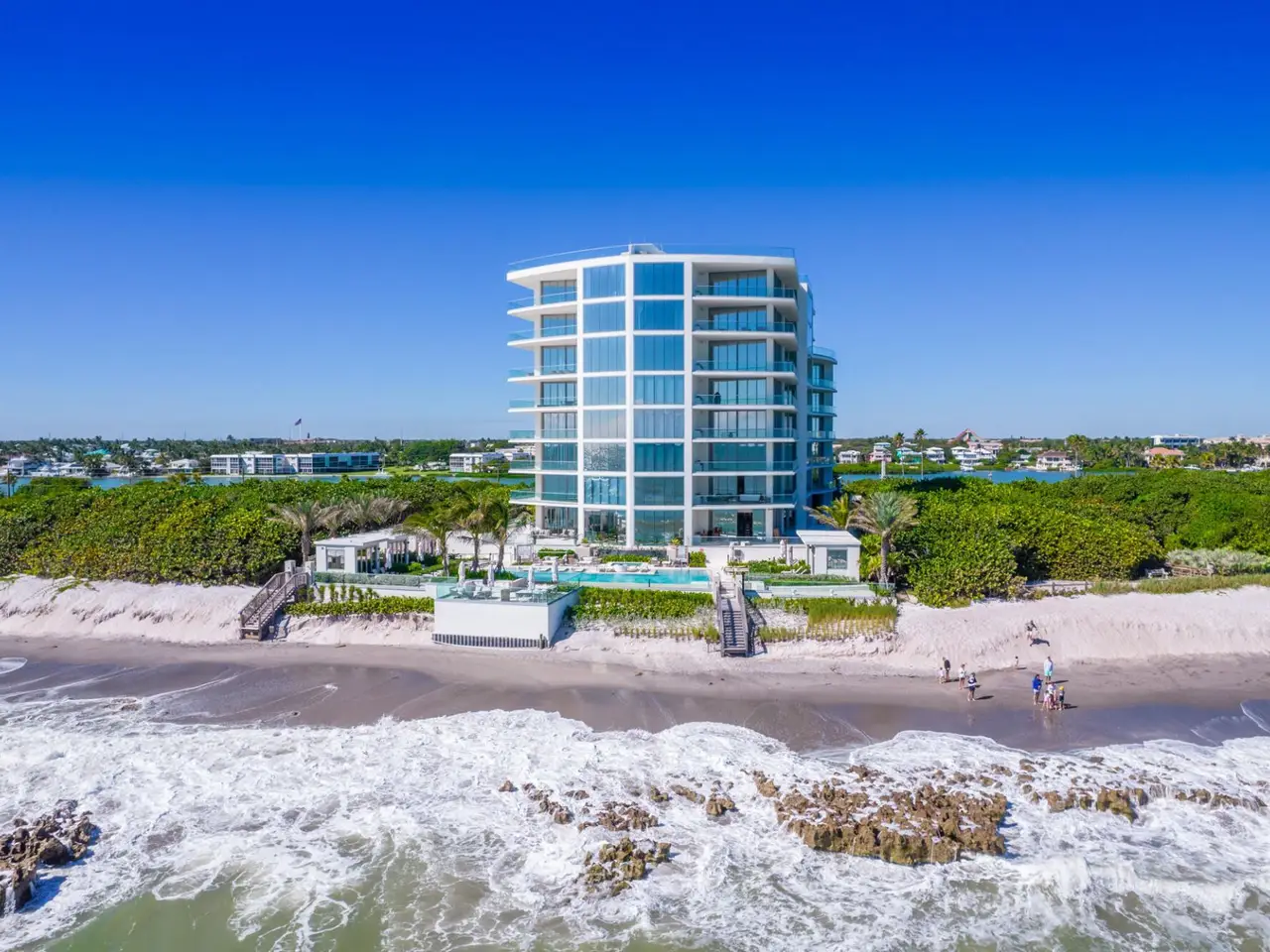 Exceptional opportunity to own this luxurious designer residence at the prestigious SeaGlass Condominium on Jupiter Island offering sweeping, uninterrupted ocean views. Completed in 2022 as the first new condominium development on Jupiter Island in over 20 years, SeaGlass offers just 21 exclusive residences, promising unparalleled luxury, remarkable vistas, and exceptional privacy. Set amidst the pristine beauty of the ocean, Intracoastal Waterway, and lush protected landscapes, Residence 302 is a masterpiece of modern design. Entering through your private foyer, you are welcomed by an expansive open floor plan with lavish marble flooring and floor-to-ceiling glass, providing panoramic views from the ocean to the Intracoastal. SEE MORE REMARKS... This residence includes three bedrooms, four and a half bathrooms, and a den, with each bedroom featuring an ensuite bath, walk-in closets, and stunning views. Additional features include three large terraces, a summer kitchen, imported Italian solid core wood interior doors and casings, 10-foot ceilings, recessed down lighting, and imported Snaidero cabinetry with integrated task lighting. The kitchen boasts a professional-grade stainless steel ventilation hood by Snaidero, top-tier appliances, a cabinet-paneled freezer column, a full-height Miele wine column with glass and cabinet panel front, and two Miele dishwashers. The master suite offers direct terrace access, dual walk-in closets, separate bathrooms with steam showers and frameless glass enclosures, imported marble, Italian wall-mounted vanities, and designer mirrors and lighting. The SeaGlass building offers an impressive range of amenities, including a gated entrance, a 24/7 attended lobby designed by Champalimaud Design, an emergency generator, a heated oceanfront infinity-edge pool, a sandy beach with chaise lounges, two gated stairways to the beach, a beachside summer kitchen, an outdoor viewing terrace, a heated spa, a full-time property manager, a fitness center, a yoga meditation lawn, a club room with a catering kitchen and game area, an outdoor social terrace with BBQs and a fire pit, a dog walk area and bathing station, a package room with keypad access, and a dedicated bike storage area. This one-of-a-kind property offers the rare chance to embrace the ultimate in coastal luxury living.