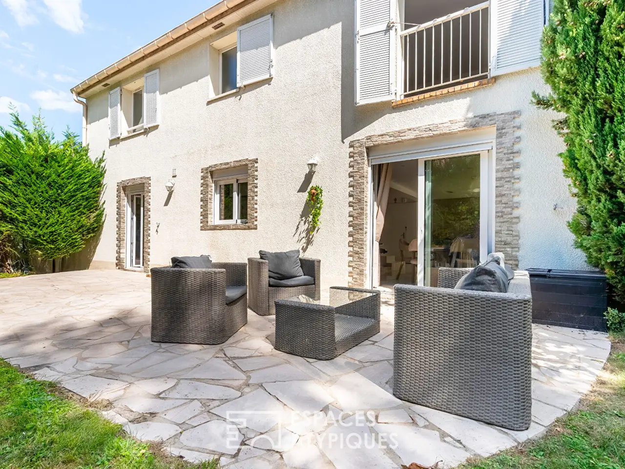 In Thiais, in the sought-after Green Valley development, this 180 m2 family home, completely redesigned by its owners, offers a refined yet welcoming living experience. Nestled on a 587 m2 plot, its understated, elegant lines stand out in a quiet residential area, just a stone's throw from schools and amenities. From the moment you enter, the atmosphere is striking: polished stone floors, powdery colours, a high-end feel and omnipresent light reveal an interior that has been treated with the utmost care. The vast living space, which runs through the property and is bathed in light, plays on transparency and reflections. It features a cosy lounge facing an integrated screen wall, a convivial dining room and a contemporary open-plan kitchen with minimalist lines and fully equipped. The whole space flows harmoniously into the garden, which is not overlooked, offering a natural and intimate extension on sunny days. A pantry, separate WC and garage complete the ground floor facilities. In the centre of the room, a sculptural staircase, seemingly suspended, creates a graphic transition to the upper floor. This level offers two bedrooms with storage space, a shower room with WC, a laundry area, and a sumptuous 40 m2 master suite with a custom-made dressing room and double sink shower room. The top floor houses a fourth bedroom with its own shower room, as well as an attic offering additional storage space. On the practical side, the house is located just a few minutes' walk from: - Nursery, pre-school, primary school, secondary school and sixth form college. - Shops and TVM. - Close to Thiais Village and Belle Épine shopping centre. This house charms with its tranquillity, its complete renovation in a soothing contemporary style, and its functionality designed for the everyday life of a modern family. The house is located in a residential development with quarterly service charges. REF. 12629 Additional information * 6 rooms * 4 bedrooms * 3 shower rooms * 2 floors in the building * Outdoor space : 587 SQM * Parking : 3 parking spaces * Property tax : 2 631 € Energy Performance Certificate Primary energy consumption d : 200 kWh/m2.year High performance housing