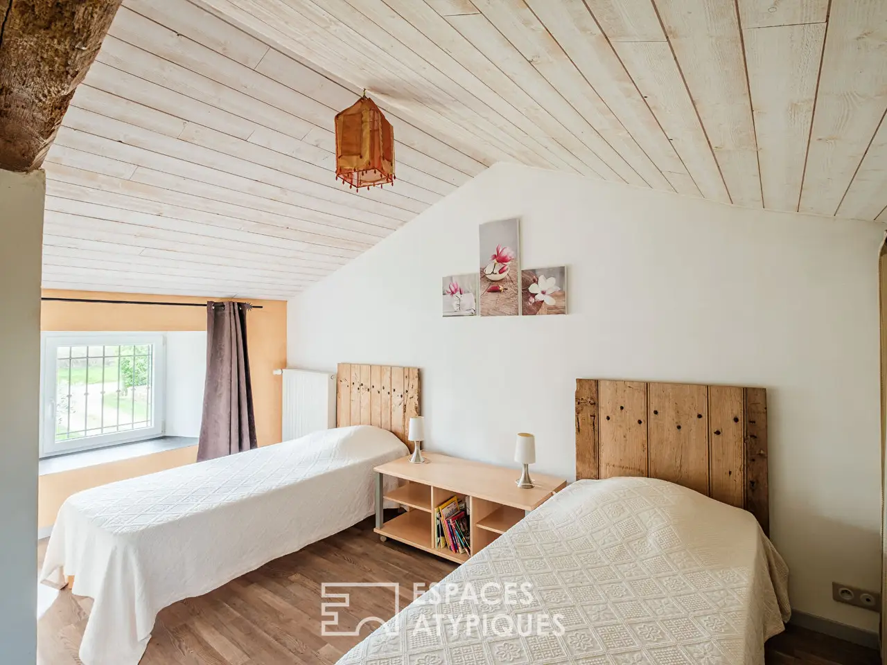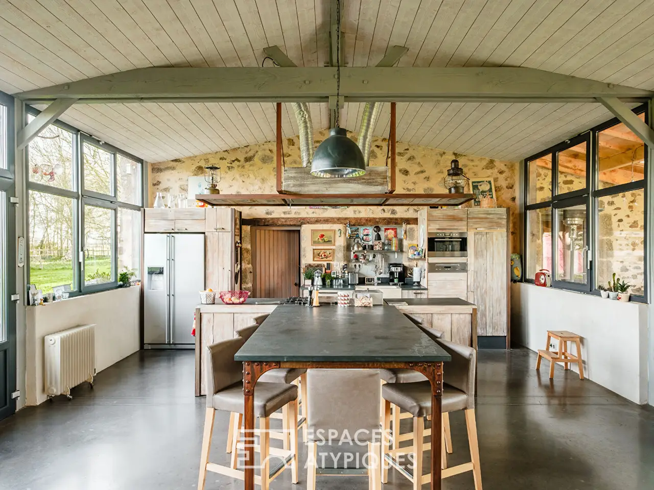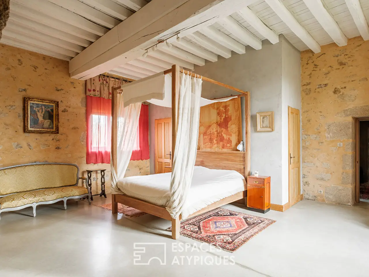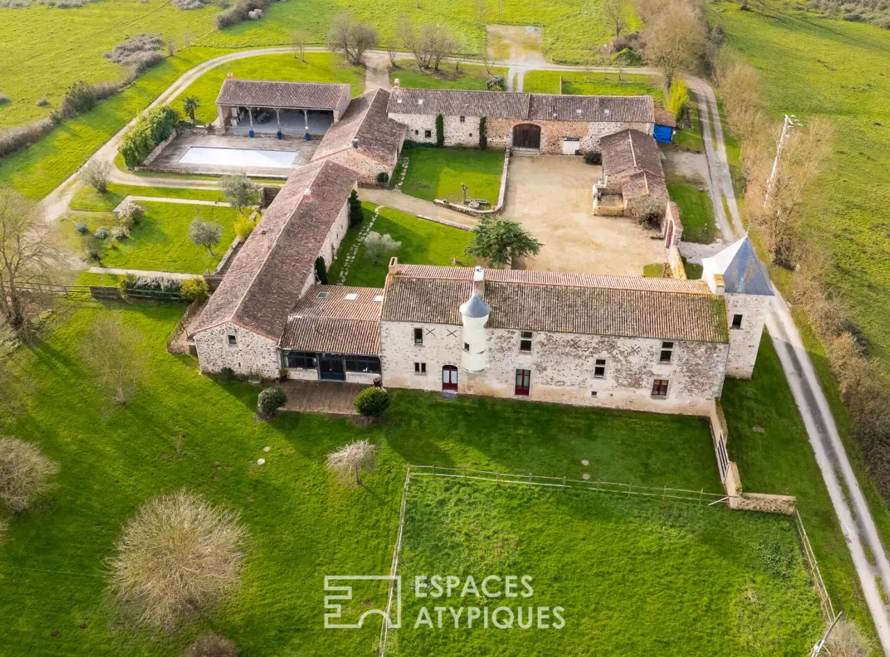 In the heart of the peaceful countryside of Thouars in Deux-Sevres, this exceptional property embodies the timeless charm of 16th century buildings, subtly restored to combine authenticity and modern comfort. The estate extends around a central courtyard, surrounded by stone buildings offering an idyllic and preserved setting. The main accommodation of approximately 420sqm exudes rustic elegance, with exposed stone walls, whitewashed beams and floors in polished concrete or authentic parquet. Bathed in light, it houses a kitchen that is both rustic and contemporary, a living room that reveals a warm atmosphere with its majestic stone fireplace, a dining room ideal for large meals with family or friends, as well as five spacious bedrooms each with its dressing room and bathroom or shower room. The four gites, with a living area of between 80sqm and 140sqm, each have a pleasant living room with a fitted and equipped kitchen, two or three bedrooms and a bathroom combining comfort and old-world charm. Ideally furnished, these gites can accommodate families or groups for unforgettable stays. Three of the latter are classified and sold furnished. The estate also offers a room of approximately 126sqm with a perfectly equipped kitchen, a back kitchen and two toilets, a 185sqm courtyard and a swimming pool discreetly integrated into this bucolic setting opens up unique possibilities for organizing events or various activities. A 90sqm garage and its attic as well as a 40sqm outbuilding complete this estate. This unique place, a true haven of peace, will appeal to heritage lovers looking for a rare property, where each stone tells a story, and where time seems to stand still. An ideal property to host gite projects with in particular the proximity of Puy du Fou and Futuroscope, for a life in tune with nature, activities related to animals or events. ENERGY CLASS: D / CLIMATE CLASS: B. Estimated average amount of annual energy expenditure for standard use, established from average energy prices indexed for the years 2021, 2022, 2023: between EUR7,260 and EUR9,870. REF. EADS239 Additional information * 8 rooms * 5 bedrooms * 1 floor in the building * Outdoor space : 25962 SQM * Property tax : 2 834 € Energy Performance Certificate Primary energy consumption d : 243 kWh/m2.an High performance housing