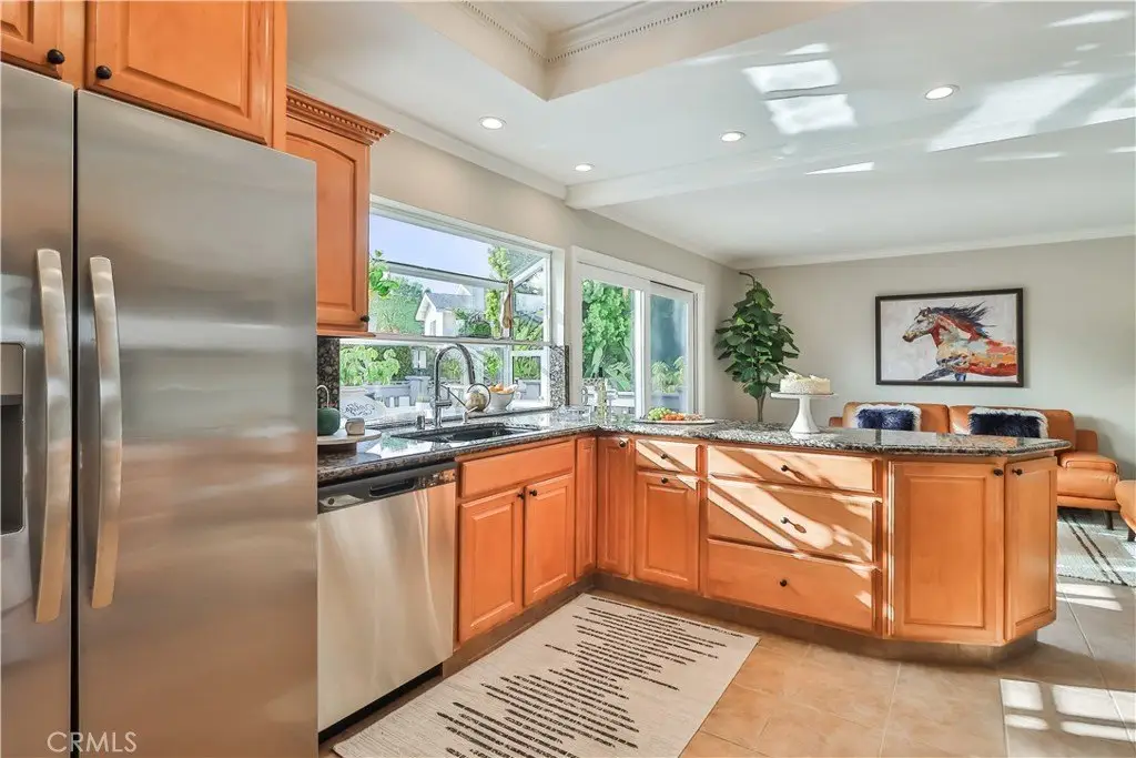 Charmante maison de plain-pied dans le quartier très prisé de Wildwood. Découvrez cette maison de plain-pied magnifiquement rénovée de 4 chambres et 2 salles de bain, nichée dans le quartier prisé de Wildwood. Située dans une impasse paisible, cette maison de plain-pied allie à la perfection modernité et charme intemporel. Dès votre arrivée, vous serez séduit par l'aménagement paysager soigné, les allées en briques et la peinture extérieure fraîchement peinte. À l'intérieur, la maison baigne de lumière naturelle, avec ses volets de style colonial, ses luminaires encastrés et ses nouveaux équipements élégants, dont des ventilateurs de plafond dans chaque pièce. Le salon formel et accueillant, doté de plafonds voûtés, d'une cheminée à gaz en briques et de bibliothèques intégrées, crée un espace idéal pour recevoir ou se détendre. L'aménagement ouvert s'ouvre sur la salle à manger et la cuisine, où vous trouverez des comptoirs en granit, des appareils électroménagers en acier inoxydable, des armoires en bois massif et une baie vitrée avec vue partielle sur Wildwood Mesa. Un grand garde-manger offre un espace de rangement supplémentaire et un confort optimal. La suite principale est un havre de paix avec douche à l'italienne et une atmosphère sereine. Les chambres supplémentaires et la salle de bains rénovée sont dotées d'une vasque fraîchement repeinte et d'élégantes moulures. À l'extérieur, vous trouverez le jardin tropical idéal pour vos réceptions, avec sa terrasse fraîchement repeinte, son jacuzzi intégré, sa piscine entièrement équipée, sa fontaine zen et sa cascade. Plusieurs espaces extérieurs offrent un cadre idéal pour se détendre ou recevoir. Cette maison comprend également des panneaux solaires pour une meilleure efficacité énergétique, des rangements intégrés dans le garage et un spacieux garage double avec un grand parking. Idéalement située à quelques pas des terrains de tennis, de basket-ball, de football et des sentiers de randonnée pittoresques du parc Wildwood, avec l'école primaire de Wildwood à proximité, cette maison offre un cadre de vie exceptionnel. Ne manquez pas cette occasion rare de devenir propriétaire d'une maison soigneusement entretenue dans l'un des quartiers les plus prisés de Thousand Oaks !
