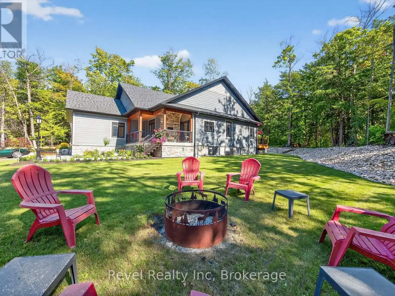 Luxury Living in Exclusive Thunder Beach! Imagine waking up beneath the serene Nipissing Ridge on 1.7 acres of landscaped privacy, with turquoise waters of Georgian Bay just steps away. This nearly new executive bungalow is a rare opportunity to call one of Georgian Bays most prestigious communities home. Every detail of this residence speaks to quality and craftsmanship. Built with ICF foundation and French drains for lasting comfort and energy efficiency, it also showcases rich hardwood floors, custom cabinetry, and spa-inspired bathrooms. The covered porch welcomes you into an airy, open-concept design where a chefs kitchen, featuring a Thor stove, pot filler, walk-in pantry, and multimedia bar, seamlessly connects to the dining area and covered deck. Every window frames tranquil views of trees, never neighbors. The primary suite offers a walk-in closet and a serene ensuite with an oversized glass shower equipped with multiple showerheads for your private spa retreat. Two additional bedrooms and a second full bath complete the main level. The finished lower level extends the lifestyle: radiant in-floor heating, a custom bar, built-in media surround, and oversized windows create a sophisticated entertaining space. Two more bedrooms, a full bathroom, and a walk-up to the heated garage ensure versatility perfect for an in-law suite. Beyond the home, the Thunder Beach lifestyle awaits. Ownership here means more than just a property its belonging to a community. Enjoy access to tennis courts, a private golf club, and a vibrant social scene that has defined this enclave for generations. And as the day closes, watch the horizon light up with sunsets that paint the sky in breathtaking shades of pink and gold. This is not just a home. It is an invitation to live exceptionally where luxury, lifestyle, and Georgian Bays natural beauty come together in perfect harmony. (id:7434)