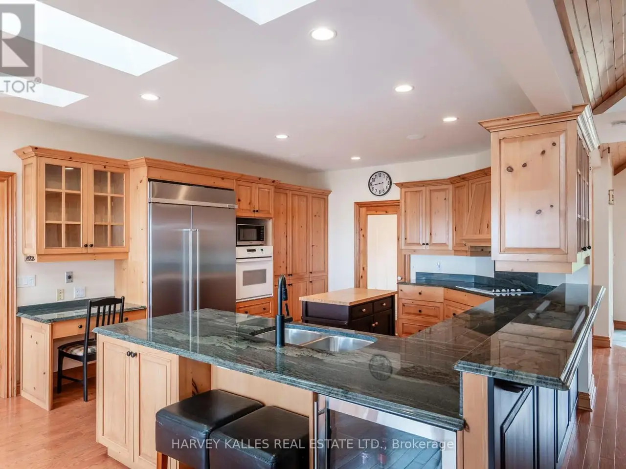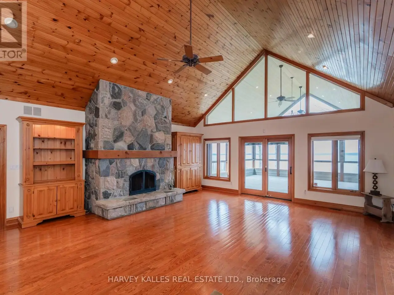 Perched high on a ridge at Cedar Point in the coveted Cedar Ridge community, this home is located just under 2 hours from Toronto. This spectacular residence captures sweeping, panoramic views over the turquoise crystal-clear waters of Georgian Bay with stunning western sunsets. Set on a premium 4-acre lot, this thoughtfully designed home offers unmatched privacy, natural beauty, and a true four-season lifestyle. Crafted for both relaxation and entertaining, this home features an open-concept kitchen, dining and great rooms with soaring vaulted ceilings, an abundance of natural light through oversized windows and skylights, and oak flooring. Warmth and ambience abound with a granite stone wood-burning fireplace in the great room and a cozy propane stove in the sunroom. The wrap-around Western Red Cedar deck and screened porch create a seamless flow between interior and exterior spaces. The private primary suite features a 5-piece ensuite and direct access to its own exterior deck - perfect for quiet mornings with a coffee and unobstructed views of the Bay. The walkout lower level, with in-floor radiant heating and the upper level loft, offer additional living space for family and guests. Located near the well-known Thunder Beach community, Awenda Provincial Park, Lafontaine Beach & the towns of Penetanguishene and Midland. World-class skiing at Blue Mountain and Horseshoe Valley is just 40 minutes away. While nearby golf courses, sailing clubs, skiing clubs, trails, and sandy beaches offer recreation for every season. A rare opportunity to own a four-season retreat in a truly breathtaking setting! (id:6370)