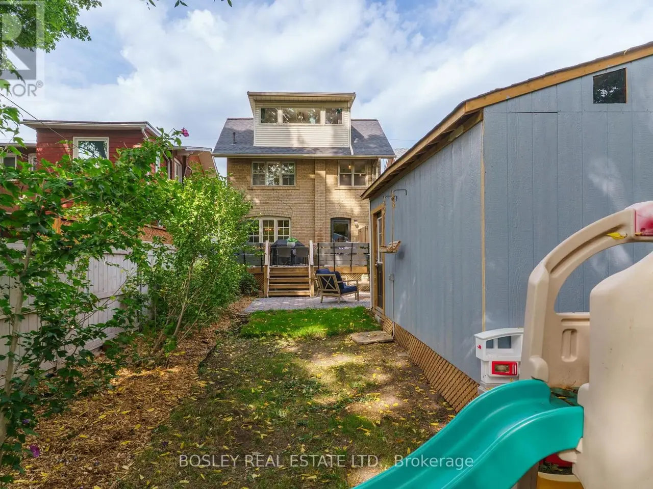 Offers anytime! Welcome to 43 Eastwood Rd.! This charming detached family home is full of character. It offers 4 bedrooms, 3 bathrooms, plus a basement apartment with a separate entrance, perfect for rental income or conversion into a family entertainment space. The main floor features a stylish mudroom with exposed brick, a spacious living room, and a separate dining room with a coffered ceiling, ideal for gatherings. The kitchen is designed with stone countertops, stainless steel appliances, ample cabinetry, and a walk-out to a private garden oasis. Upstairs, you'll find three generously sized bedrooms and a large family bathroom with a double vanity, separate shower, and tub. The third-floor primary suite includes a walk-in closet and overlooks the picturesque, tree-lined backyard. The lower level offers a 2-piece bathroom combined with a laundry room, along with a basement apartment featuring its own 3-piece bathroom and private entrance. Outdoors, enjoy a newly built deck, perfect for entertaining and BBQs, which leads to a beautiful patio, landscaped backyard, and a new garden shed for storage. Enjoy the convenience of being within walking distance to transit, schools, local shops, dining, parks, and the beaches of Ashbridges Bay. This unique home blends character, function, and modern updates, truly a must-see! (id:7434)