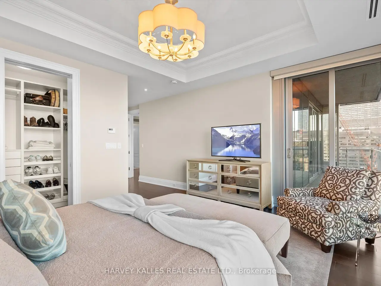 An icon of refined living in one of Toronto's most distinguished addresses. Welcome to Suite 1805 at 55 Scollard, within the legendary Four Seasons Private Residences. Architectural grace, hotel-inspired service, and effortless sophistication define every moment in this exceptional two-bed, two-bath residence spanning approximately 1,265 sq.ft. From the moment you enter, calm refinement prevails. Expansive floor-to-ceiling windows bathe the interiors in natural light, accentuating clean lines, rich finishes, and a timeless modern aesthetic. The open-concept living and dining areas invite both relaxation and entertaining, anchored by sweeping views of the Yorkville skyline. The chef's kitchen combines beauty and performance with integrated Miele, Sub-Zero, and Panasonic appliances, a gas range, polished granite surfaces, and generous cabinetry, perfect for casual mornings or elegant evenings. Enjoy your morning coffee at the granite waterfall kitchen island, equipped with additional storage and spacious bar seating. The primary suite is a private sanctuary featuring a spa-inspired five-piece ensuite with a deep soaking tub, glass shower, double vanity, and refined marble finishes. A custom walk-in closet with sleek built-ins and a pocket door blends form and function. The second bedroom offers flexibility for guests, work, or leisure. Residents enjoy exclusive access to dedicated amenities and full hotel privileges: 24-hour concierge and valet, world-class fitness centre, indoor pool, and direct access to the Four Seasons Spa. Just steps from Yorkville's finest boutiques, Michelin-starred dining, and tranquil parks, this address offers the ultimate balance of sophistication and convenience, an incomparable opportunity to own within Toronto's most iconic residence. Extras: One owned parking space & locker, ensuite laundry in the primary, automatic roller blinds throughout, and more! An incomparable opportunity to own a piece of Toronto's most iconic address!